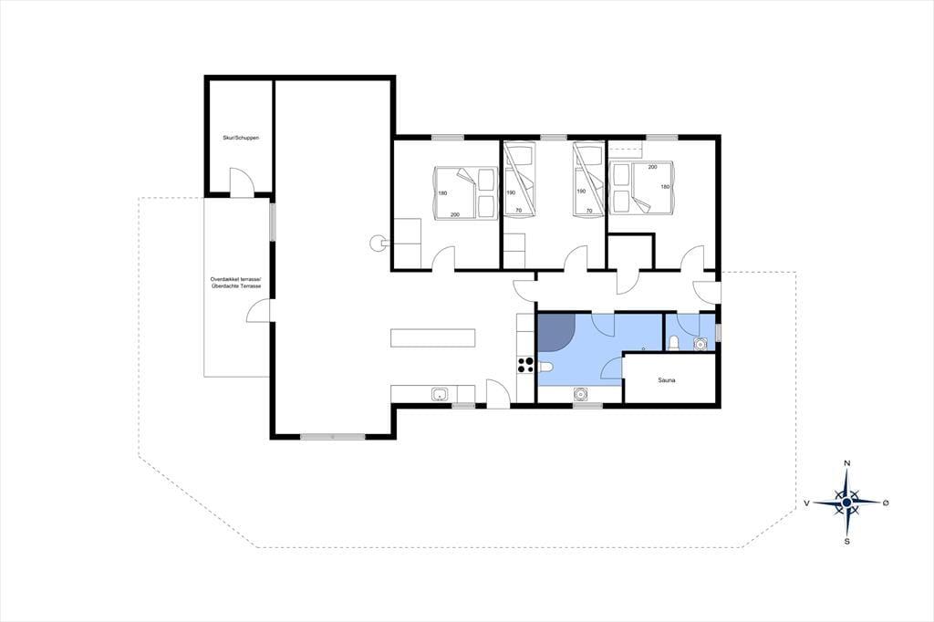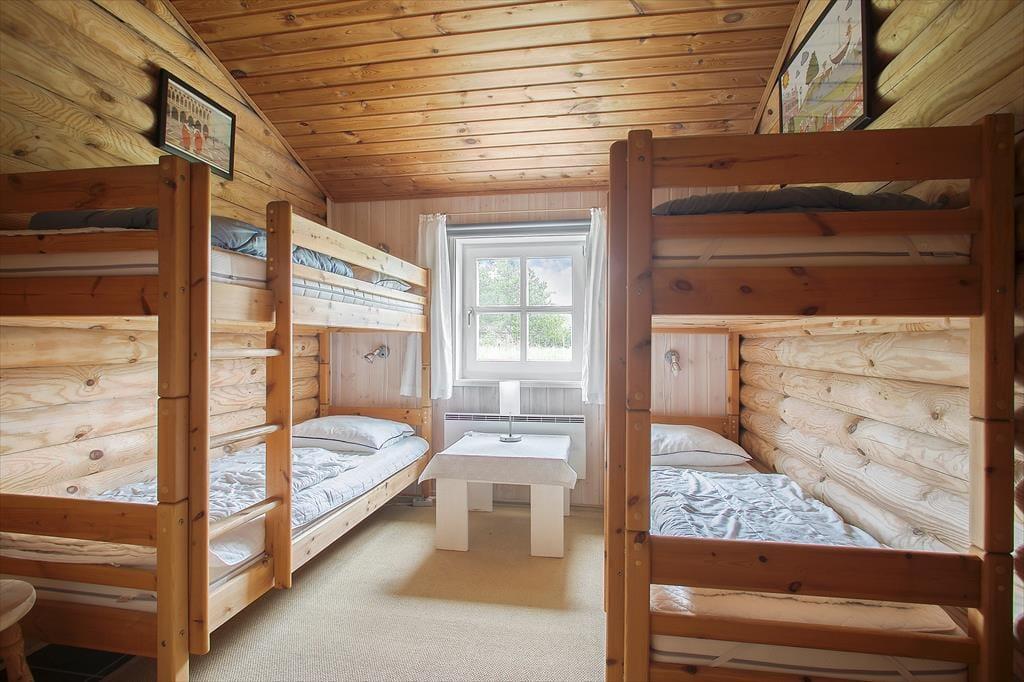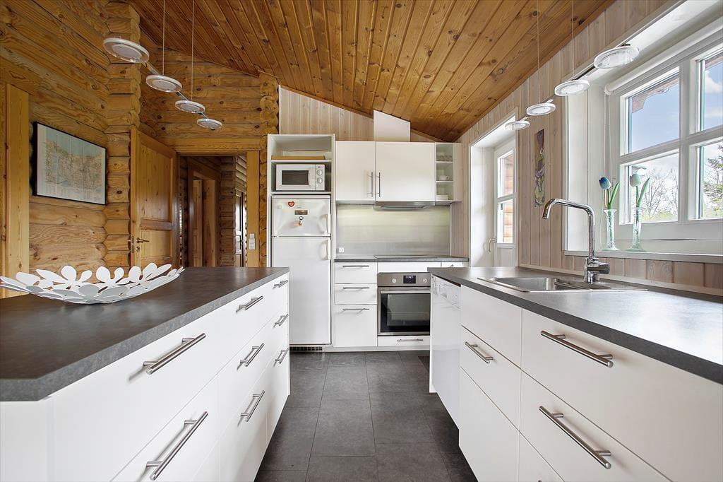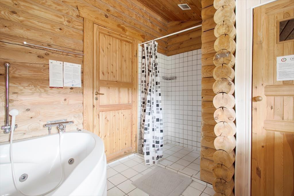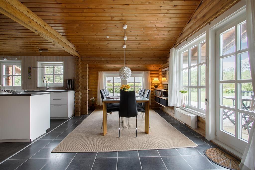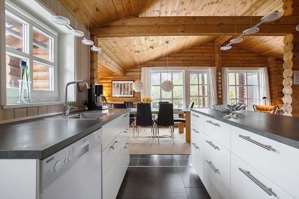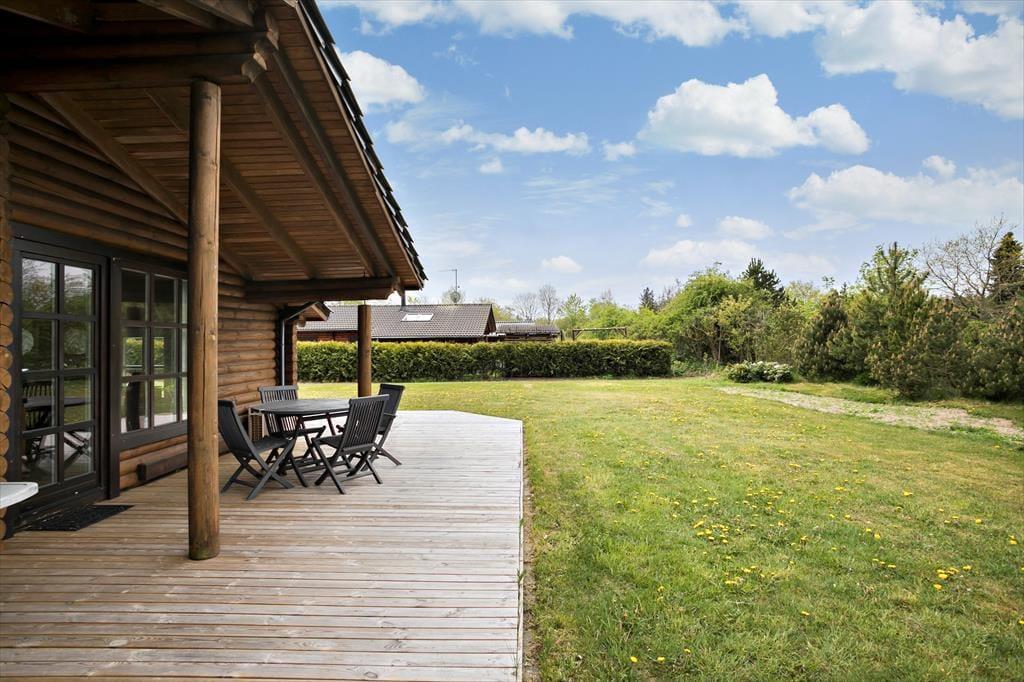 Balancen mellem rustikt og luksuriøst er virkelig velfungerende her i huset, der er opført i 2004. Som et klassisk bjælkehus har selve arkitekturen en rå charme og masser af personlighed, og samtidig er det fuld af lækre elementer – inklusiv et veludstyret køkken samt spa og sauna på badeværelset. Køkkenet ligger i åben forbindelse med en stor stue, som får lysindfald fra tre verdenshjørner og er indrettet med brændeovn. Soveværelser er der tre af, og det ene er udstyret med to køjesenge, så i alt er der plads til otte overnattende feriegæster i huset. Derfor er det også rart, at badeværelset har følgeskab af et gæstetoilet. Kort sagt er der tænkt over alt her i sommerhuset, lige fra den praktiske planløsning og til de mange hyggeskabende detaljer.