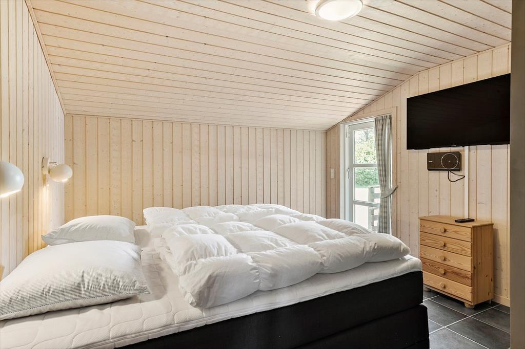 Man kan tydeligt både se og mærke, at der er blevet passet godt på sommerhuset siden seneste renovering, der foregik i 2008. Det komfortable møblement inviterer til hyggestunder i roligt tempo – for eksempel i nærheden af stuens brændeovn, der sammen med varmepumpen sørger for en god temperatur selv på kolde dage. Ferietiden kan også bruges på at kræse om maden i det åbne køkken, der er veludstyret med gode hvidevarer. Opvasken må I dog klare i hånden, men når man har god tid, kan det også nemt gøres til en hyggelig seance ved fælles hjælp. Et rummeligt badeværelse med vaskemaskine, tørretumbler og gulvvarme hører også til planløsningen foruden to soveværelser, hvoraf det store master bedroom er udstyret med god skabsplads, TV og direkte udgang til terrassen.
