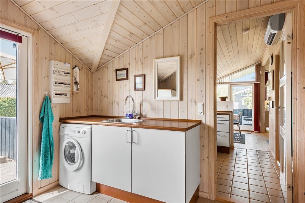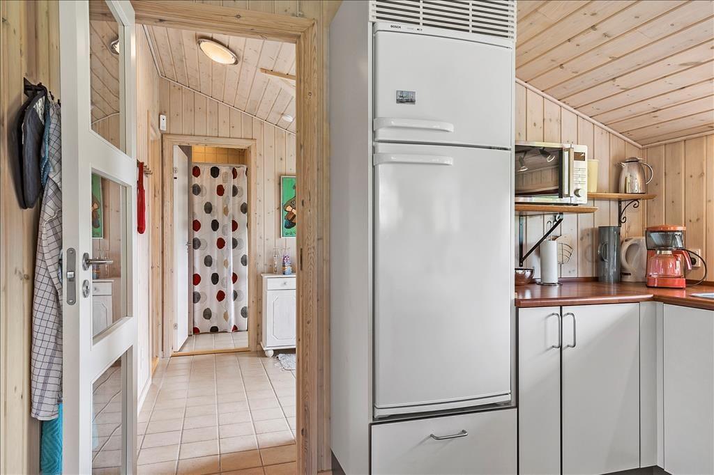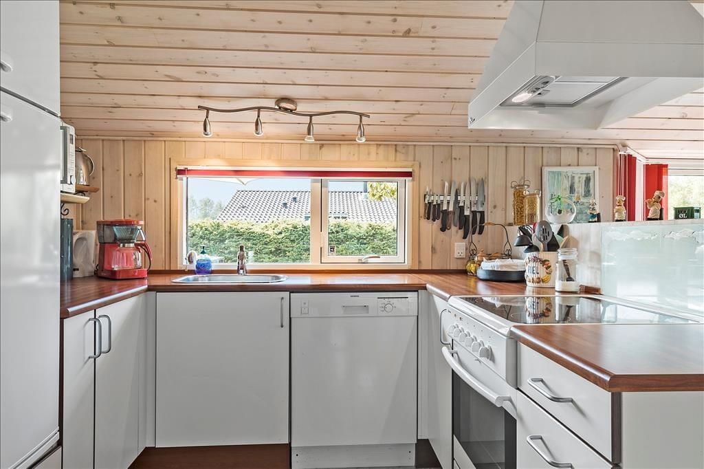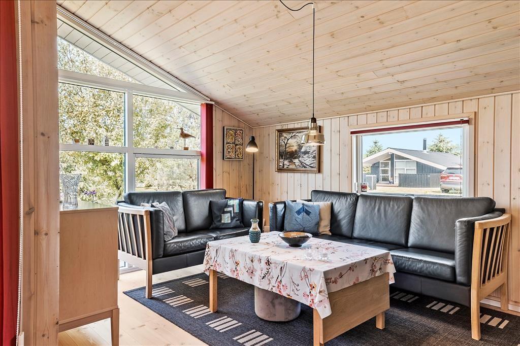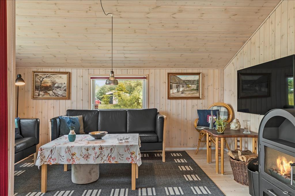 Atmosfæren er lys og indbydende inden døre i sommerhuset, der er en velbygget ejendom fra 2006. Hver eneste af husets 72 m2 er fornuftigt udnyttet, og alle rum er velindrettede: Den rummelige entré er udstyret med vaskemaskine, og på de tre soveværelser kan I se frem til en god nats søvn i de komfortable senge. På badeværelset er der gulvvarme, så I ikke får kolde tæer, når I træder ud fra brusebadet, og takket være den åbne forbindelse mellem køkken og stue kan I nyde varmen fra brændeovnen og hinandens selskab, selv når aftensmaden skal forberedes.