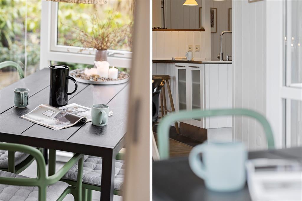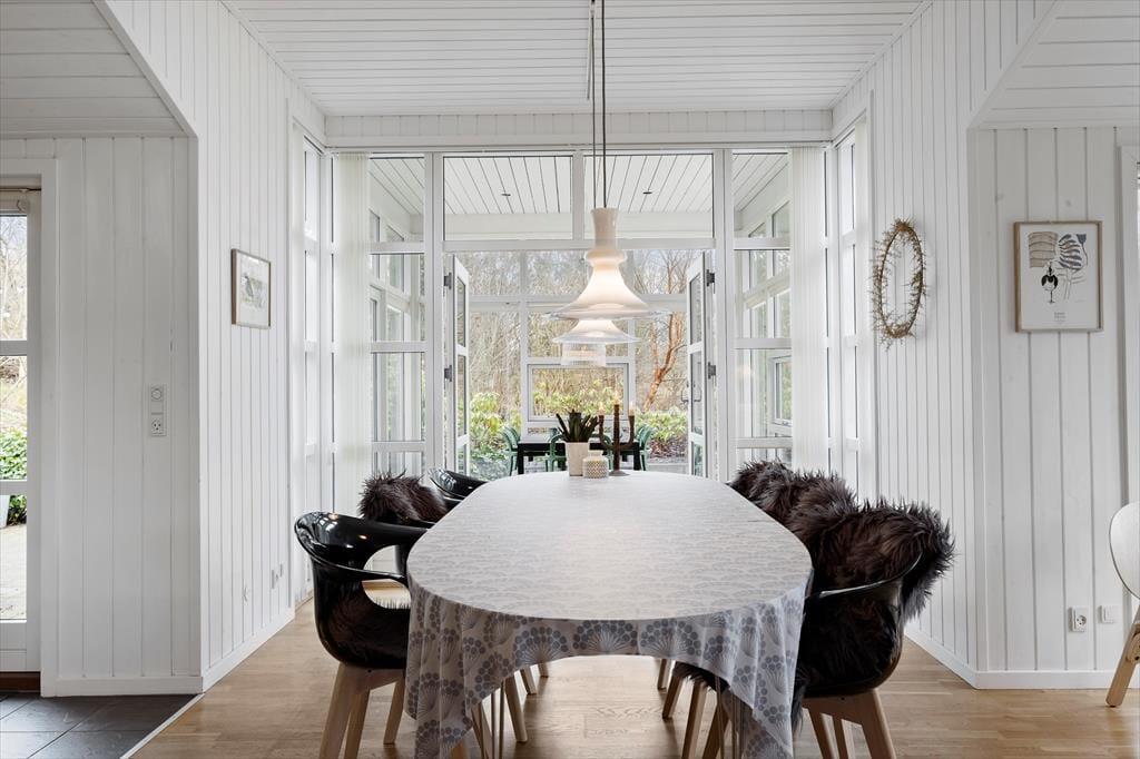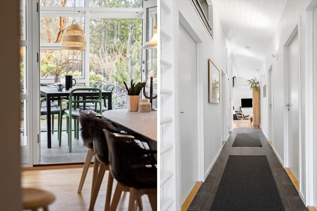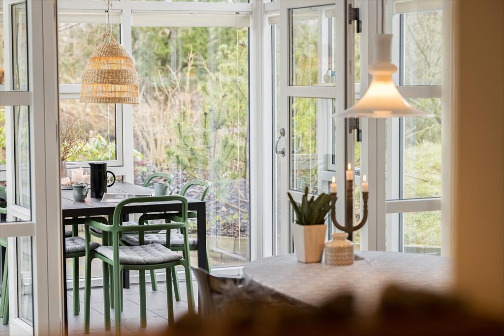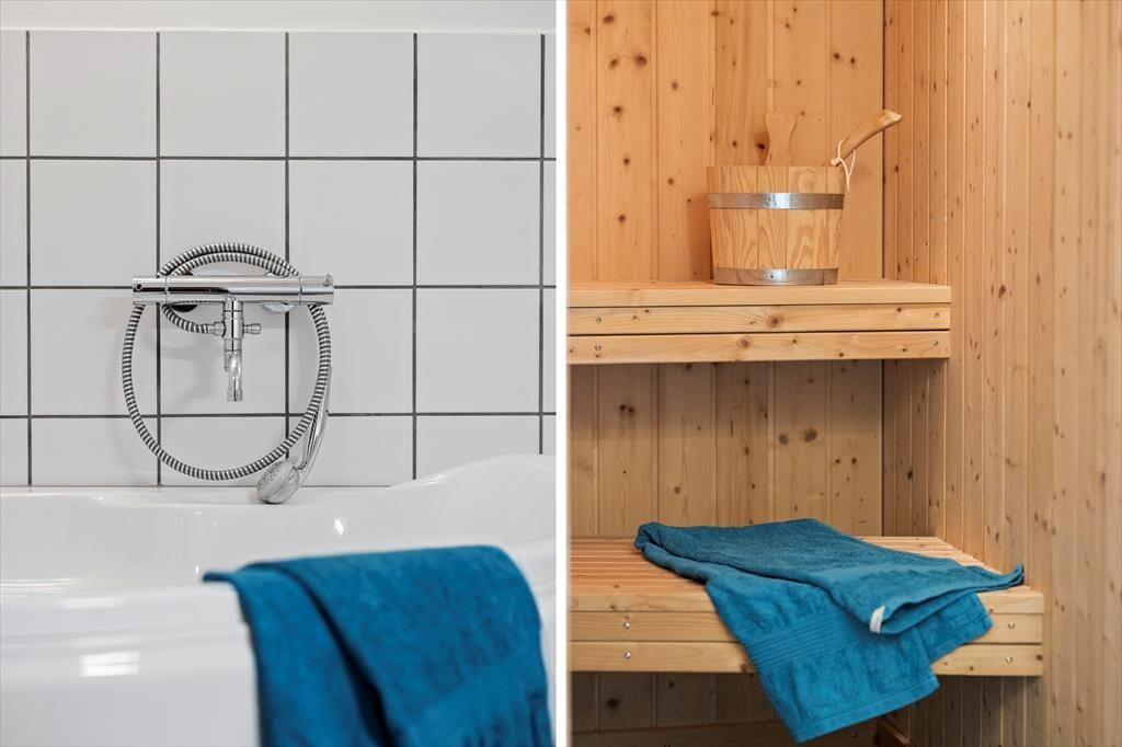 Måske er haven vild og vilter, men der er styr på tingene inden døre. Her venter der dig nemlig en lys og velindrettet feriebolig med pænt møblement og lækre detaljer – inklusiv en brændeovn i stuen såvel som spabad og sauna på det største af de to badeværelser. De fire soveværelser indbyder til både middagslure og en god nattesøvn, men når du vil hygge dig med dine kære, er det sikkert i stuen, at I vil samles for at spille spil, se film sammen eller bare dase side om side. I det flotte køkken kan I sagtens stå flere, hvis madlavningen skal være et fælles projekt, og når det er tid til at dække bord, kan I lige overveje, om måltidet skal indtages ved spisebordet eller ude i den dejlige, lysfyldte udestue.