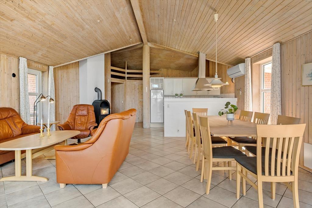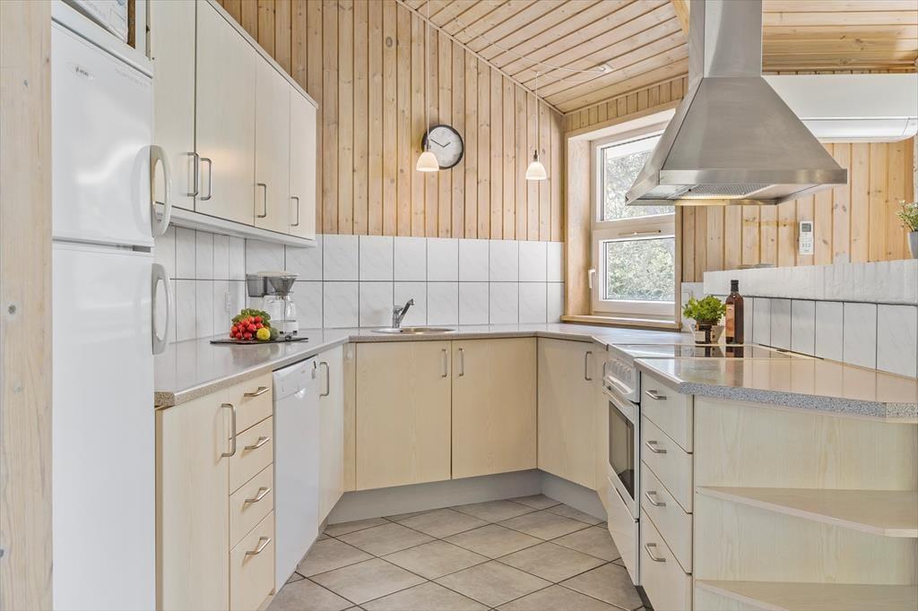 Har man en stor familie, eller vil man gerne have plads til besøg fra bedsteforældre og venner undervejs i ferien, så har dette sommerhus de helt ideelle rammer til formålet. Huset har god plads med et stort opholdsrum med åbent køkken, spiseplads og stue med brændeovn, tv og udgang til terrasser, og derudover fem soverum med 9 sengepladser og to badeværelser, hvoraf det ene er med spabad og bruser. Her er indrettet i en enkel, men hyggelig stil, med klinkegulv, lyse vægge og højt til loftet og sommerhuset er udstyret med alle tænkelige hjælpemidler fra opvaskemaskine til tørretumbler, så man kan holde så afslappende en ferie som overhovedet muligt. Endelig skal det gratis og trådløse internet nævnes, så medbring endelig pc eller computer, så man har mulighed for at søge information og oplysninger om området.
