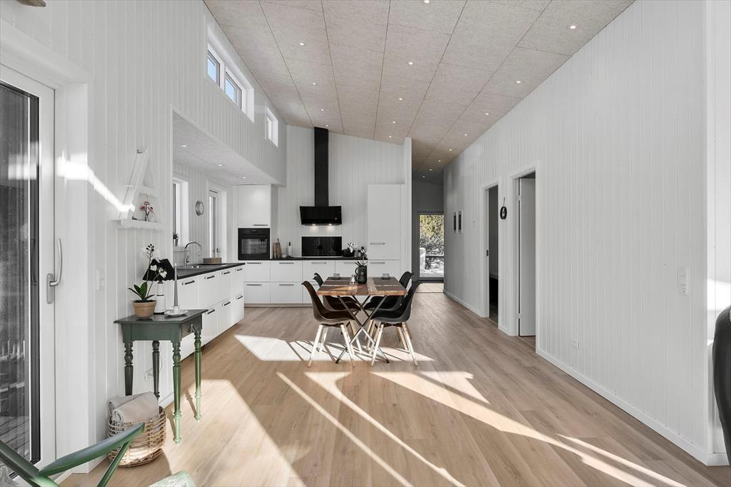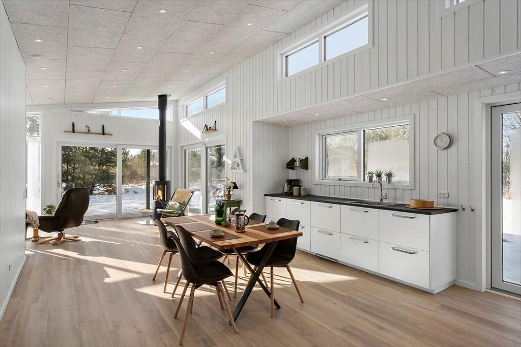 Sommerhus i Kollerup Klit, Nordjylland, med plads til 5 voksne. Der er en hyggelig indretning med bl.a. brændeovn, og du finder desuden vaskemaskine, opvaskemaskine og tørretumbler i boligen.