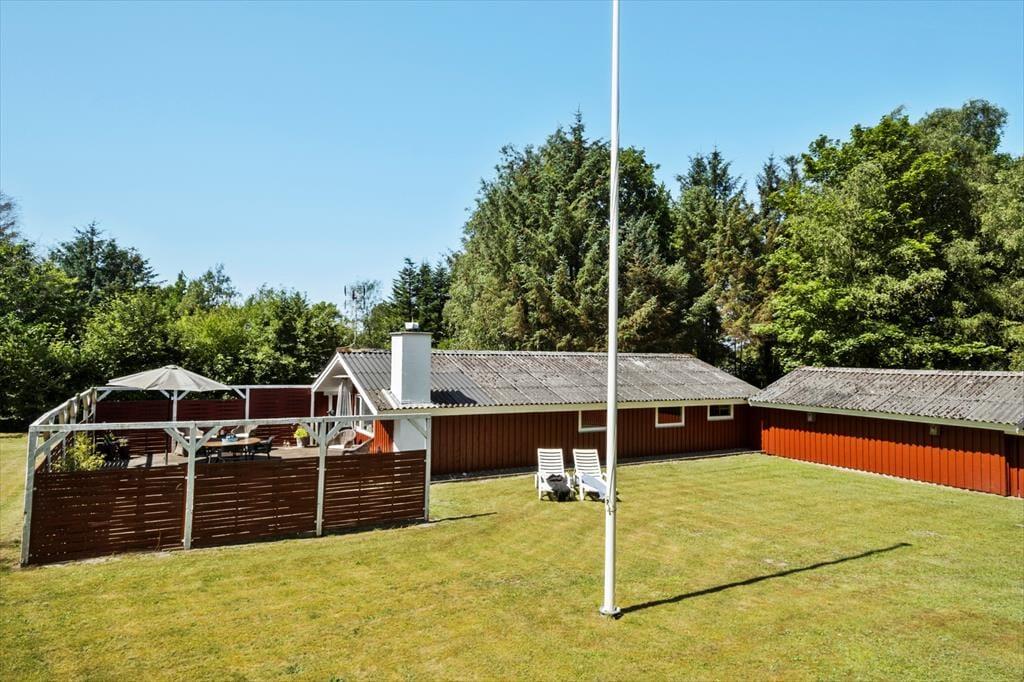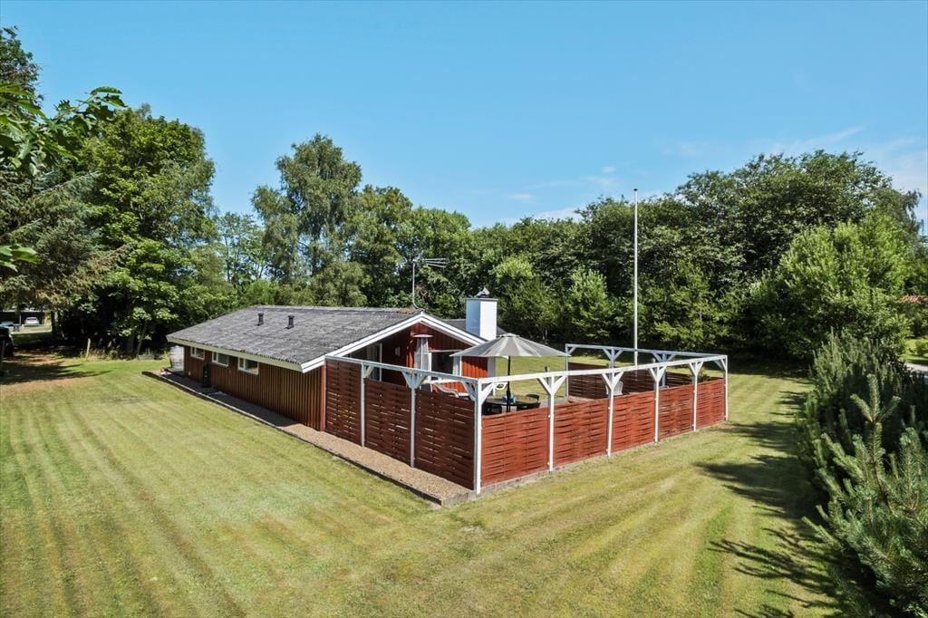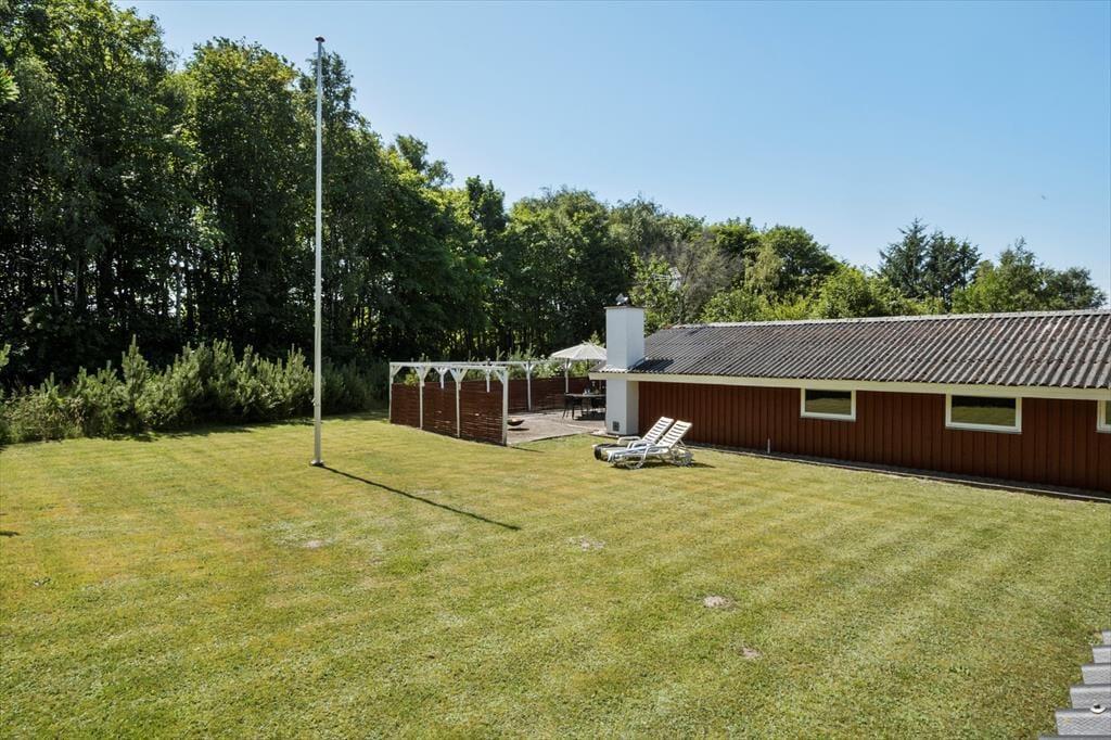 Det er især udelivet, der gør dette sommerhus ekstra attraktivt. Fra stuen er der direkte adgang til en dejlig terrasse, som hurtigt bliver feriens foretrukne opholdssted. Her kan I starte dagen med morgenkaffe i solen, nyde frokosten i det fri eller lade aftenen glide over i grillhygge under åben himmel. Hele grunden er fuldt indhegnet, hvilket giver en tryg og afslappet ferie – særligt for jer, der har hund med. Her kan jeres firbenede familiemedlemmer bevæge sig frit rundt, mens I læner jer tilbage og nyder roen. Også for børn giver det en ekstra frihed og tryghed, at haven er lukket hele vejen rundt. Her er der plads til leg, afslapning og lange sommerdage, hvor ferien får lov at udfolde sig i jeres eget tempo.