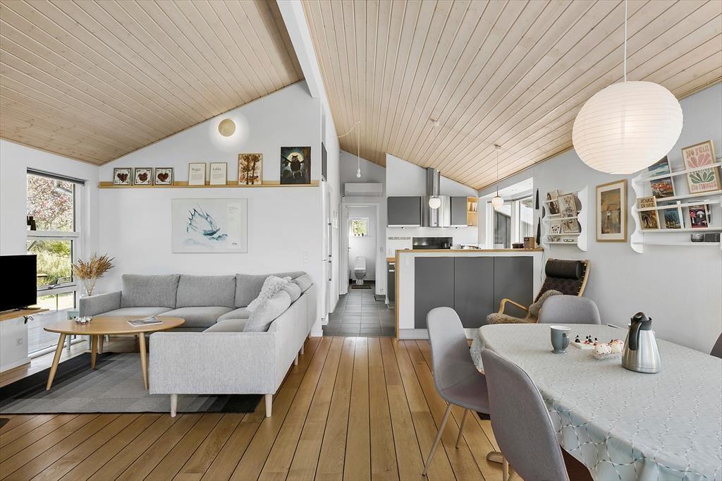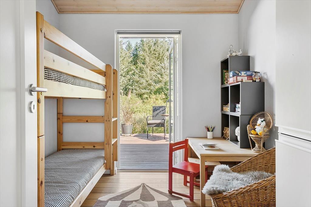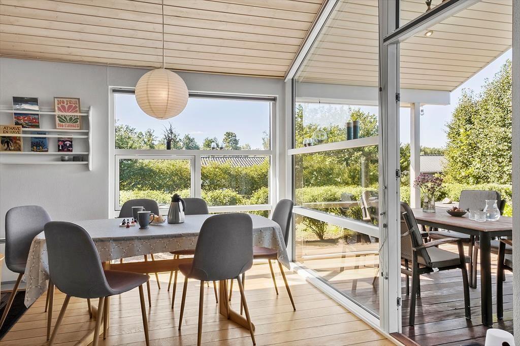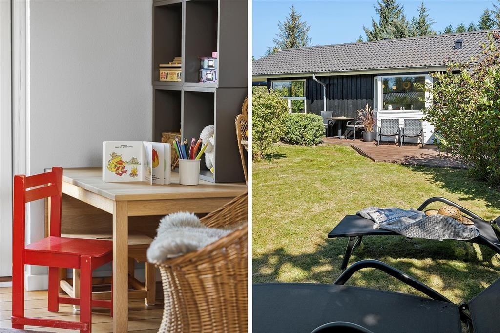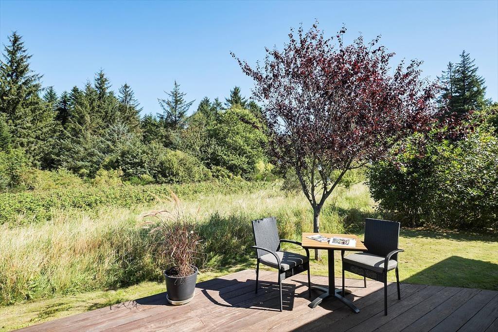 Dette sommerhus er noget særligt for naturelskeren! Huset ligger i rolige omgivelser for enden af en stikvej – helt tæt på naturen og som nabo til skov og et fredet område, hvor rådyr og fasaner ofte kigger forbi lige udenfor vinduerne. Den høje beliggenhed betyder, at huset ikke ligger i skyggen af træerne. Morgensolen kan nydes på terrassen mod nord eller på bænken mod øst, mens aftensolen indbyder til hygge og grill på den skønne overdækkede terrasse. I skuret er der desuden mulighed for at opbevare og oplade elcykler, så det er nemt at tage på tur i området.