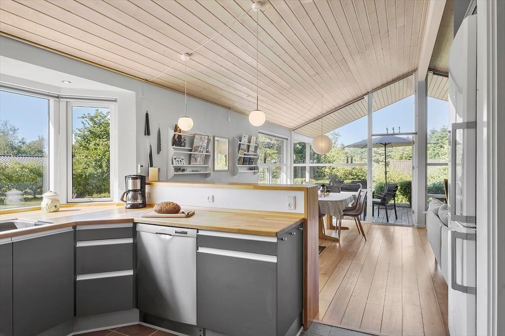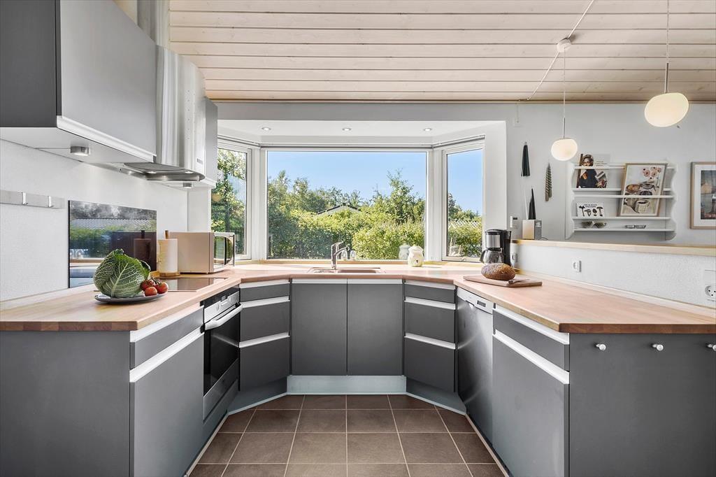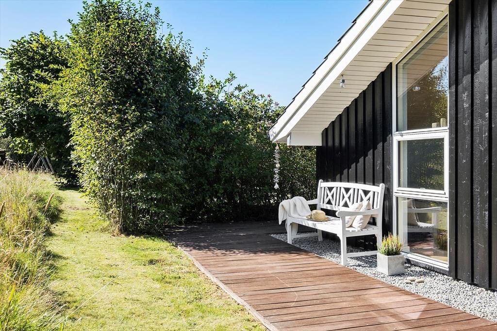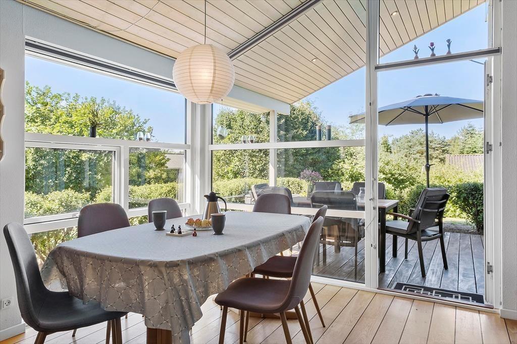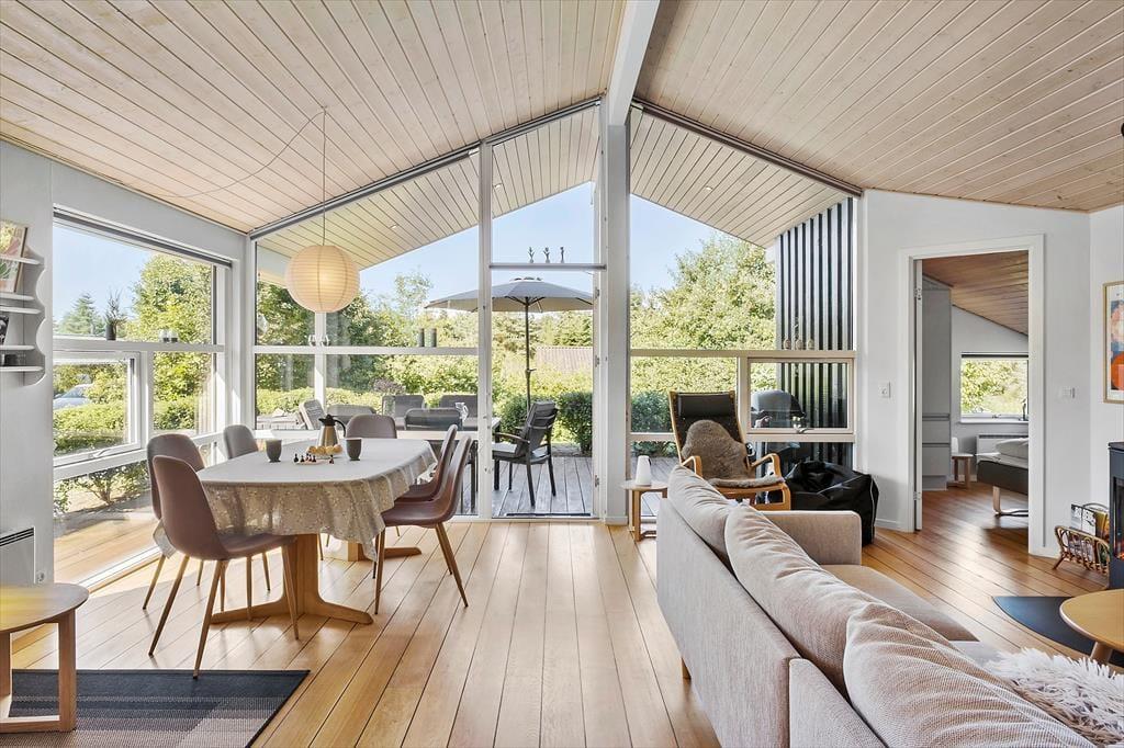 Dette sommerhus er noget særligt for naturelskeren! Huset ligger i rolige omgivelser for enden af en stikvej – helt tæt på naturen og som nabo til skov og et fredet område, hvor rådyr og fasaner ofte kigger forbi lige udenfor vinduerne. Den høje beliggenhed betyder, at huset ikke ligger i skyggen af træerne. Morgensolen kan nydes på terrassen mod nord eller på bænken mod øst, mens aftensolen indbyder til hygge og grill på den skønne overdækkede terrasse. I skuret er der desuden mulighed for at opbevare og oplade elcykler, så det er nemt at tage på tur i området.