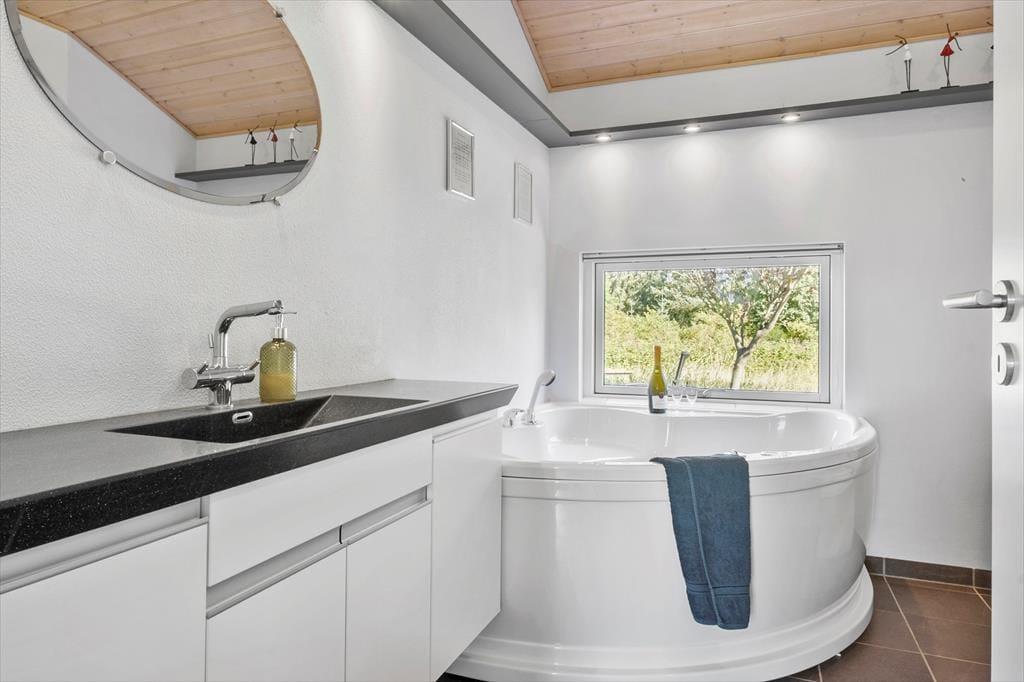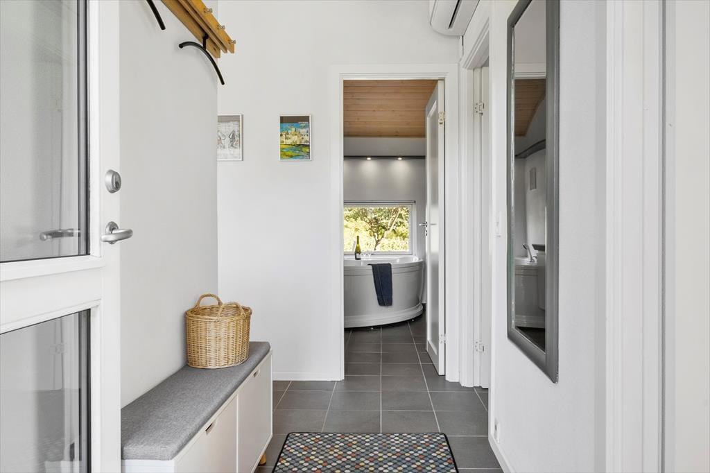Her får I et meget velholdt hus med en stilfuld indretning, hvor både brændeovn og varmepumpe skaber en hyggelig og behagelig atmosfære året rundt. Huset rummer to flotte badeværelser – det ene ekstra rummeligt og med ekstra luksus i form af spabad og sauna, hvor I kan slappe af efter en dag fyldt med oplevelser i naturen.