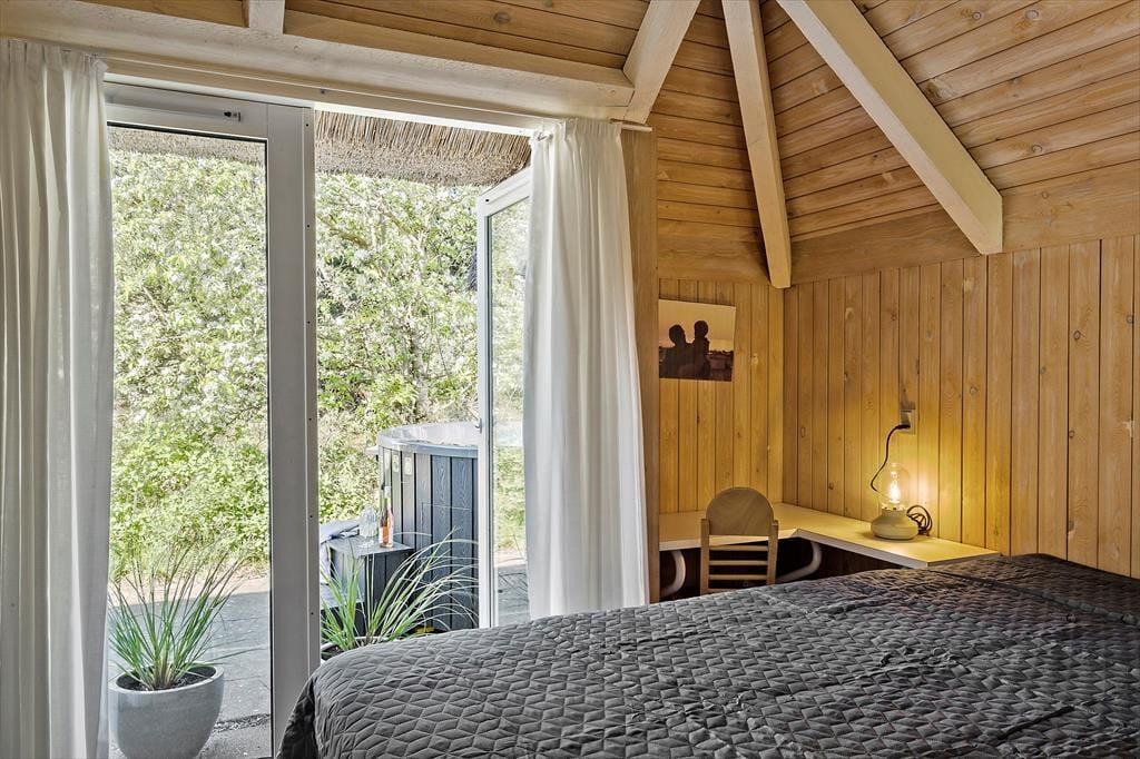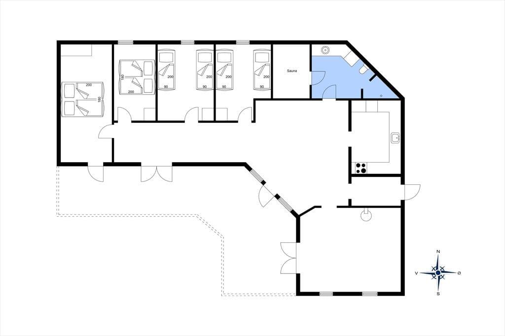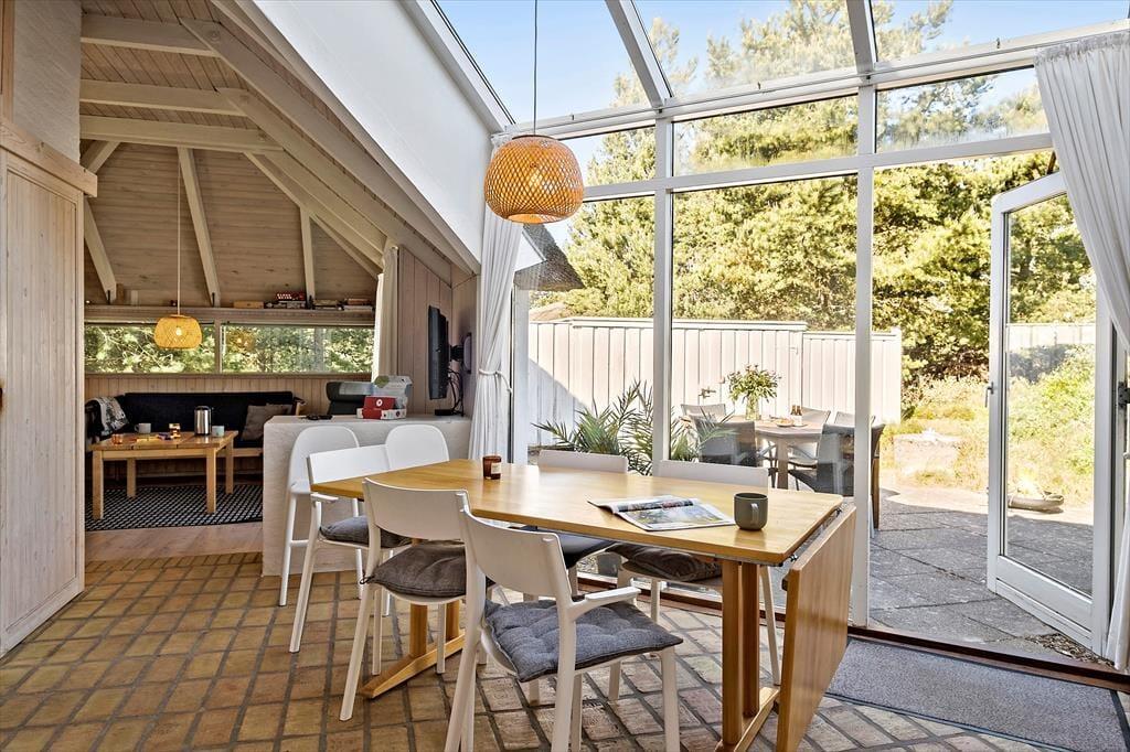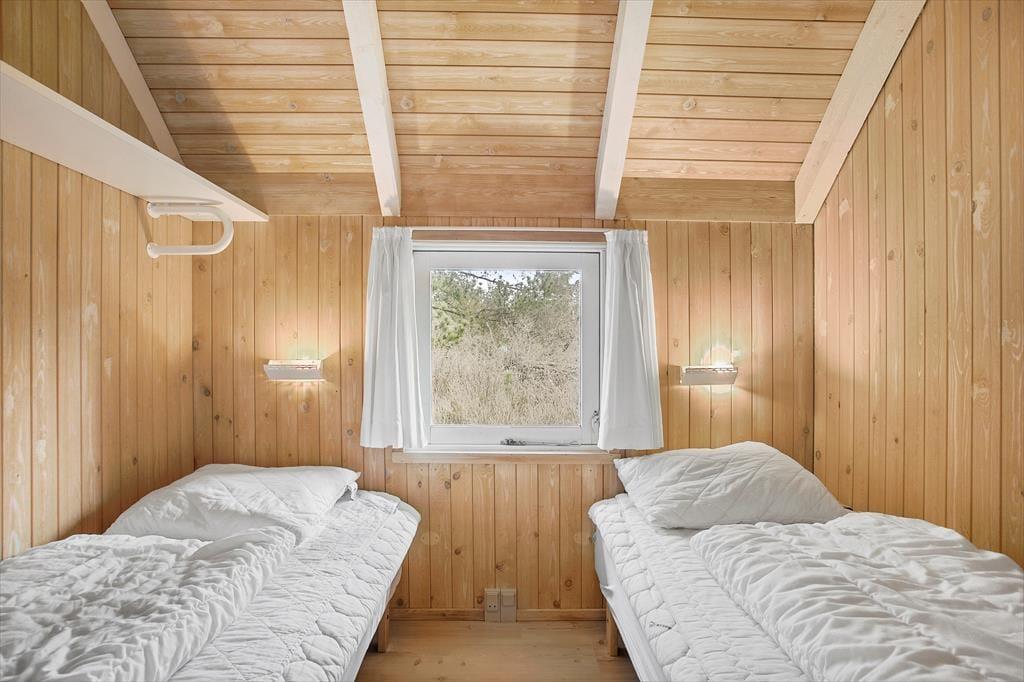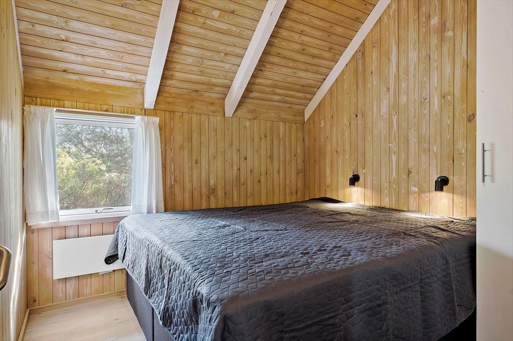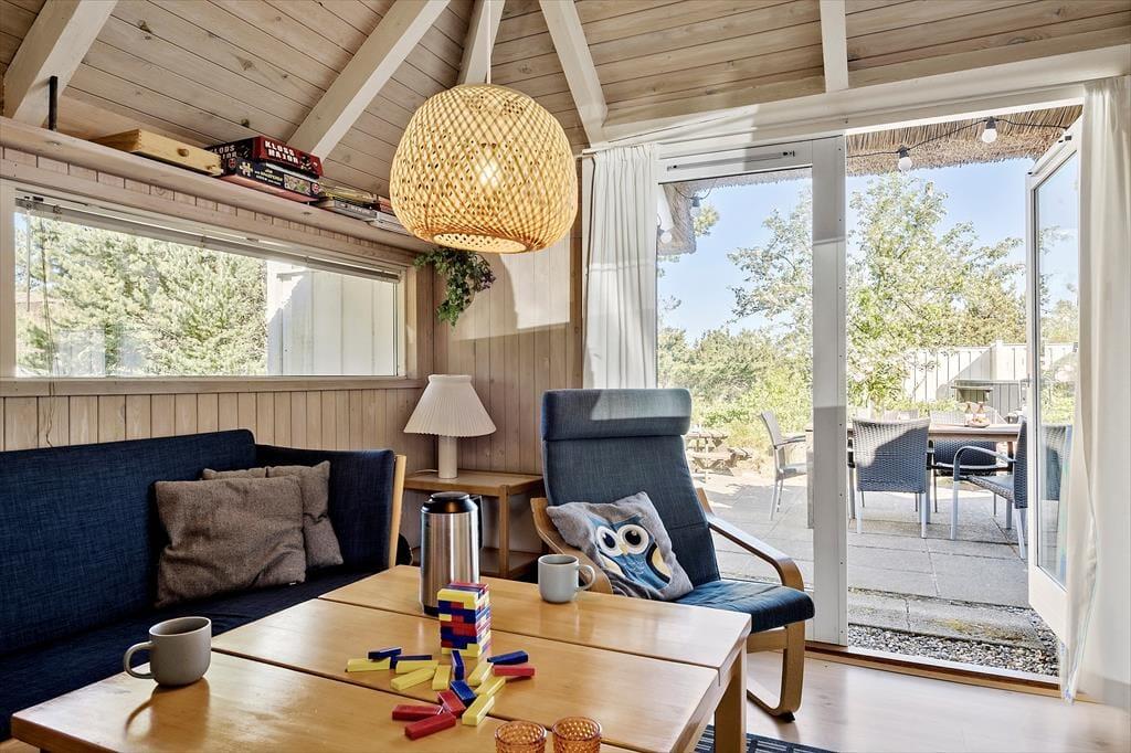 Ønsker man en ferie fyldt med skønne aktiviteter for hele familien, så er dette sommerhus et af vores bedste valg. Huset er hyggeligt og venligt indrettet med god plads til en stor familie. Køkken og spiseplads er centralt placeret i huset, og fra det store vinduesparti ved spisepladsen er her et fantastisk lysindfald. Stuen med den store brændeovn indbyder til mange fælles timer i familiens eller gode venners lag. Deudover rummer sommerhuset 4 værelser og et badeværelse med sauna.