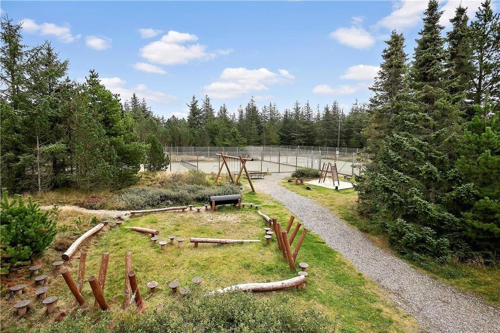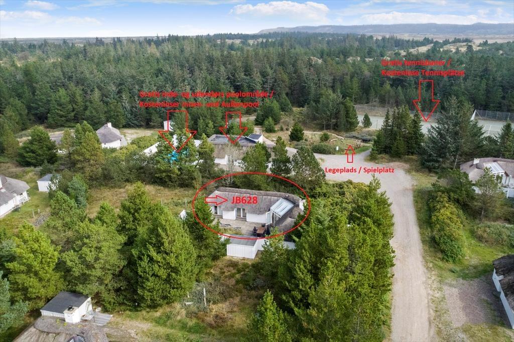 Med til huset hører et spændende fællesareal som ejes med nabohusene og som bl.a. byder på petanquebane, tennisbaner og stor legeplads, som alt sammen frit kan benyttes af gæsterne i huset. Fælles for de 52 huse i området er også en dejlig indendørs pool (i separat bygning), som kan anvendes fra påske til efterårsferien, samt en udendørs pool, som opvarmes af solen og dermed kun kan benyttes i de varmeste perioder.