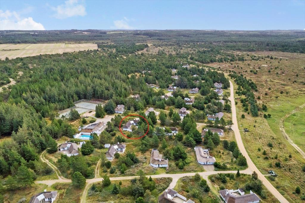 Huset er beliggende i området ved Kollerup Strand, og fra huset er der kun ganske kort afstand fra Vesterhavet. Fællesarealet som deles med nabohusene byder bl.a. på petanquebane, stor legeplads og gode tennisbaner; alt kan benyttes frit af lejerne i dette hus, og om sommeren kan man hoppe i den udendørs pool., hvis man trænger til en dukkert. Den bakkede og frodige natur ved Kollerup, Fosdalen og Klim er smuk og betagende og tager man løbeskoene på eller træder godt i pedalerne på mountainbiken er man sikker på at få nogle skønne oplevelser.
