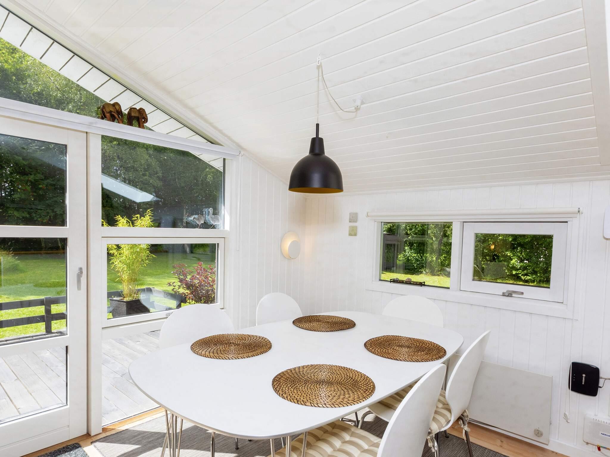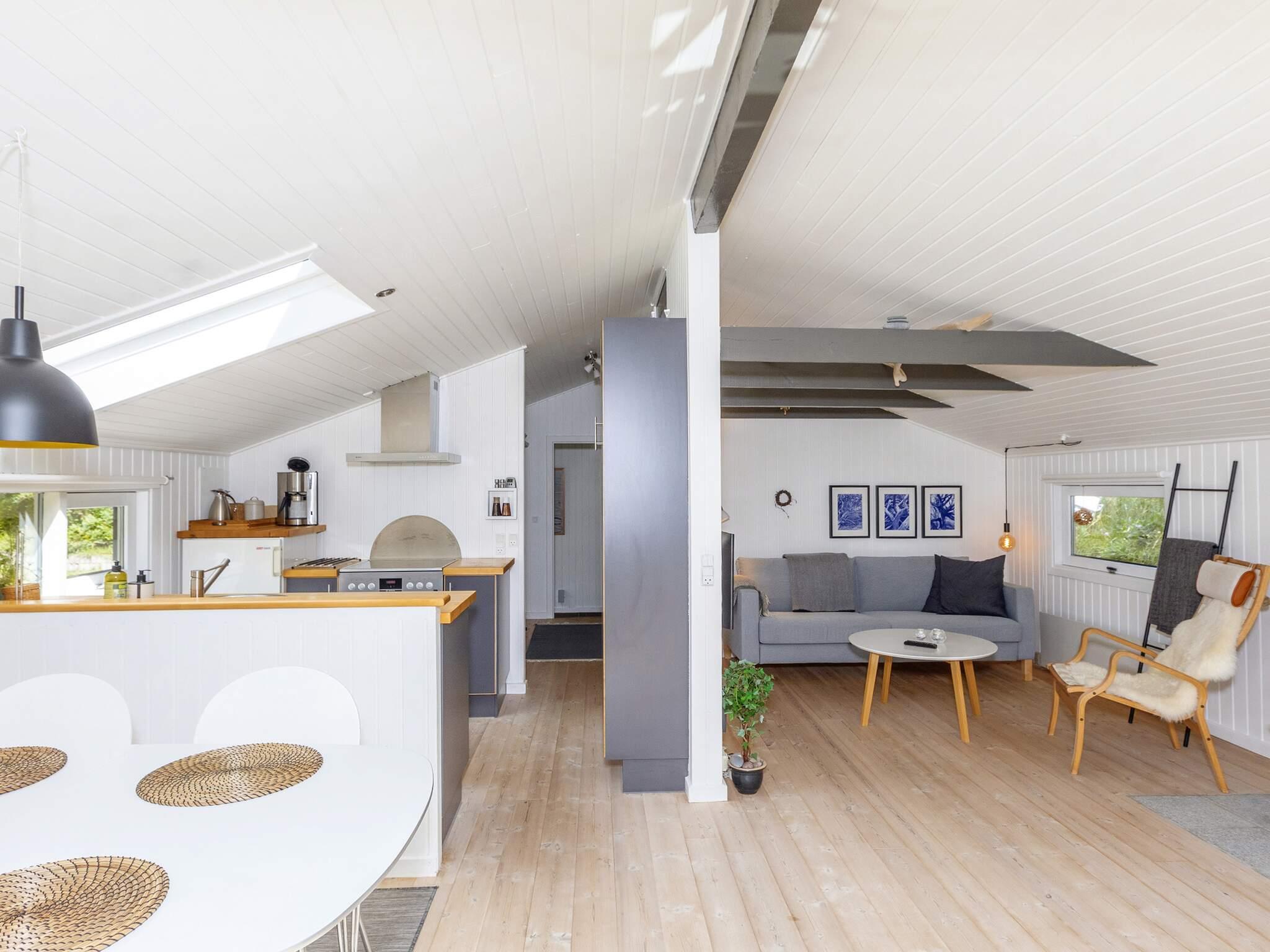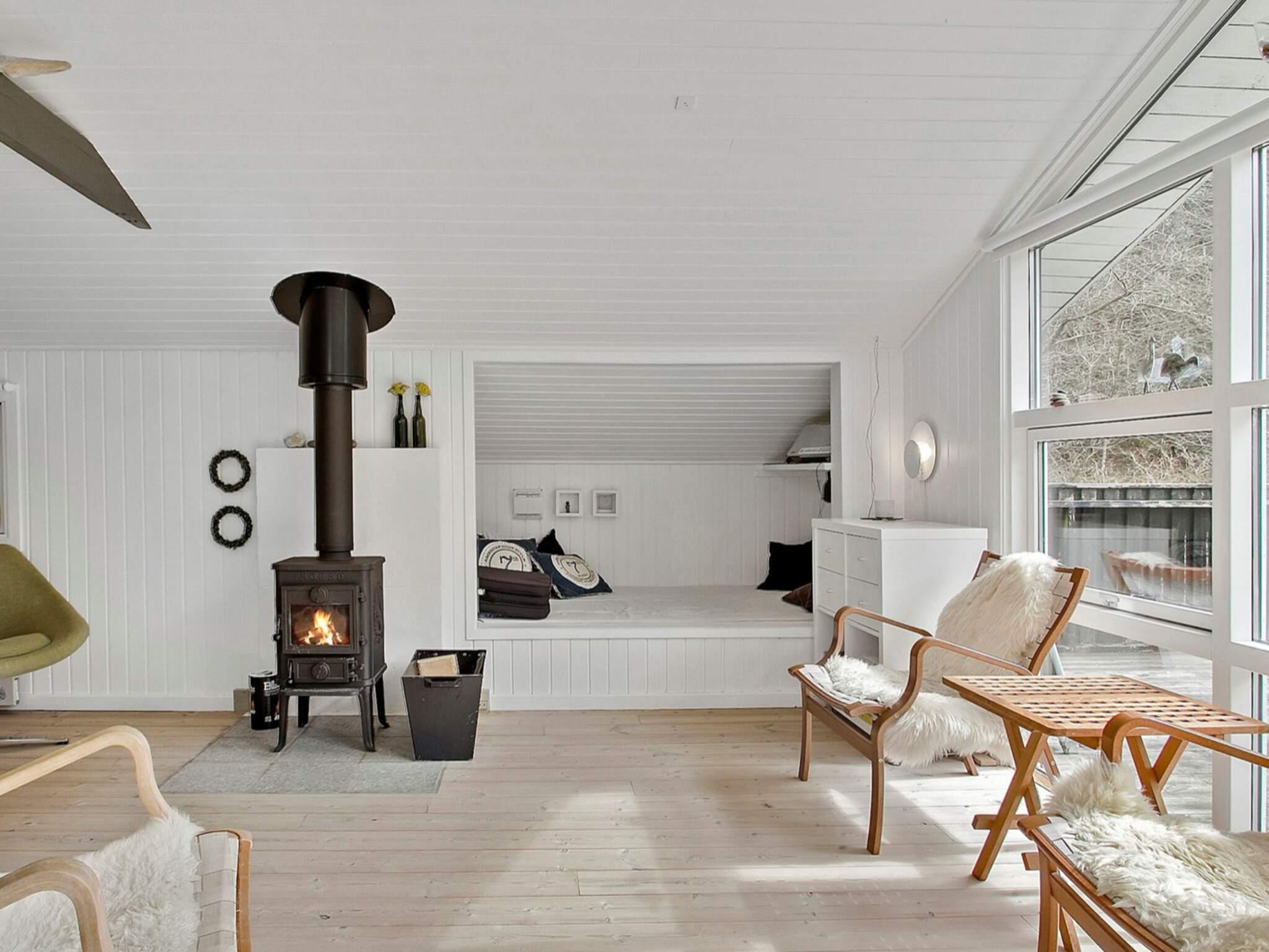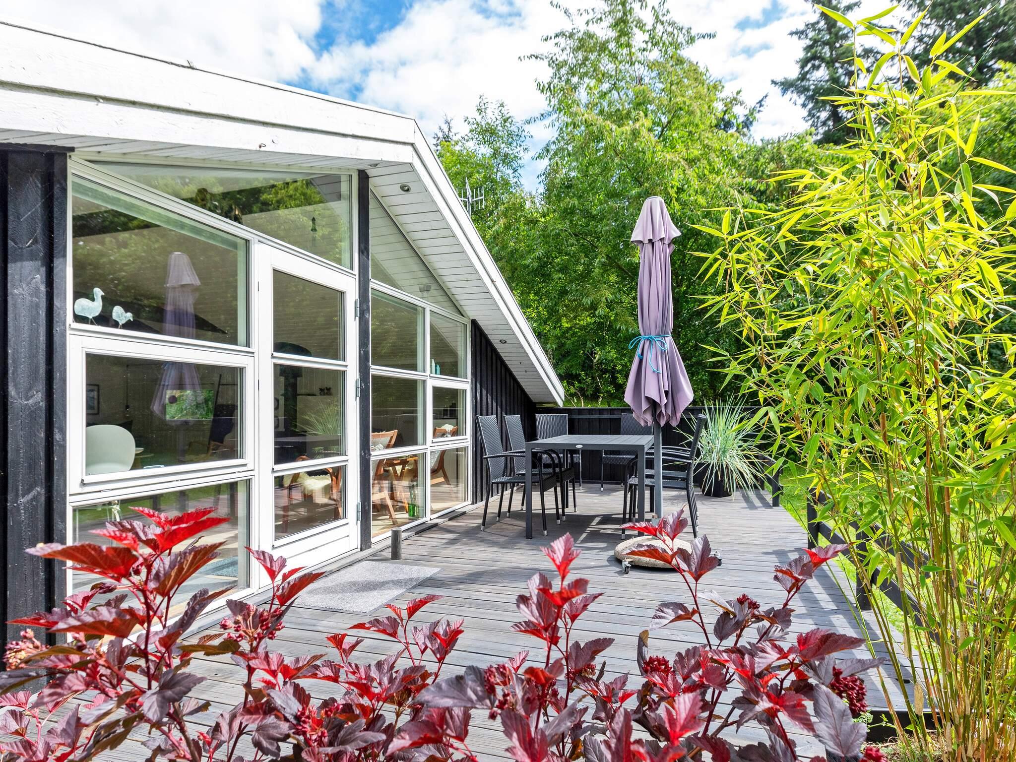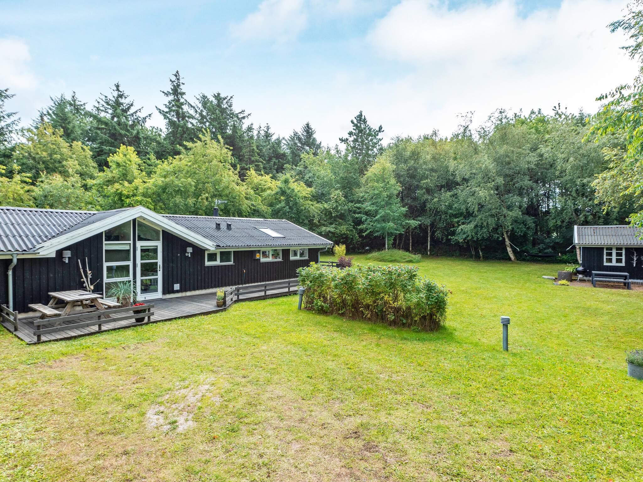 Udenfor er den syd- og vestvendte træterrasse perfekt til at nyde solrige dage og slappe af i den friske luft. Den store naturgrund er indrammet af modne træer og grænser op til et lille skovområde, der giver rolige rammer for udendørs aktiviteter, leg og stille stunder omgivet af natur. Dette feriehus kombinerer moderne komfort med en fredfyldt beliggenhed, ideel til familier, der søger en afslappende kystflugt.