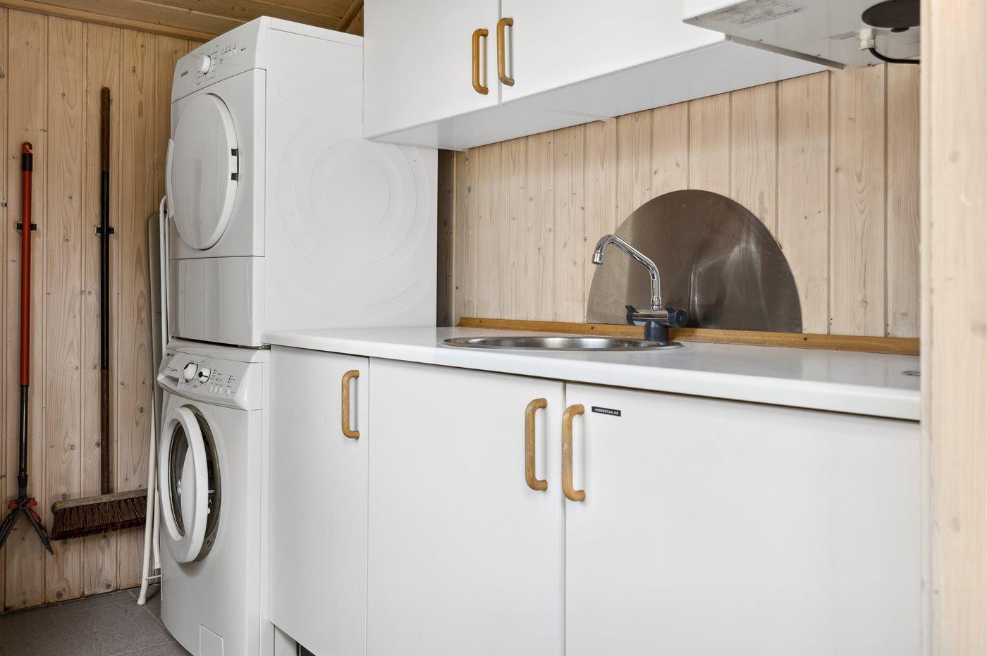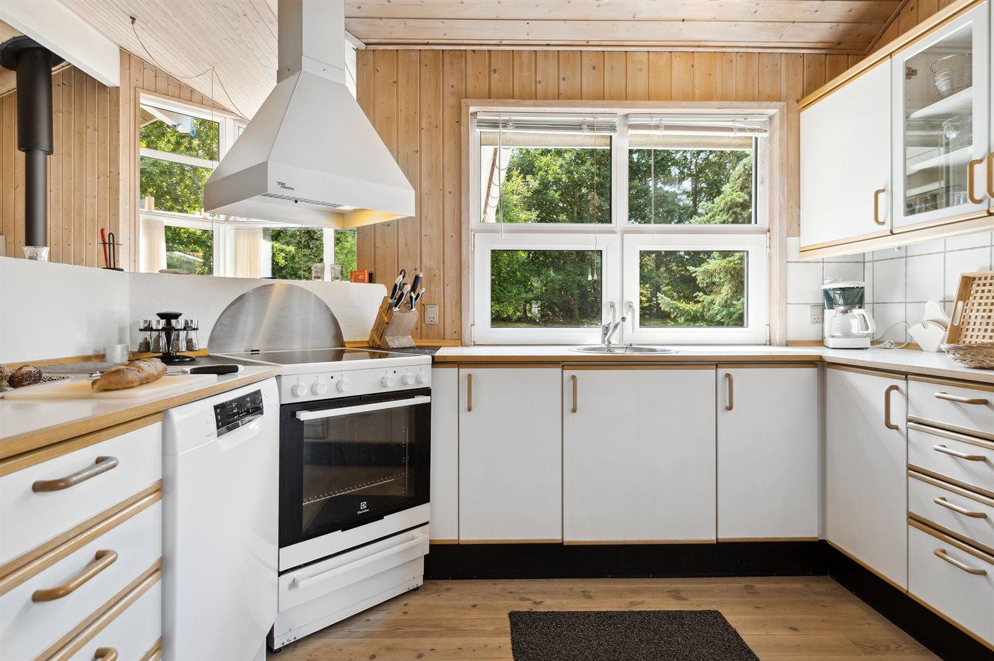 Køkkenet er udstyret med 1 køleskab. Der er 4 keramiske kogeplader, varmluftovn, mikrobølgeovn samt opvaskemaskine.