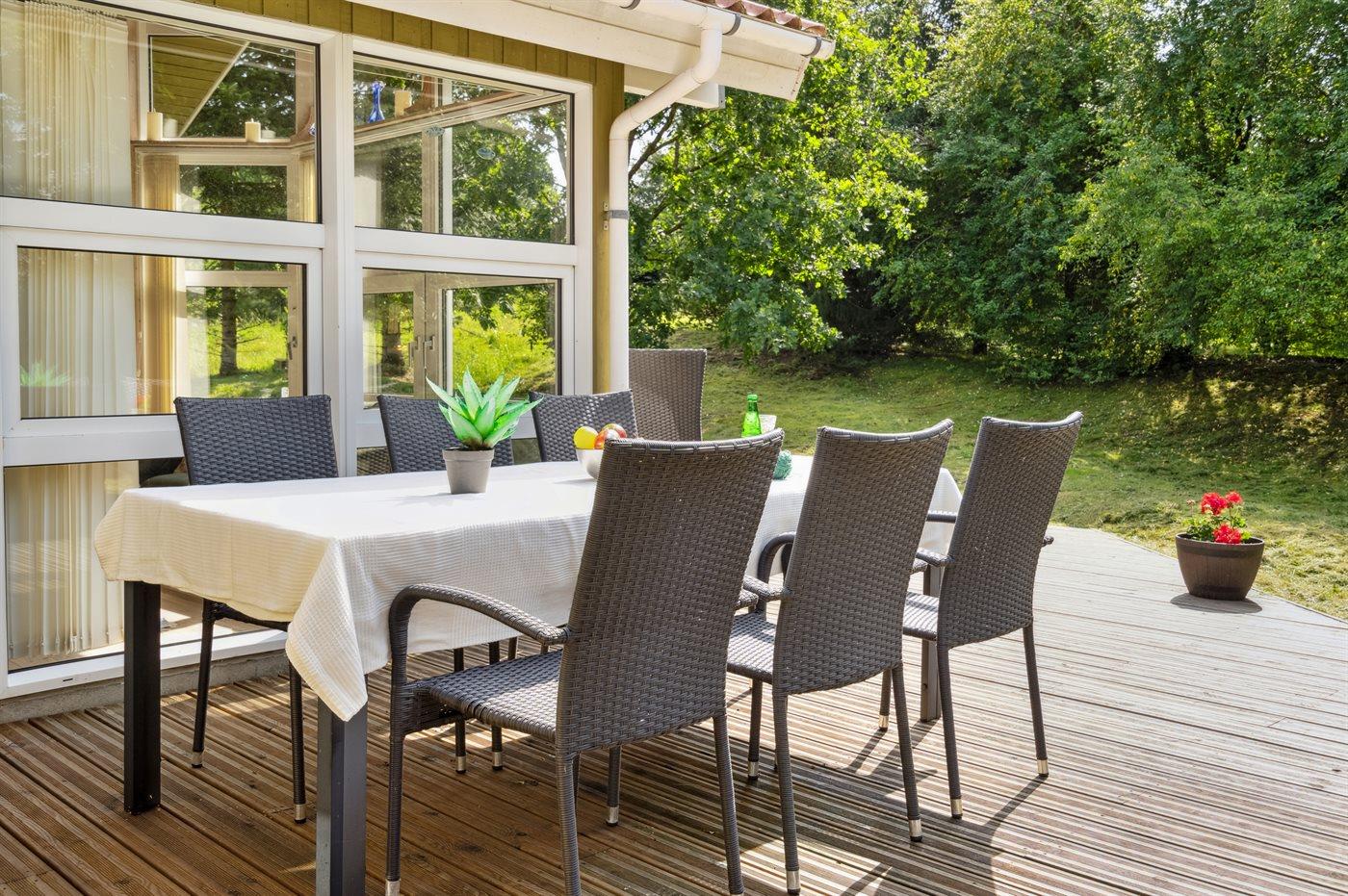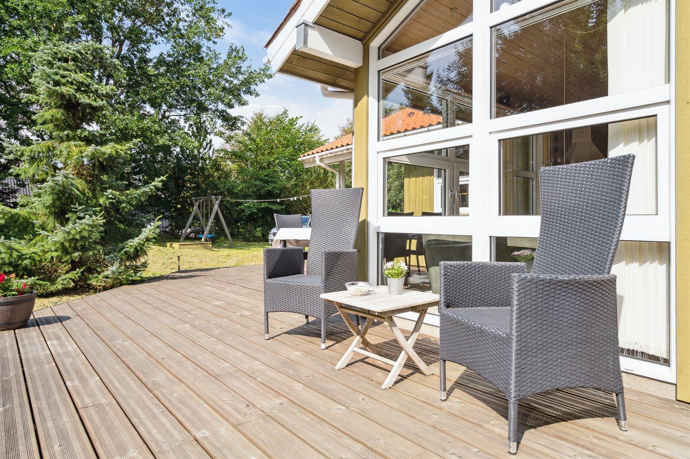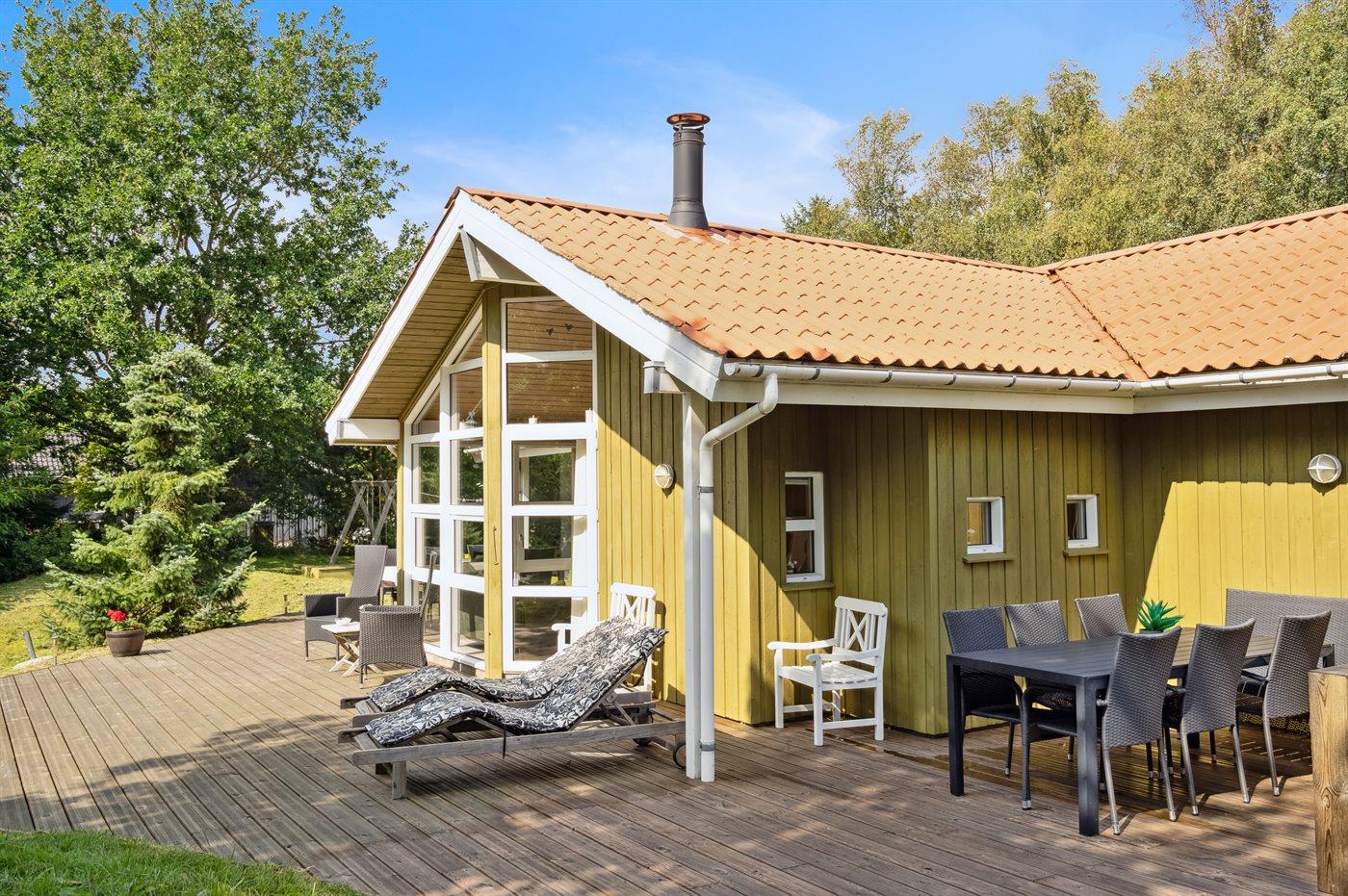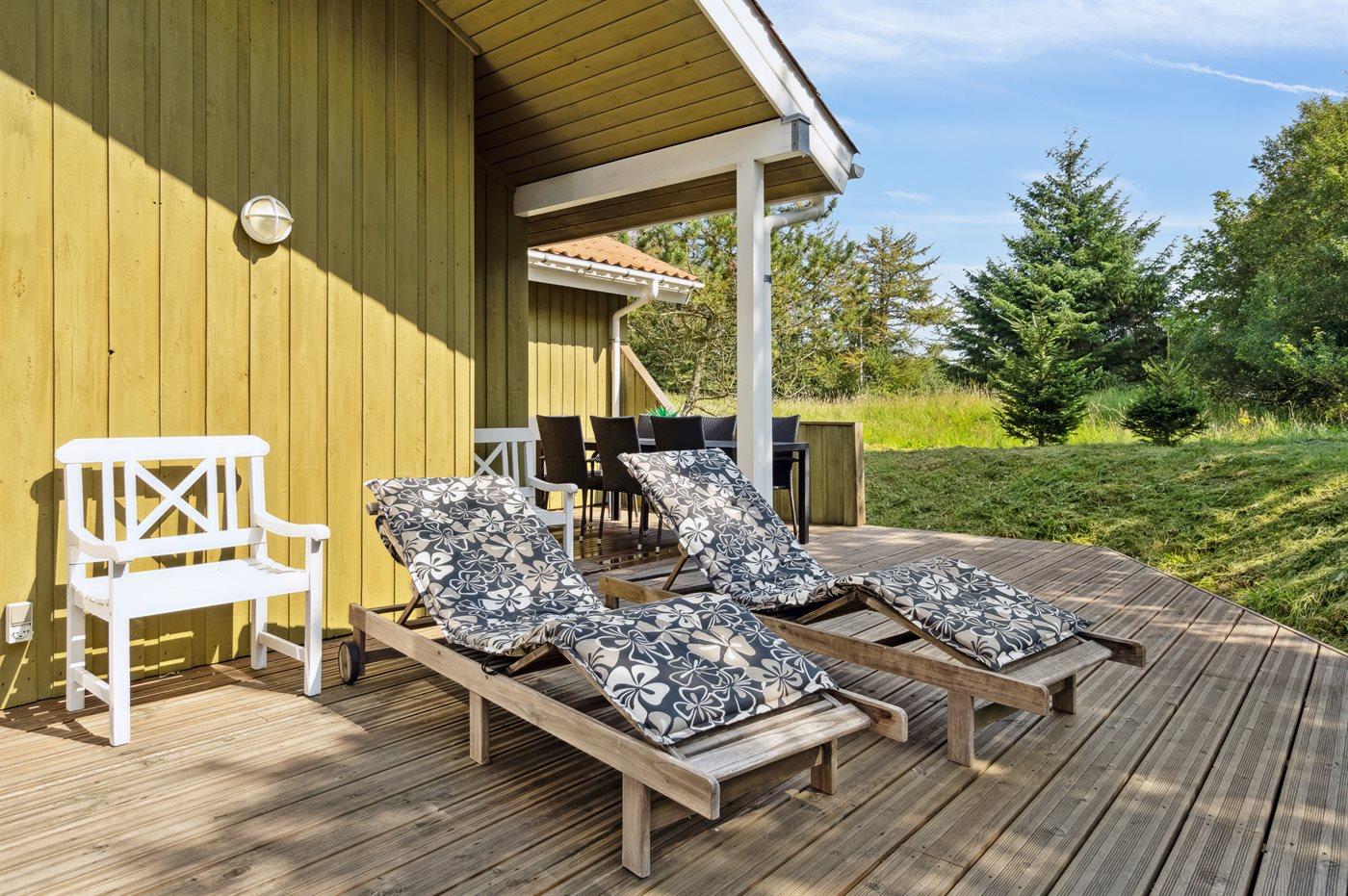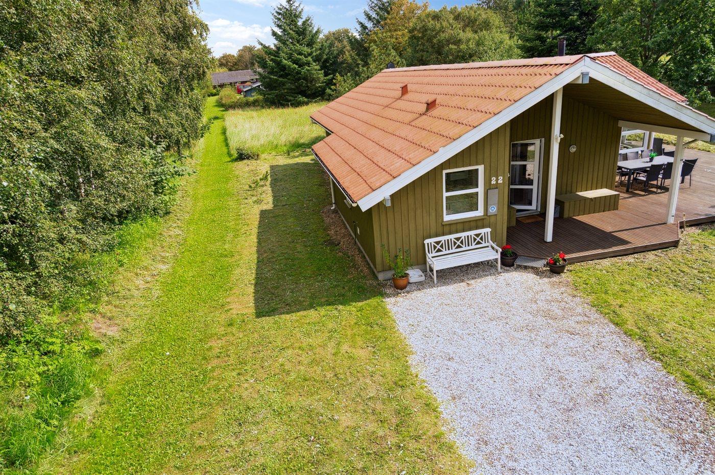 Ferieboligen er beliggende på en 1200 m² stor naturgrund. Der er 5000 m til havet. Nærmeste forretning er beliggende i en afstand af 2000 m. Til ferieboligen hører 23 m² terrasseareal. Desuden er der 12 m² overdækket terrasse. Gynge. Sandkasse. Bålsted. Parkering ved ferieboligen.