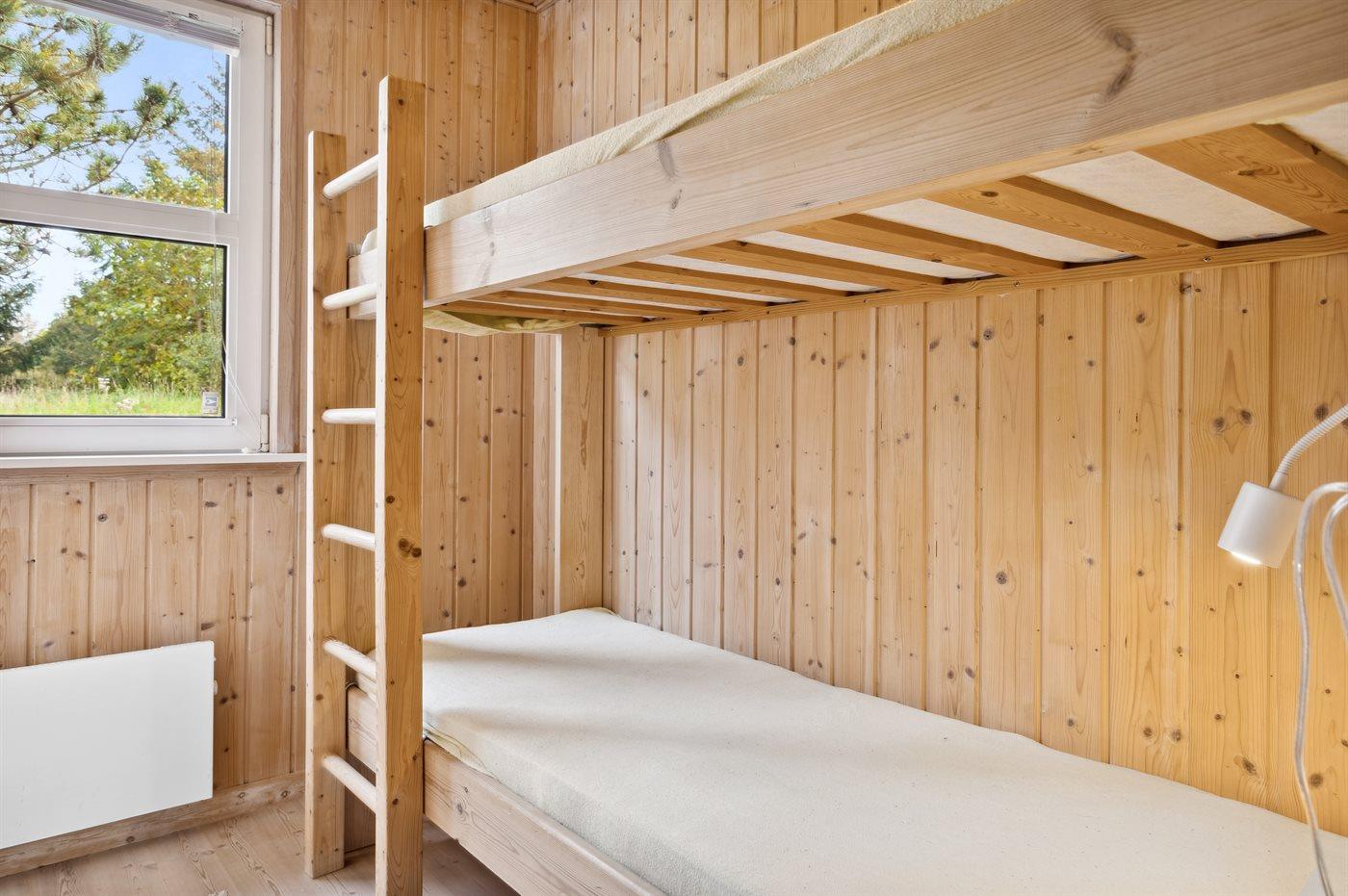 Der er i alt 4 soveværelser. Sovepladserne fordeler sig på: 2 sovepladser i dobbeltseng. 2 sovepladser i enkeltsenge. 4 sovepladser i køjesenge. Derudover er der 1 stk. barneseng.