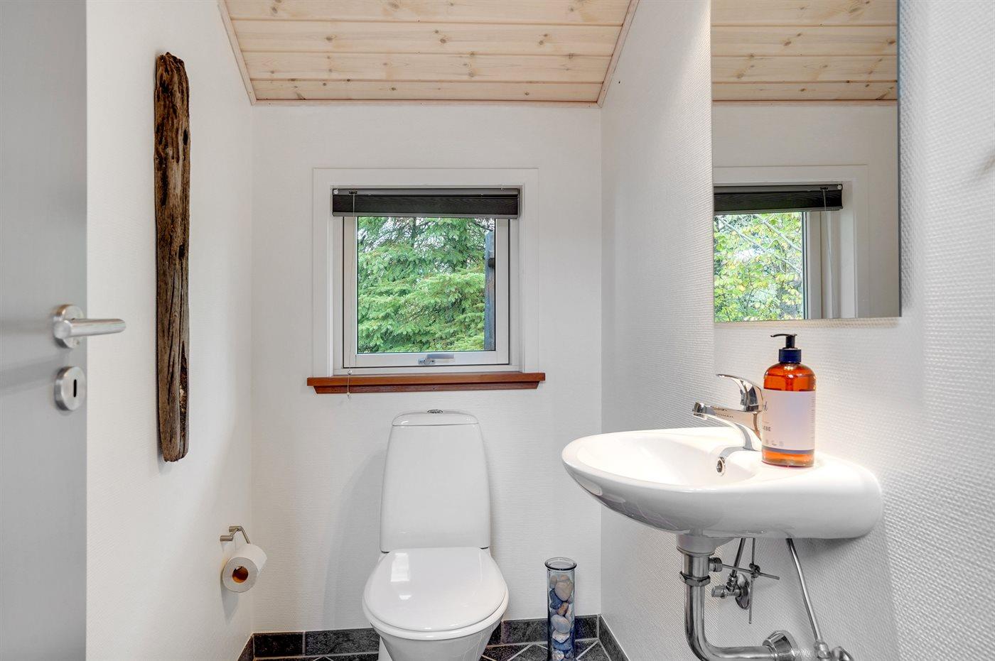 Der er 1 badeværelse med bruseniche og 2 toiletter, heraf 1 gæstetoilet. Der er gulvvarme på 1 badeværelse. Der er gulvvarme på gæstetoilettet.