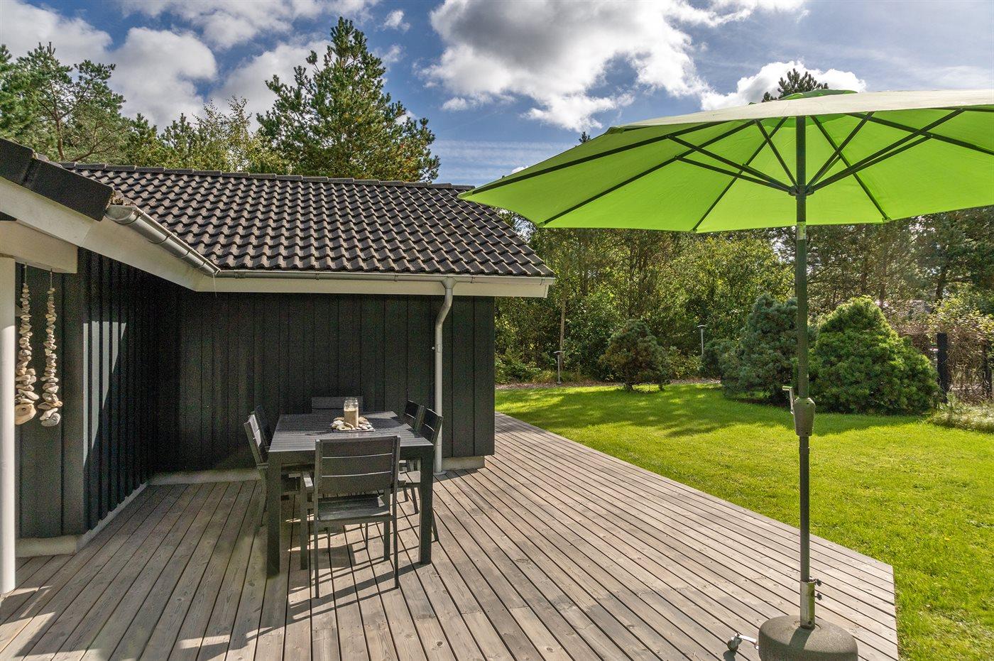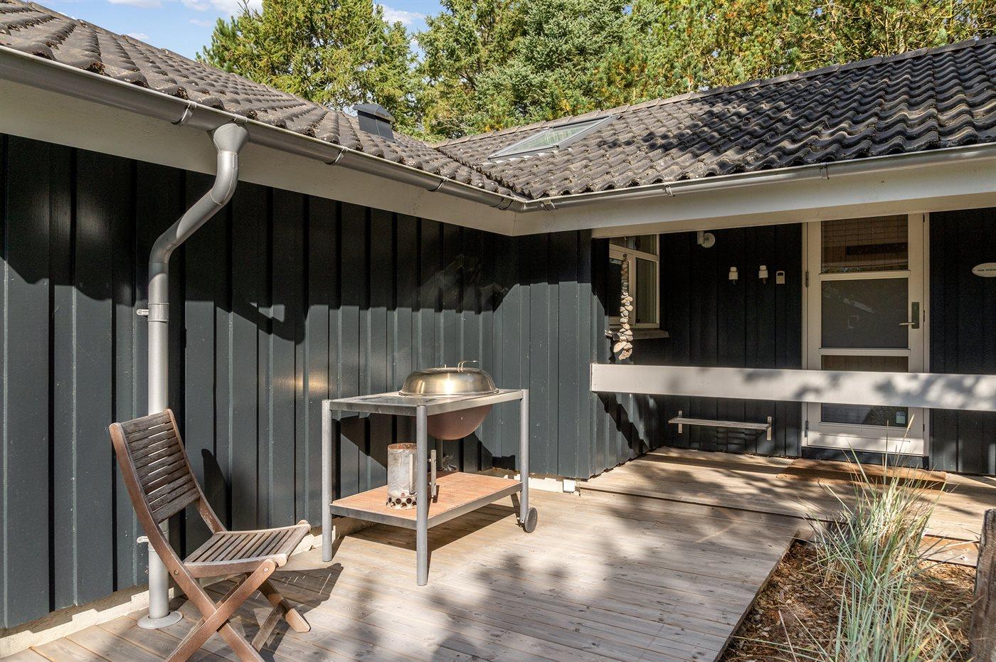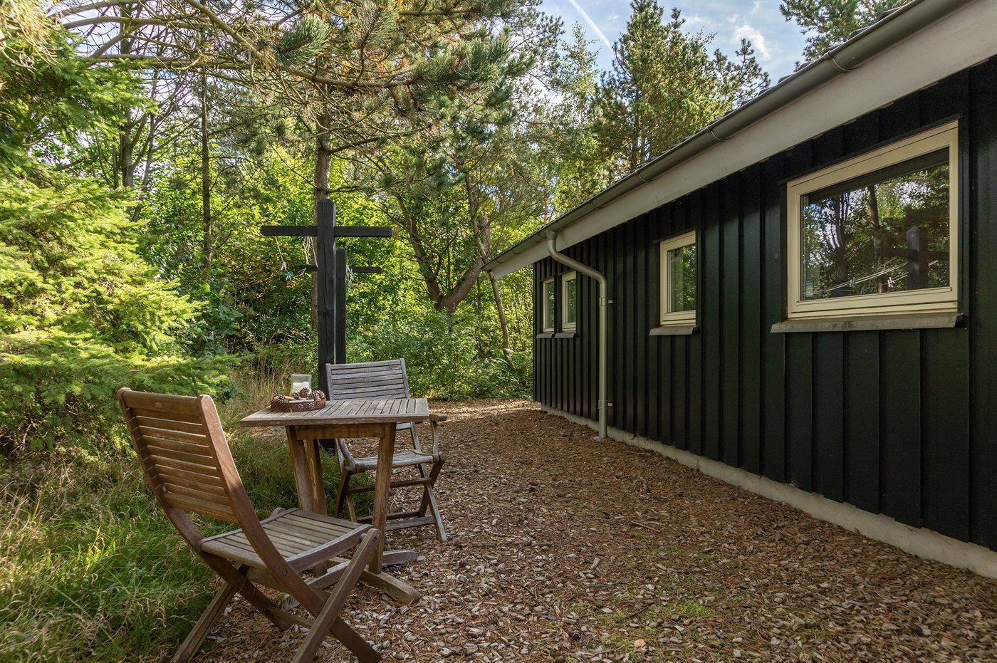 Ferieboligen er beliggende på en 1000 m² stor naturgrund. Der er 4000 m til havet. Nærmeste forretning er beliggende i en afstand af 2000 m. Der er en golfbane i en afstand af 2000 m. Til ferieboligen hører 100 m² terrasseareal. Desuden er der 5 m² overdækket terrasse. Bålsted. Gasgrill står til rådighed. Parkering ved ferieboligen.