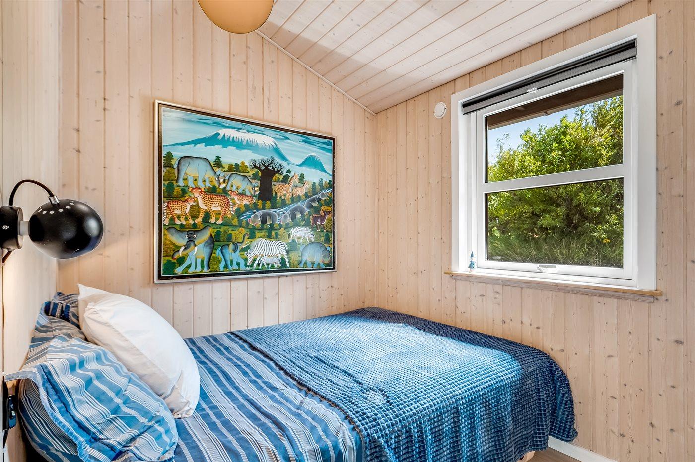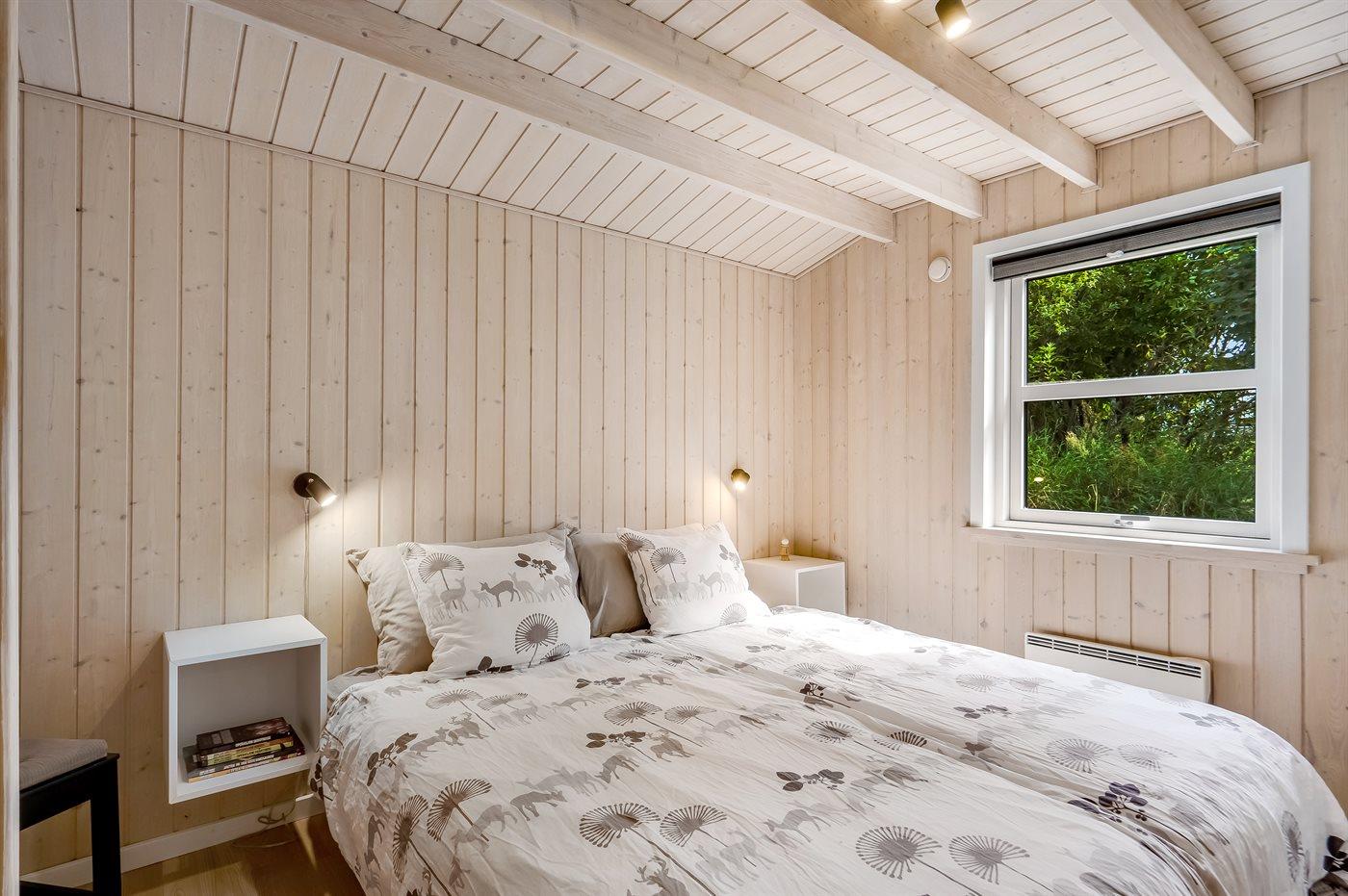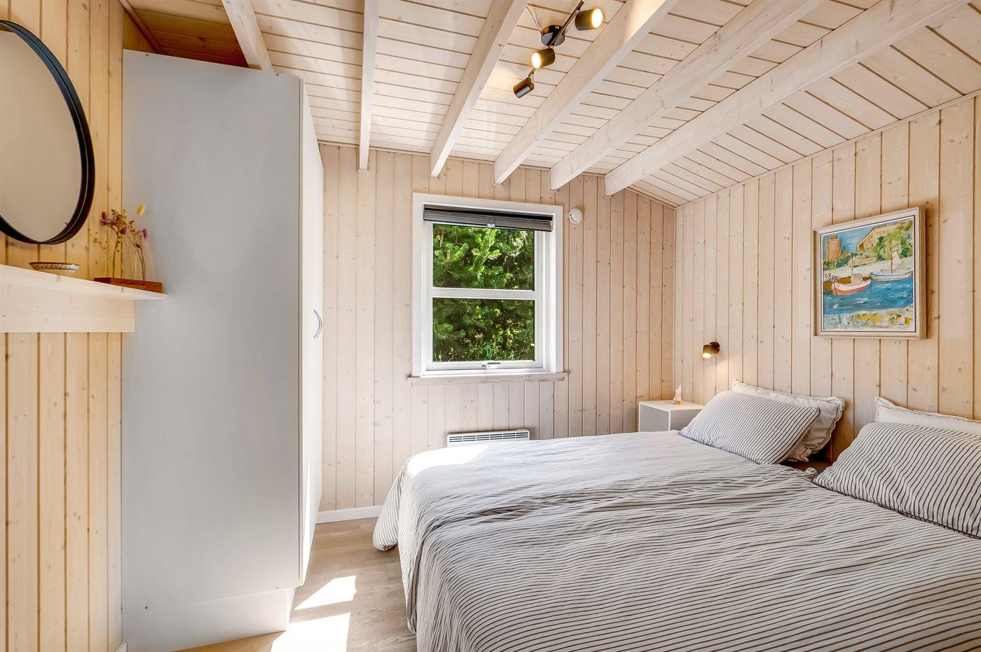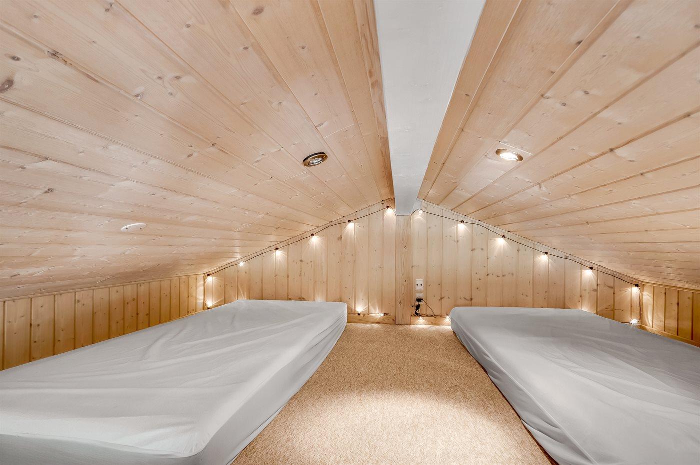 Der er i alt 3 soveværelser. Sovepladserne fordeler sig på: 6 sovepladser i dobbeltsenge. 2 sovepladser på madrasser. 2 af disse sovepladser befinder sig på husets hems. Derudover er der 1 stk. barneseng.