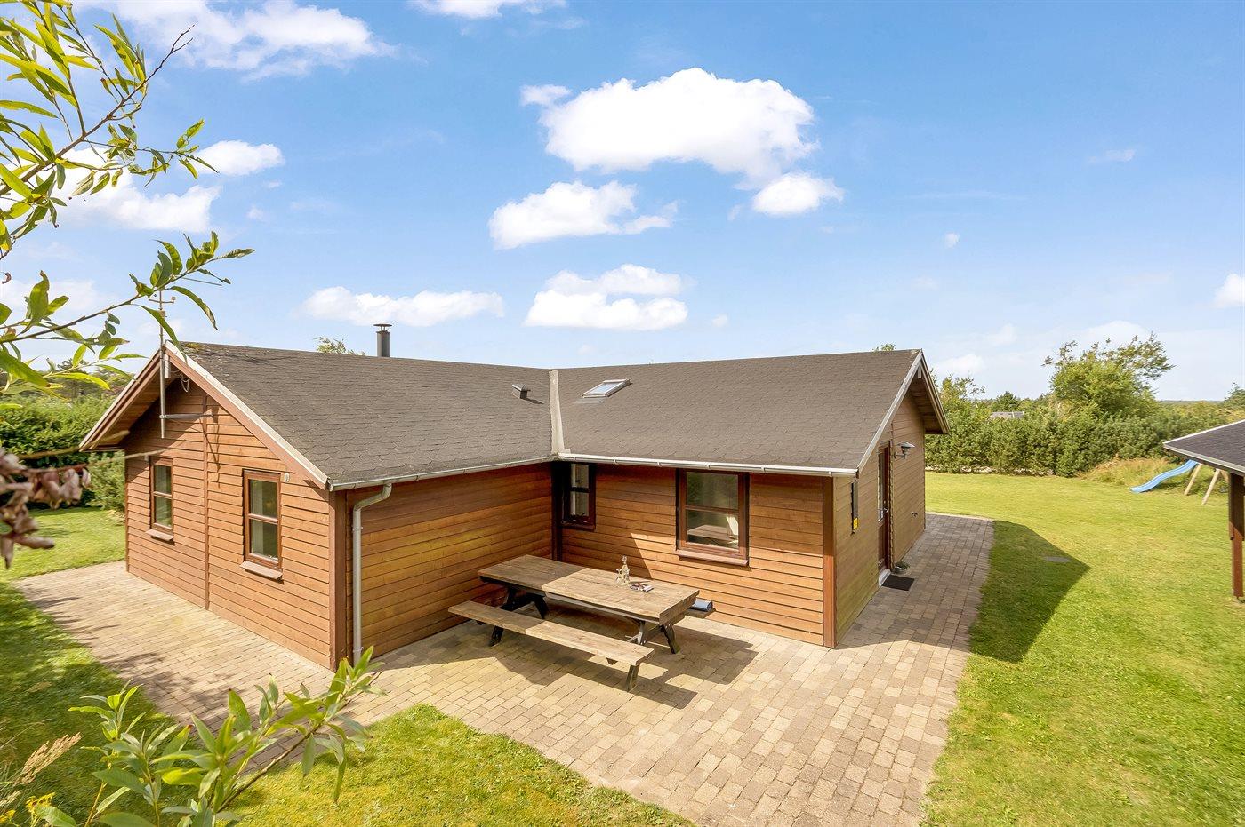 Pænt sommerhus nær Vesterhavet med stor grund, spa, sauna og gode faciliteter til afslapning og leg.