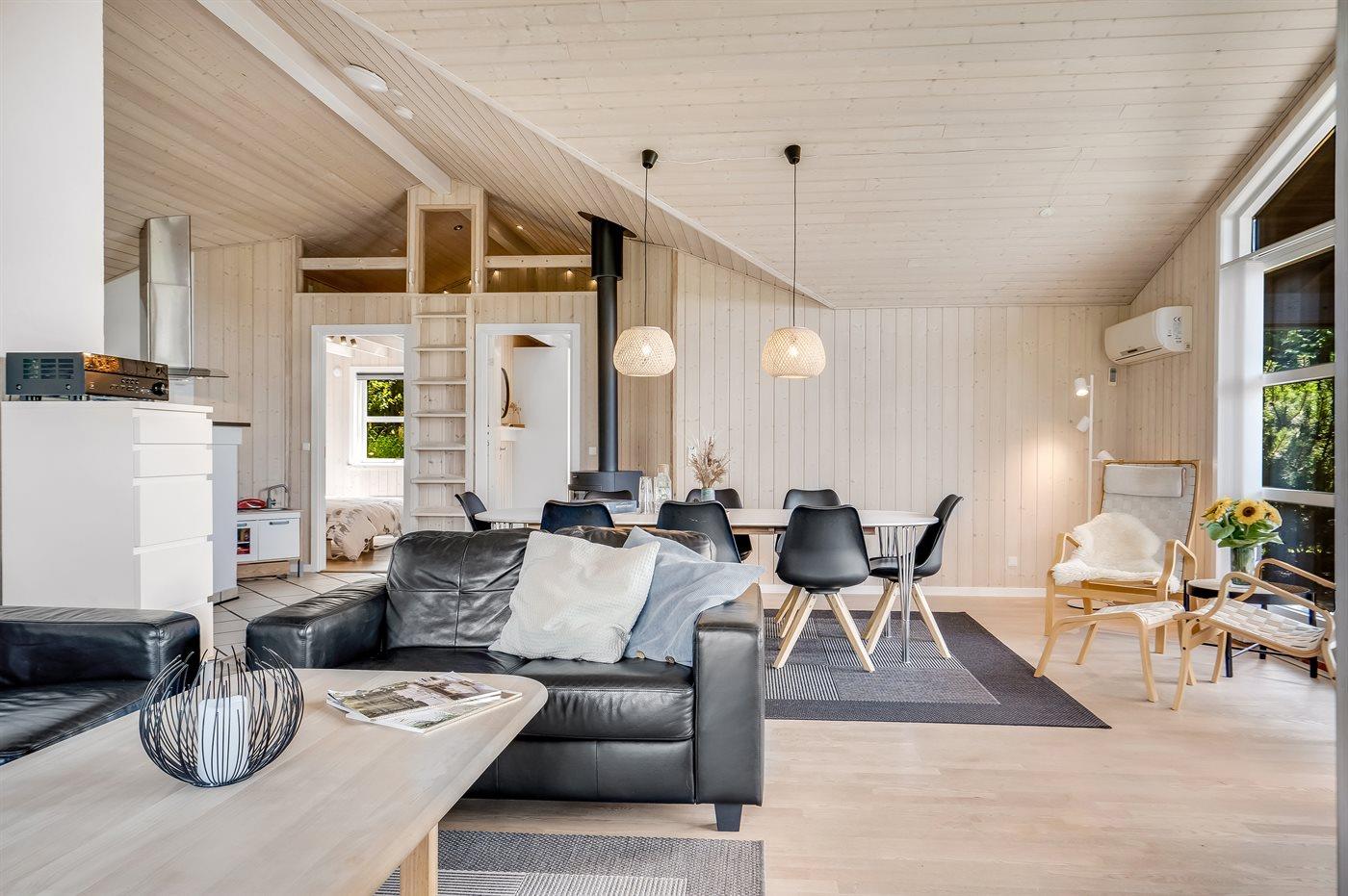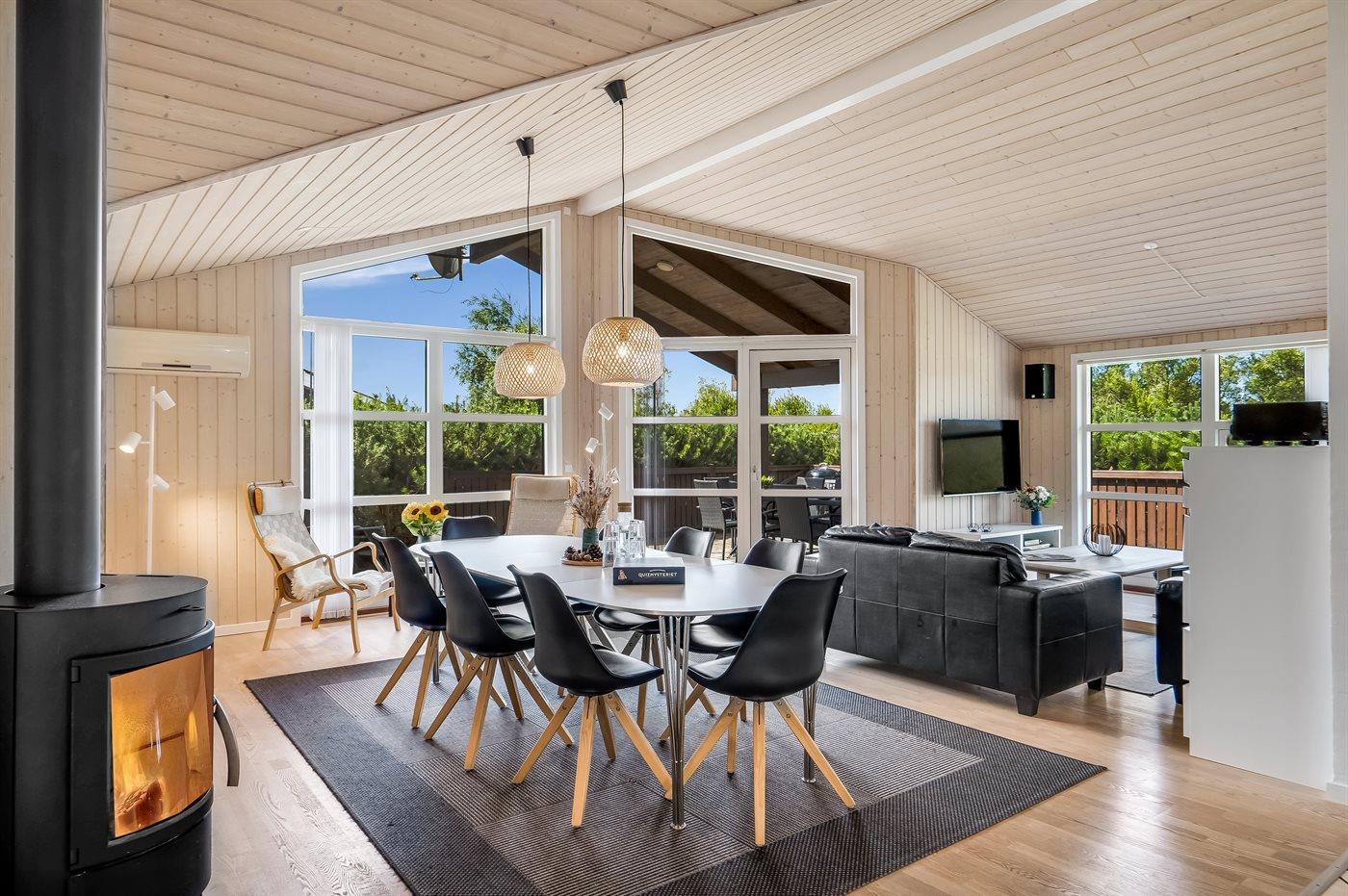 Sommerhuset egner sig til 8 personer samt 1 barn op til 3 år. Ferieboligen er på 114 m² og er bygget i 2008. Det er ikke tilladt at medbringe husdyr. Ferieboligen er udstyret med 1 energivenlig luft til luft varmepumpe. Ferieboligen har vaskemaskine. Tørretumbler. Frysekapacitet på 70 liter. Der er desuden brændeovn. Til de små er der 1 stk. barnestol.