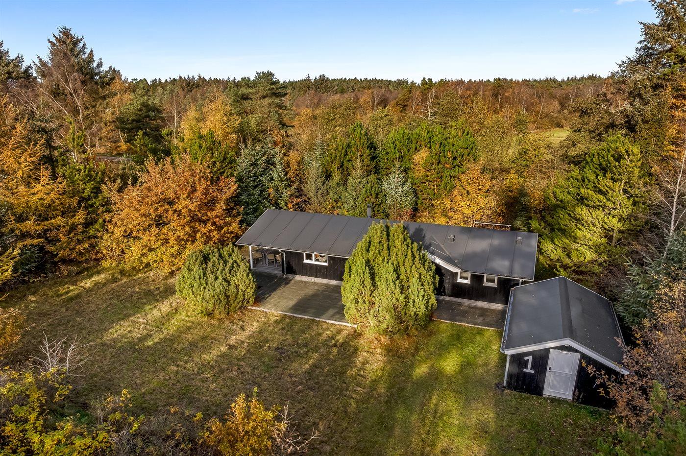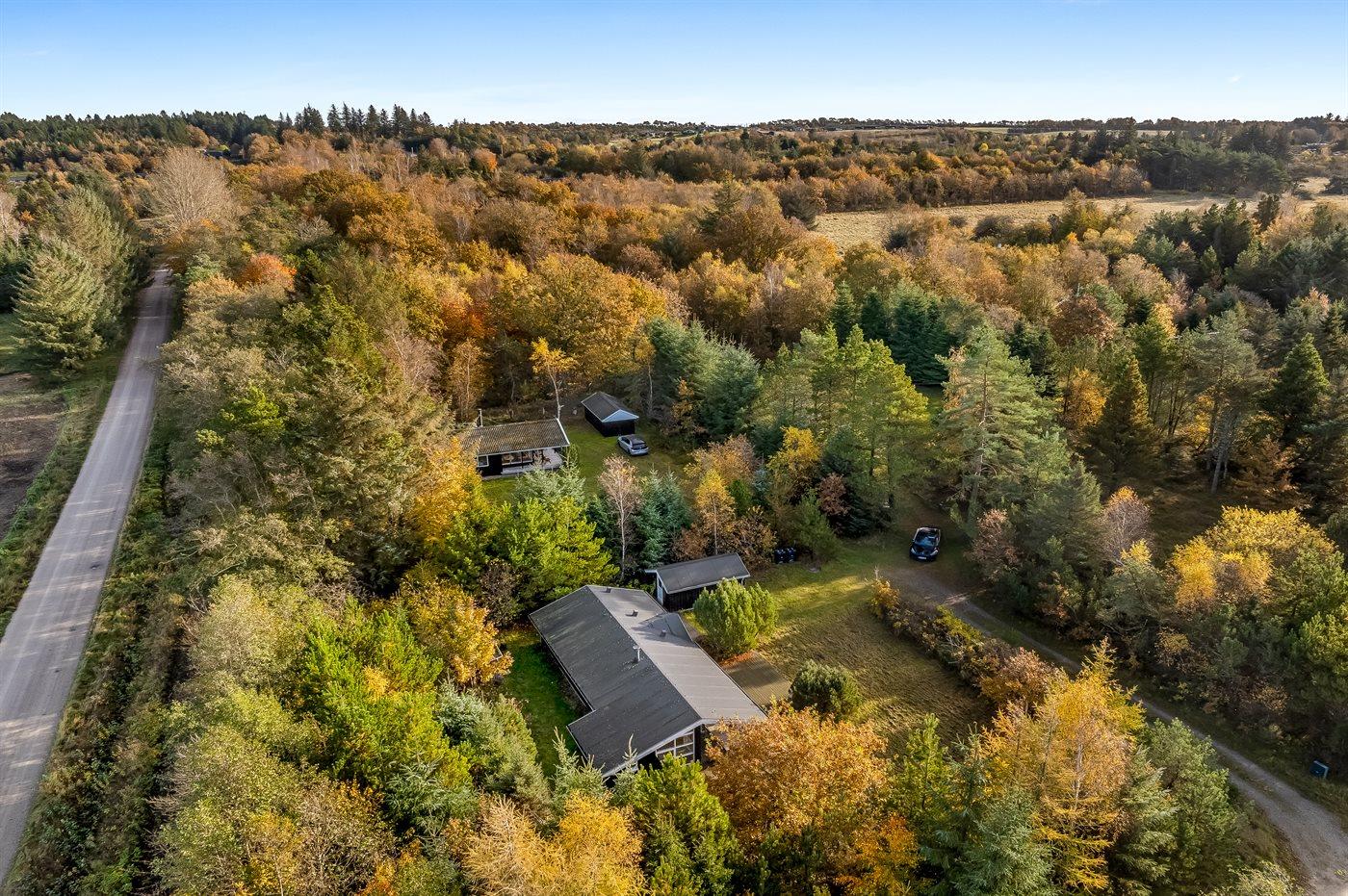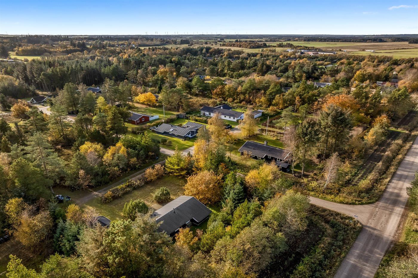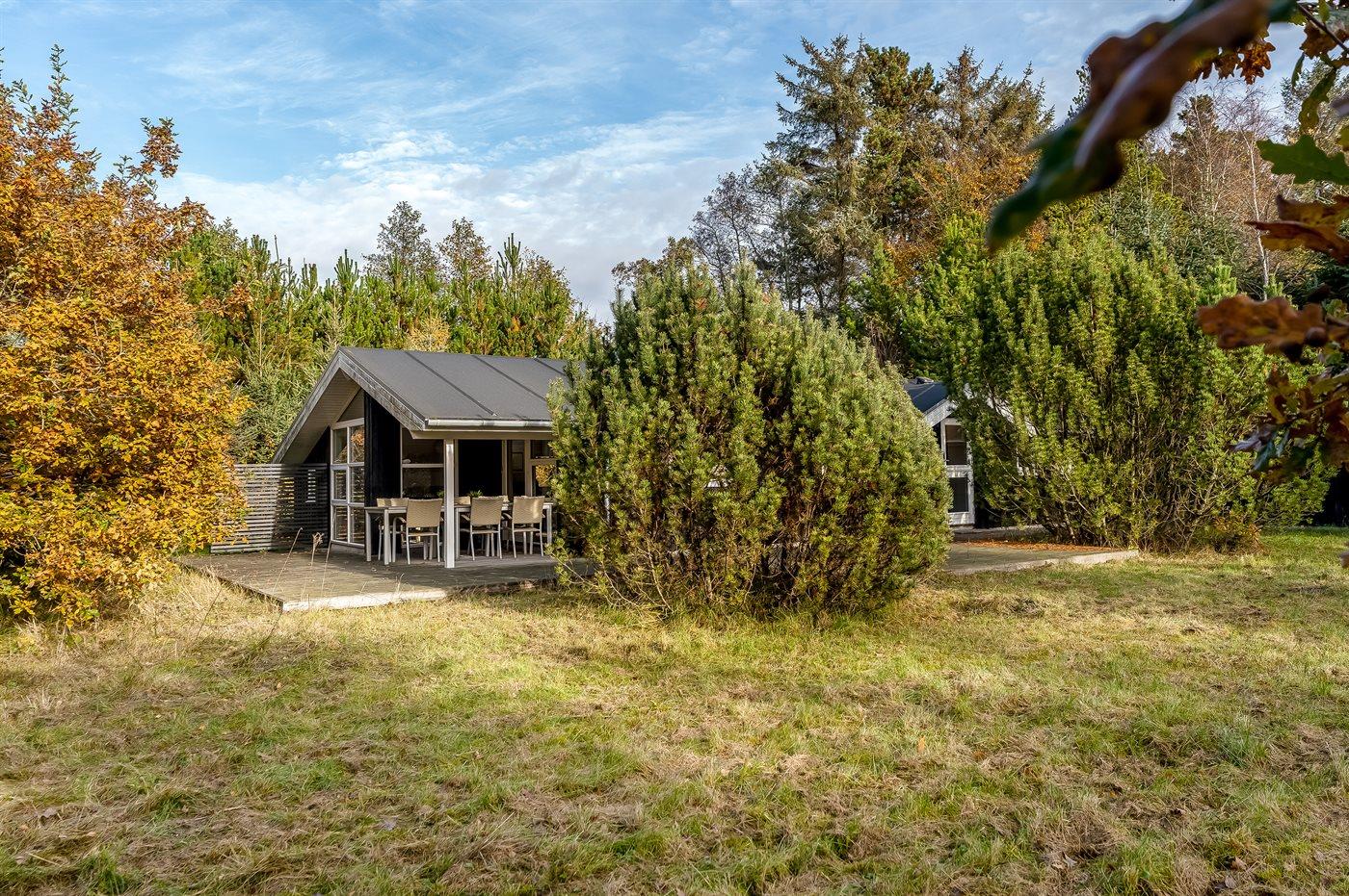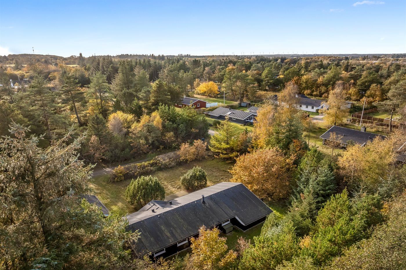 Ferieboligen er beliggende på en 1092 m² stor grund i skov/plantage. Der er 4000 m til havet. Nærmeste forretning er beliggende i en afstand af 2500 m. Til ferieboligen hører åbent terrasseareal. Desuden er der overdækket terrasse. Der ligger en legeplads i en afstand af 300 m. Parkering ved ferieboligen.