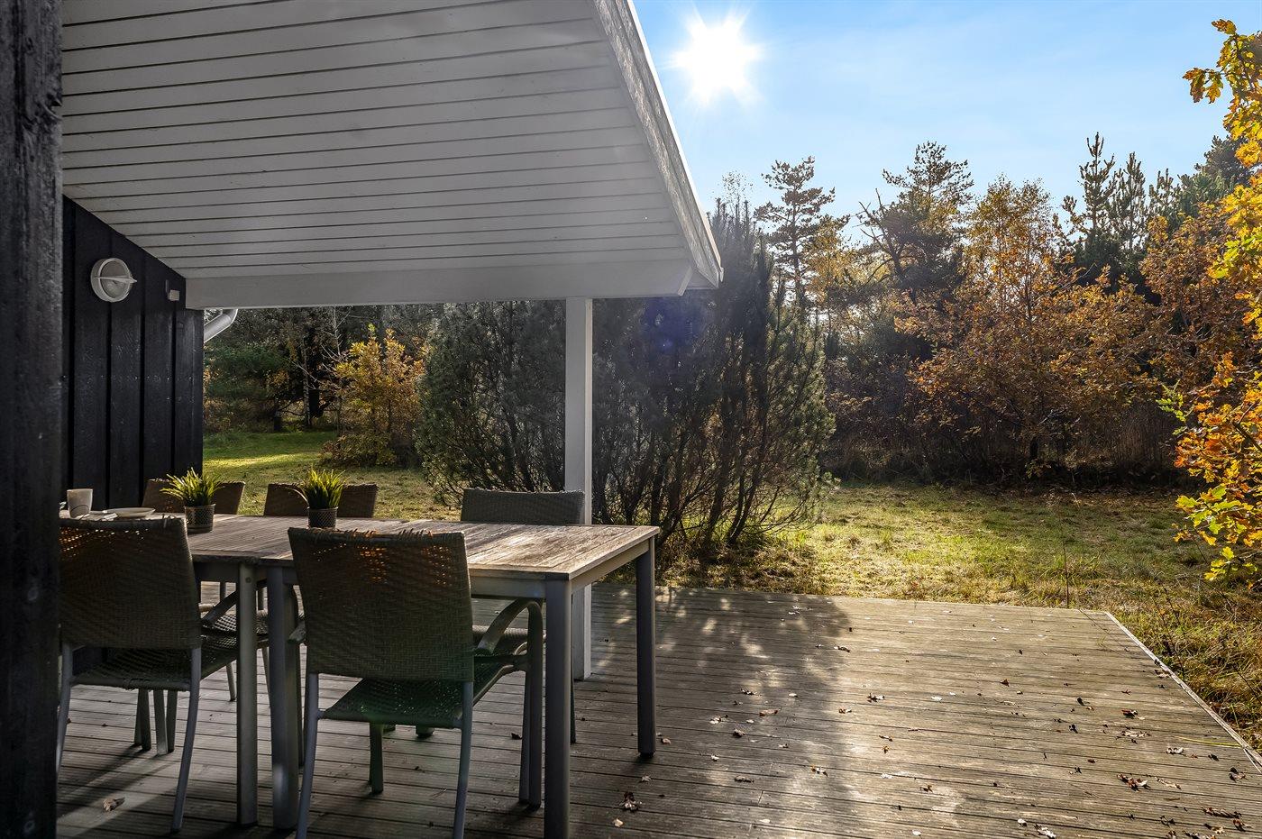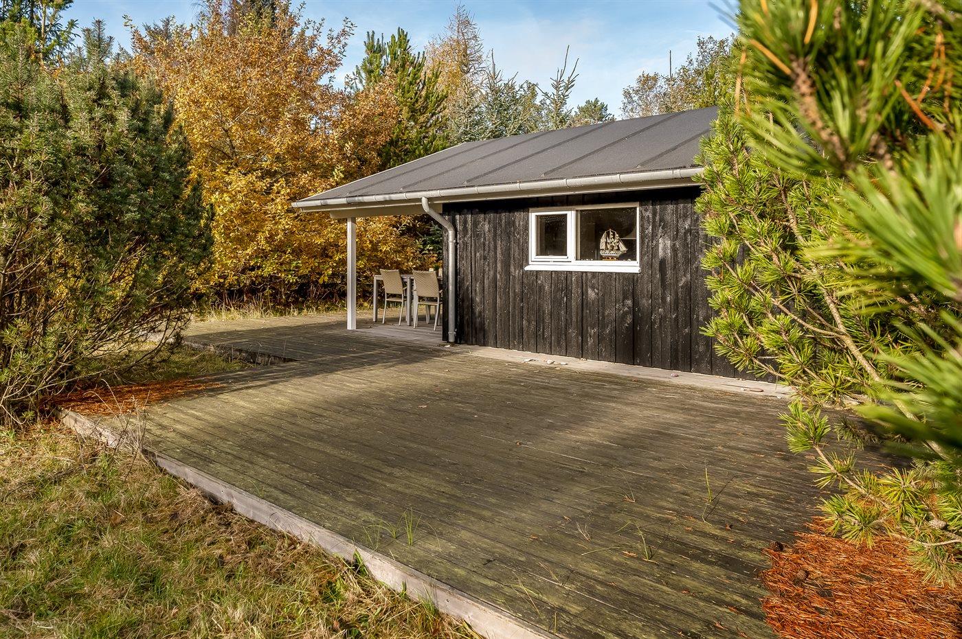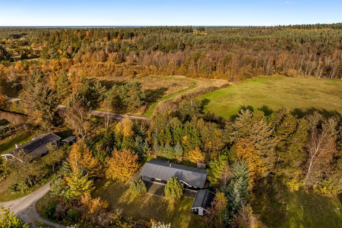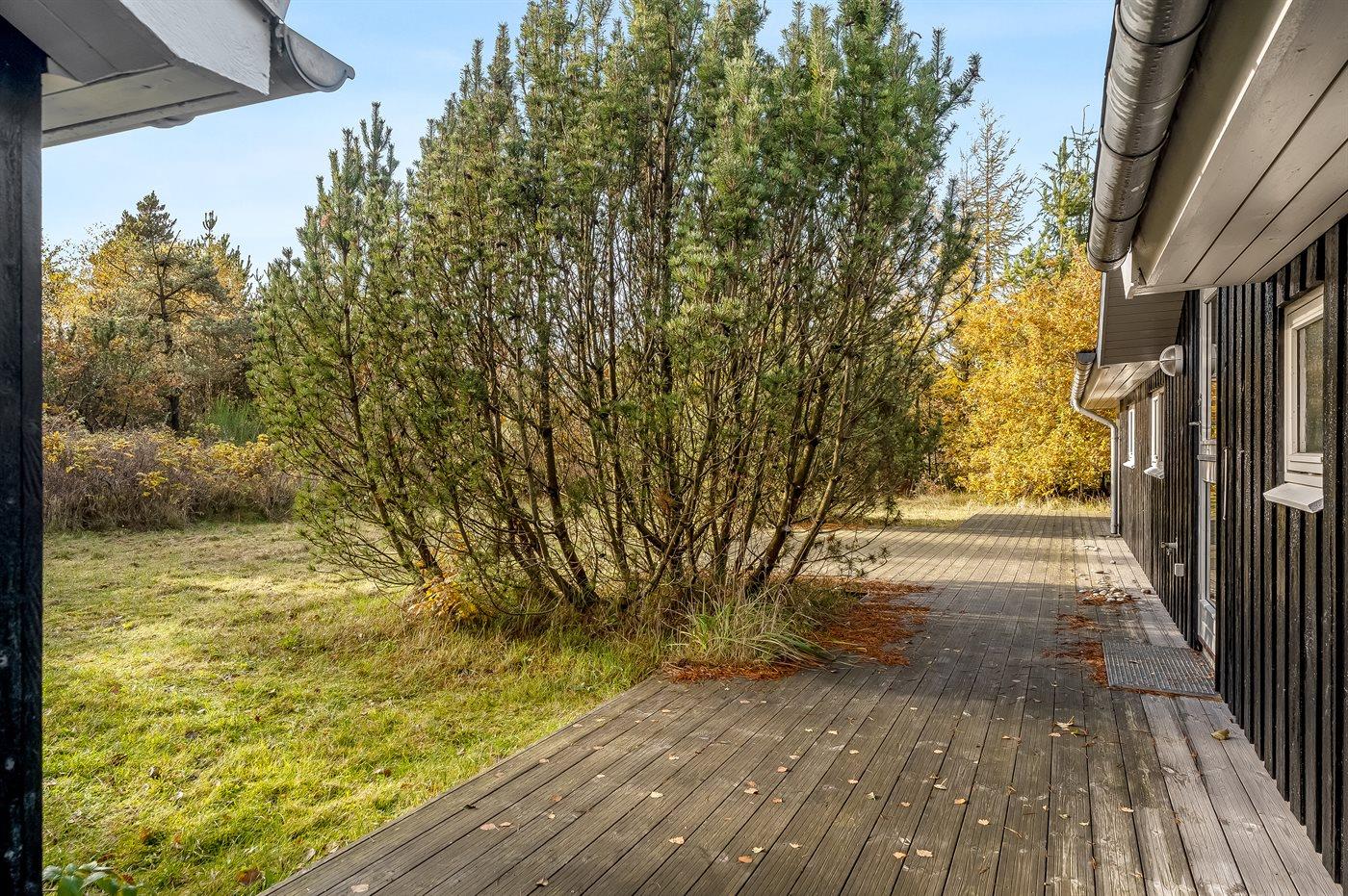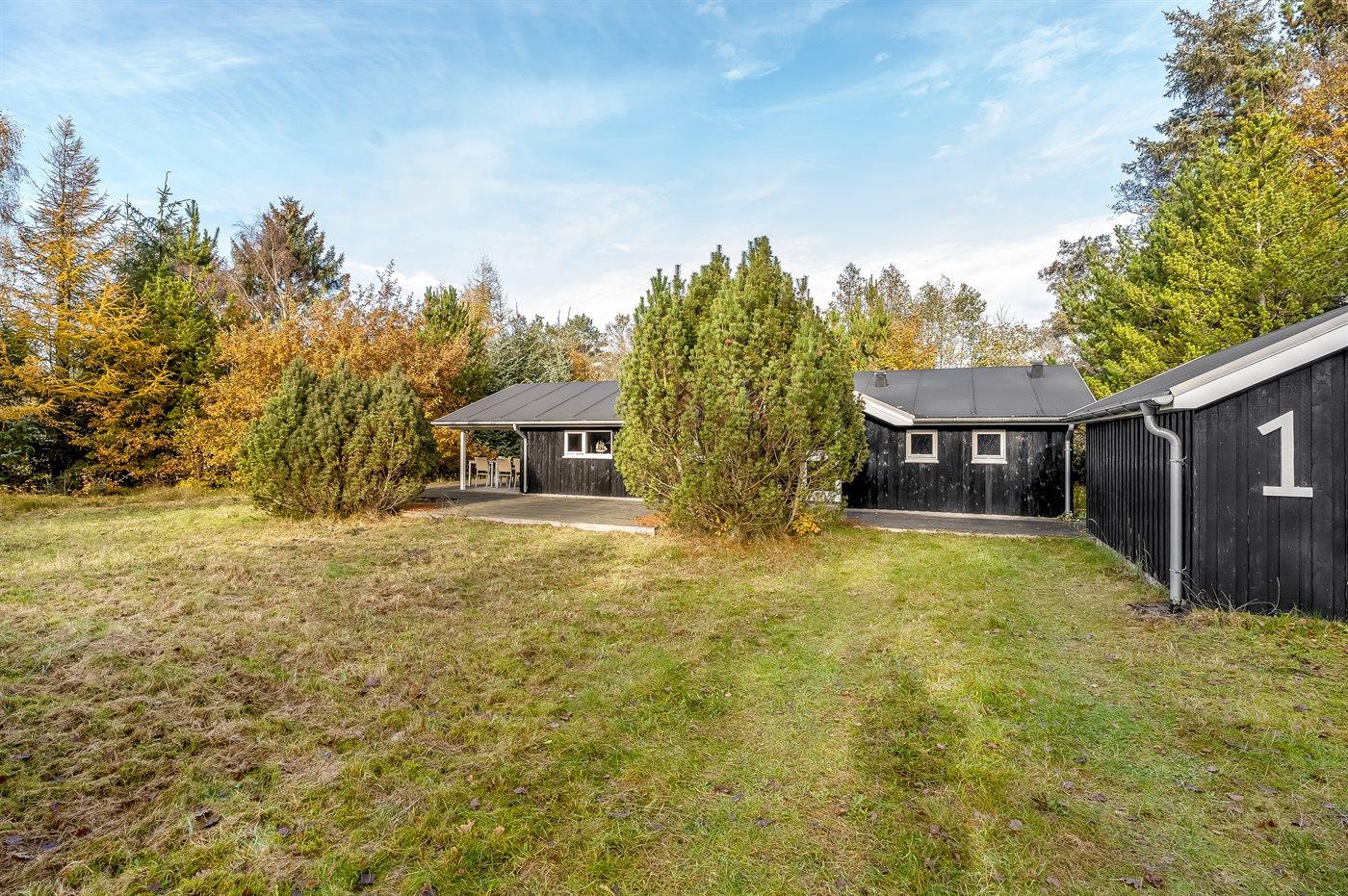 Ferieboligen er beliggende på en 1092 m² stor grund i skov/plantage. Der er 4000 m til havet. Nærmeste forretning er beliggende i en afstand af 2500 m. Til ferieboligen hører åbent terrasseareal. Desuden er der overdækket terrasse. Der ligger en legeplads i en afstand af 300 m. Parkering ved ferieboligen.