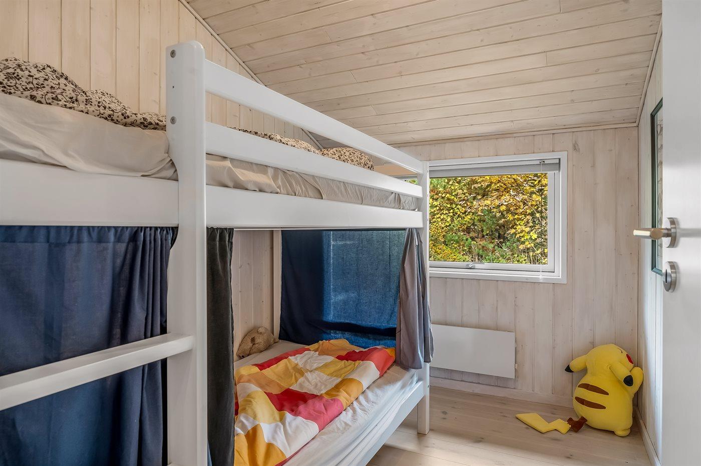 Der er i alt 3 soveværelser. Sovepladserne fordeler sig på: 2 sovepladser i dobbeltseng. 2 sovepladser i enkeltsenge. 2 sovepladser i køjeseng.