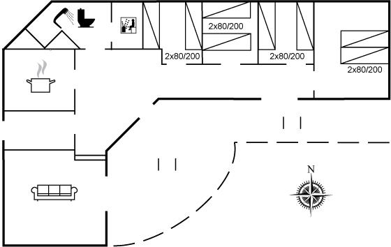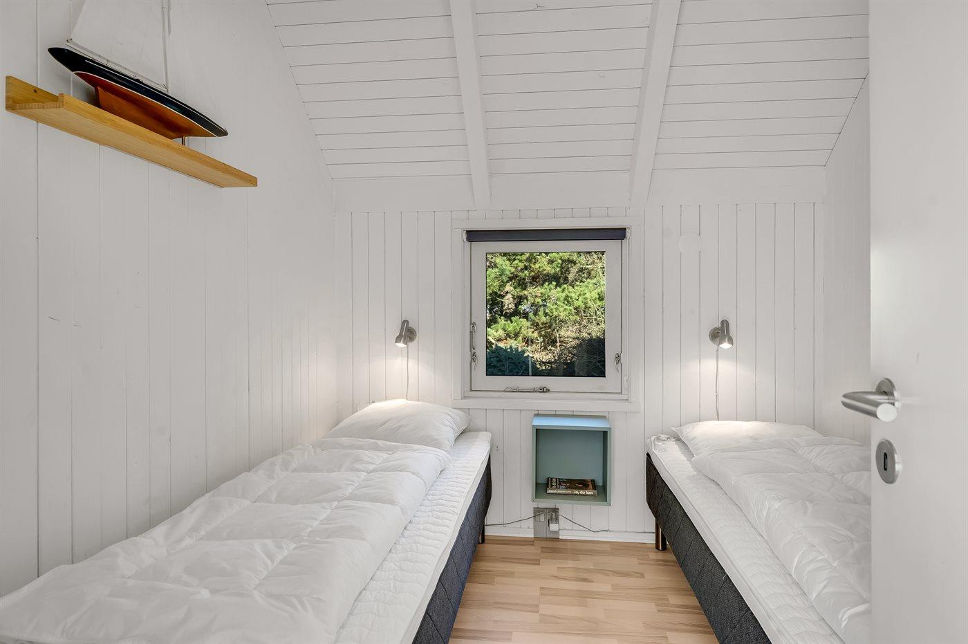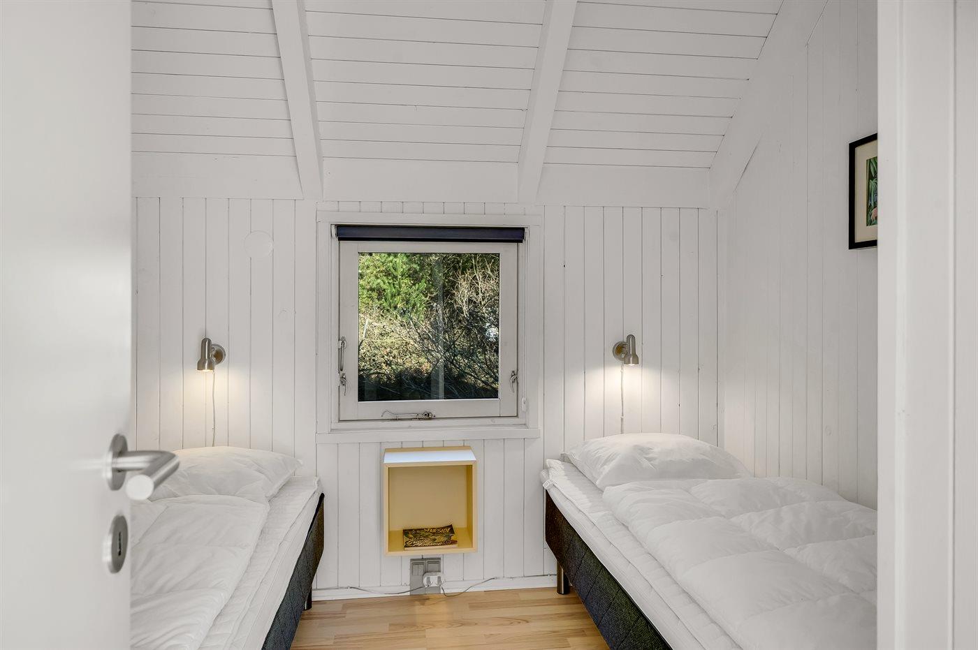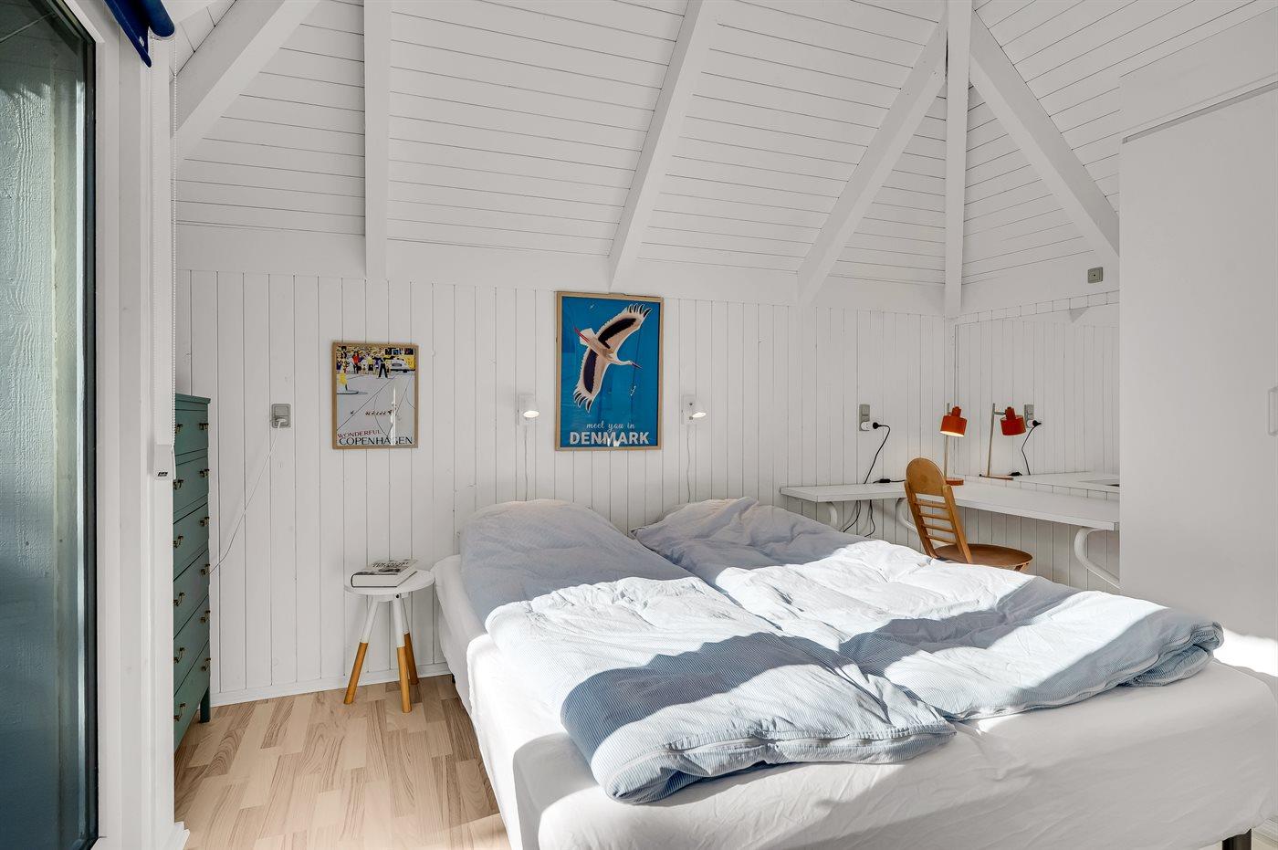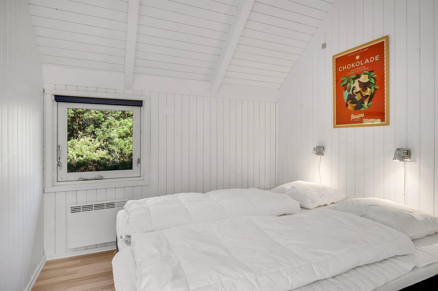 Der er i alt 4 soveværelser. Sovepladserne fordeler sig på: 4 sovepladser i dobbeltsenge. 4 sovepladser i enkeltsenge.