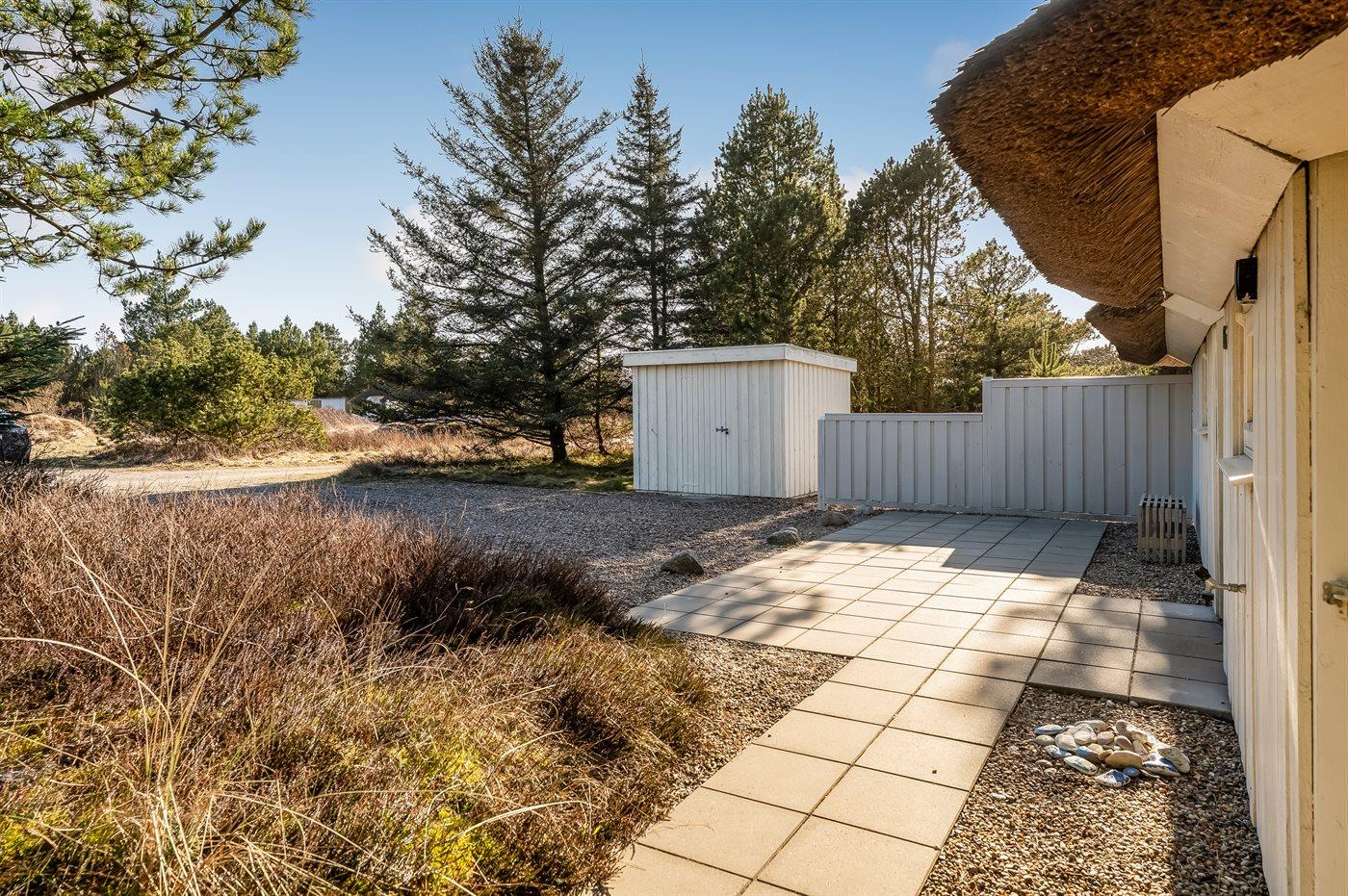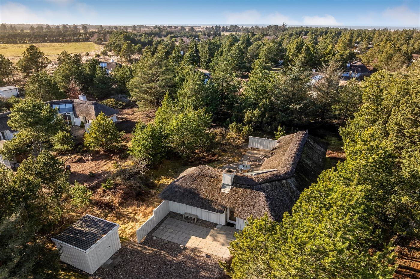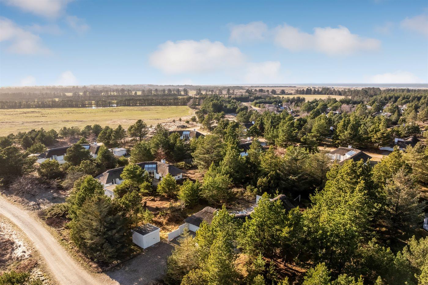 Ferieboligen er beliggende på en 1240 m² stor naturgrund. Der er 1300 m til havet. Nærmeste forretning er beliggende i en afstand af 5000 m. Til ferieboligen hører åbent terrasseareal. Der ligger en legeplads i en afstand af 200 m. Parkering ved ferieboligen.
