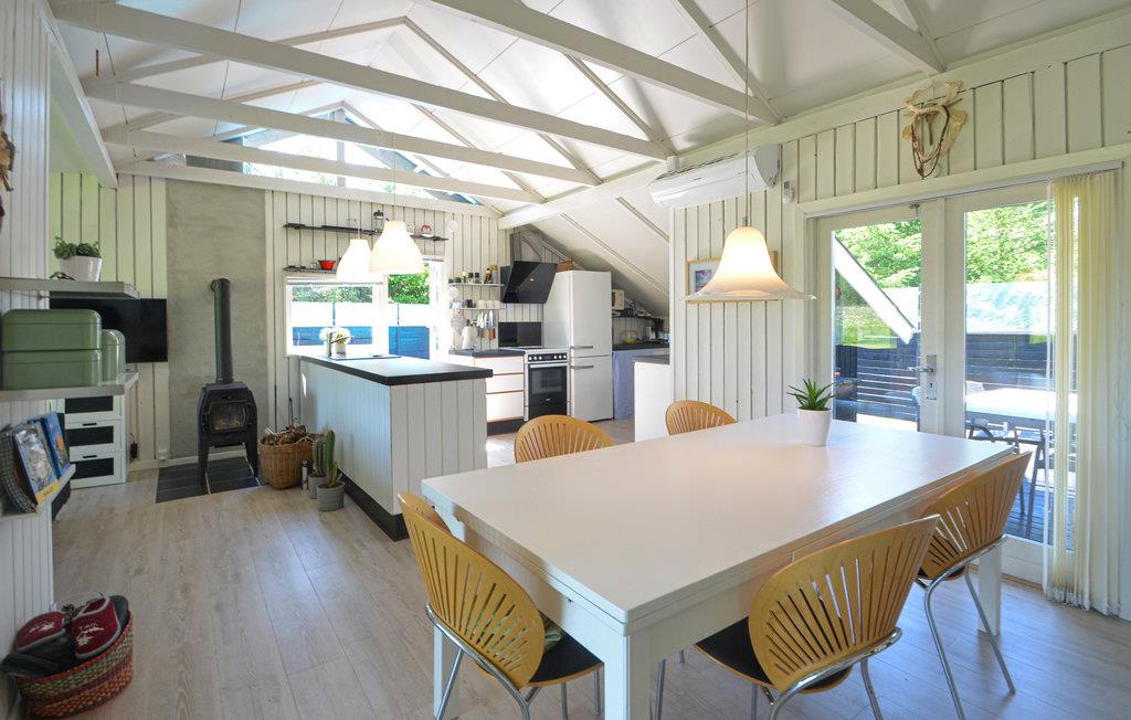 Huset består af 2 soveværelser, 1 badeværelse, en hyggelig opholdsstue og et åbent køkken i forlængelse af spisestuen. Udendørs finder I en stor, dejlig træterrasse med solsenge, havemøbler og grill til jeres rådighed. Desuden kan I glæde jer til at slappe af og komme helt ned i gear i den lækre pool, der er bygget ned i terrassen. Den store naturgrund omkring huset har masser af plads til leg og spil, så familiens yngste ikke kommer til at kede sig.