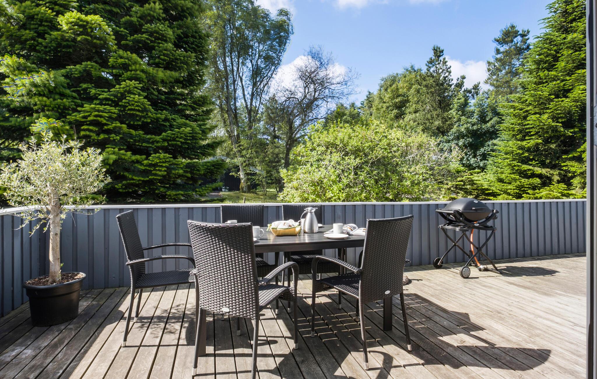 Start dagen i solskinsvejr med en lækker morgenmad på terrassen, og nyd roen i den naturlige have. Fordyb jer i en god bog, mens børnene hygger sig med at rutsje, hoppe på trampolin eller lege i sandkassen. Tænd op i grillen om aftenen, og nyd det sociale samvær udendørs.
