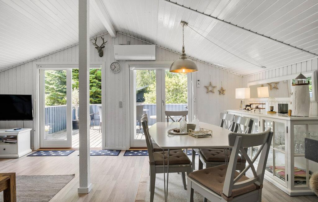 Denne bolig er et oplagt sted, hvis I leder efter en afslappende ferie. Lyse træpaneler på væggene, rustikke træmøbler og gennemtænkte detaljer skaber en harmonisk atmosfære, hvor I kan slappe af. Lyt til jeres yndlingsmusik, eller saml familien til en filmaften på sofaen. Tilbered lækre måltider i køkkenet, og server dem med et glas vin.