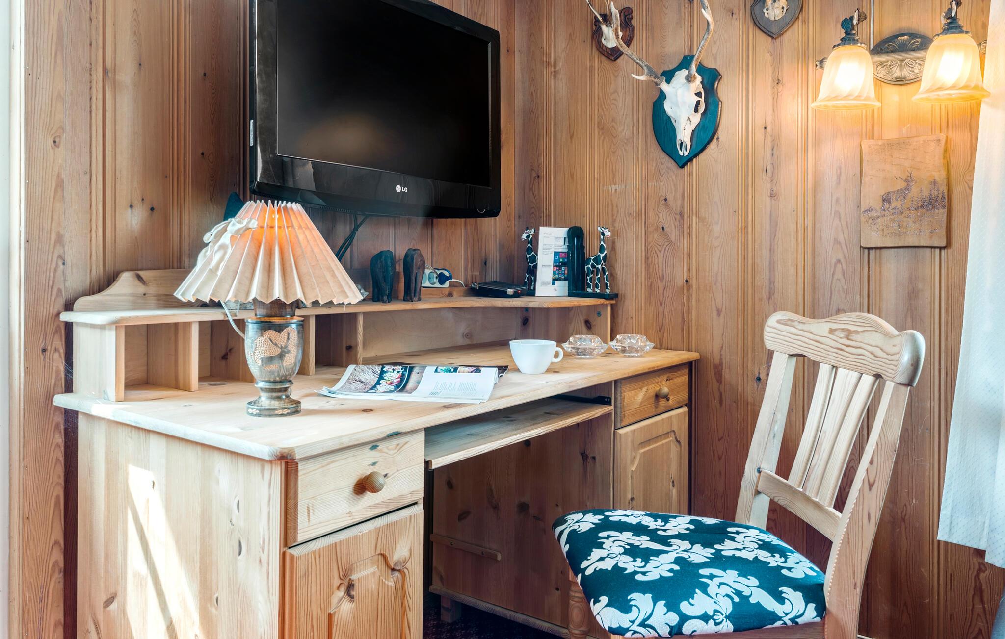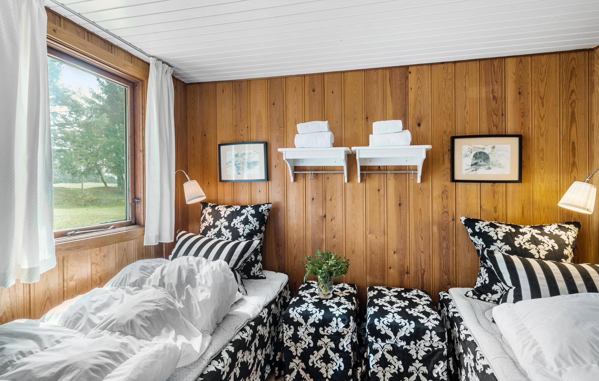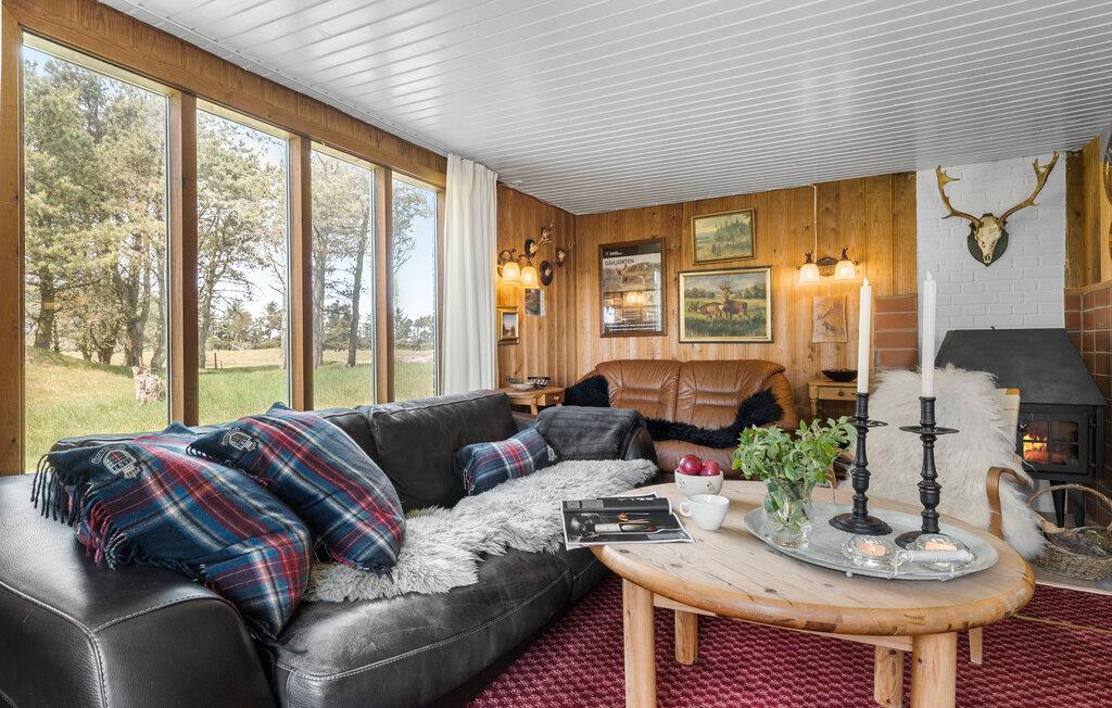 Velkommen til dette attraktive træhus, der ligger på en stor, ugeneret grund i idylliske omgivelser ikke langt fra Jammerbugt og Limfjorden. Indvendigt emmer det af hygge med varme, velholdte træpaneler og mange fine detaljer i udsmykningen, der skaber en rar atmosfære, som det er nemt at slappe af i efter en dag på farten. Hvis vejret viser tænder, kan I fyre op i brændeovnen, der giver en knitrende varme til madlavningen i det veludstyrede køkken og måltiderne med udsigt til det grønne. Lad aftenen gå på hæld i det behagelige sofahjørne med snacks, brætspil og en god film på tv'et, mens I lægger planer for de kommende dage.