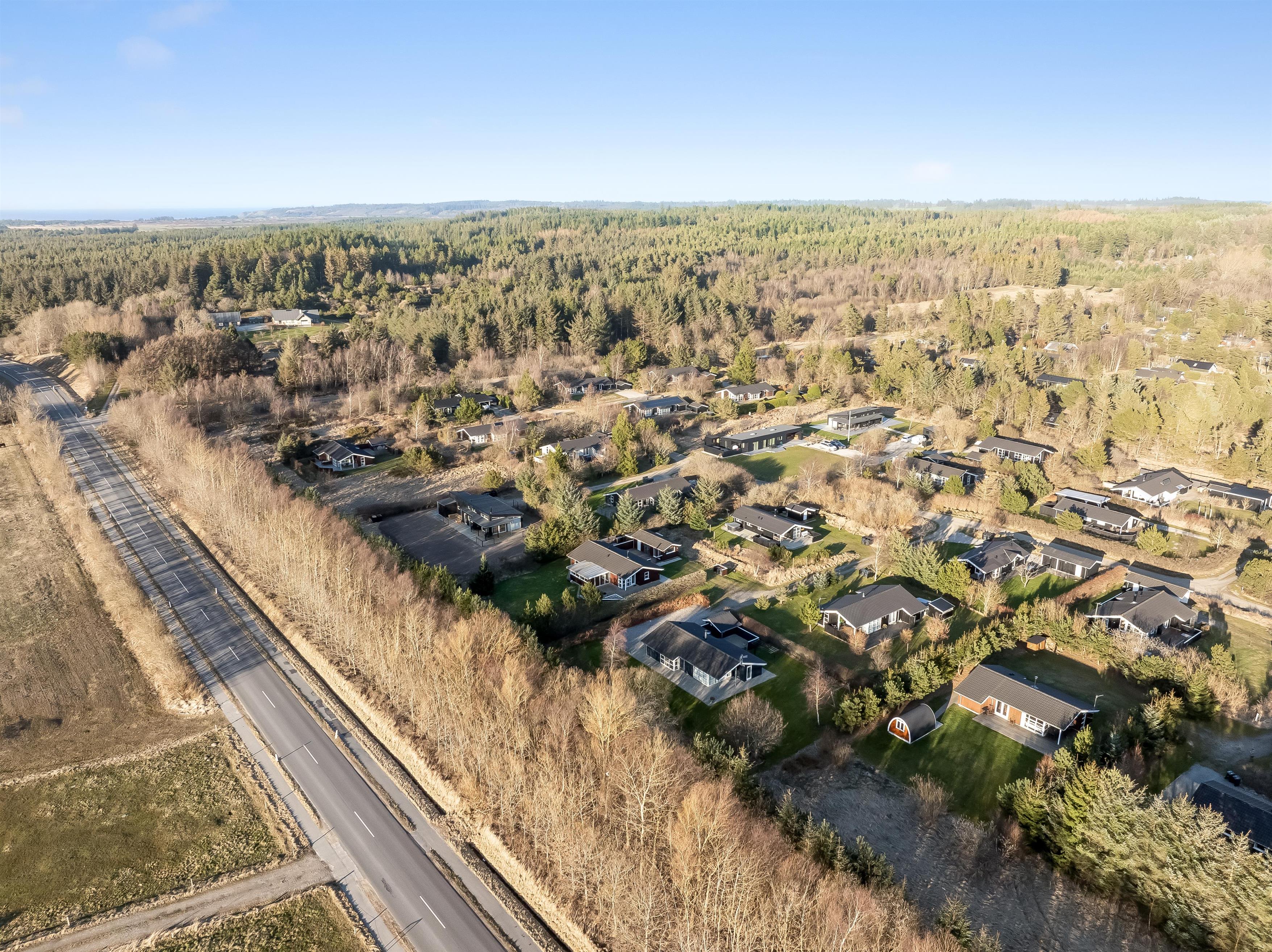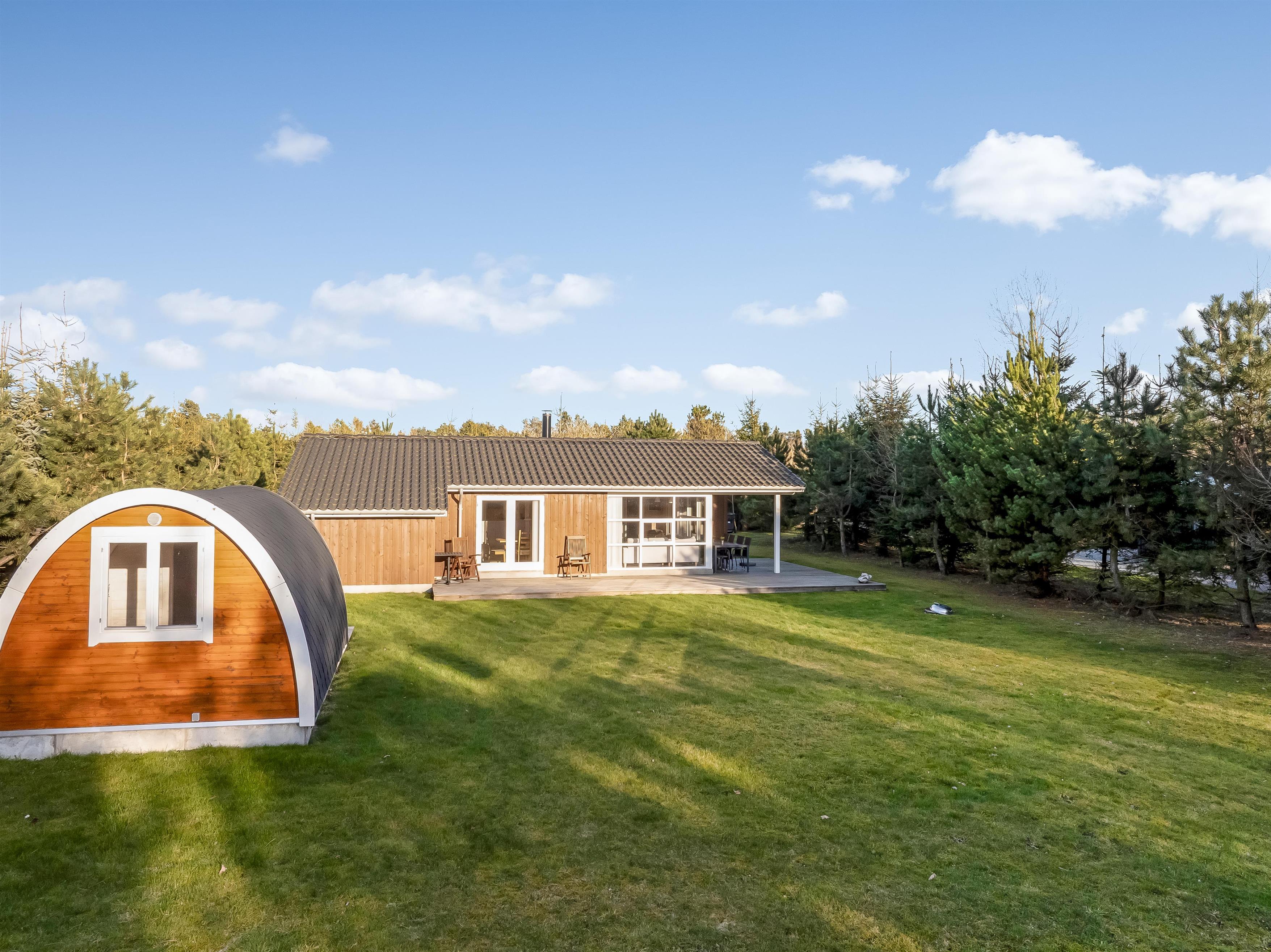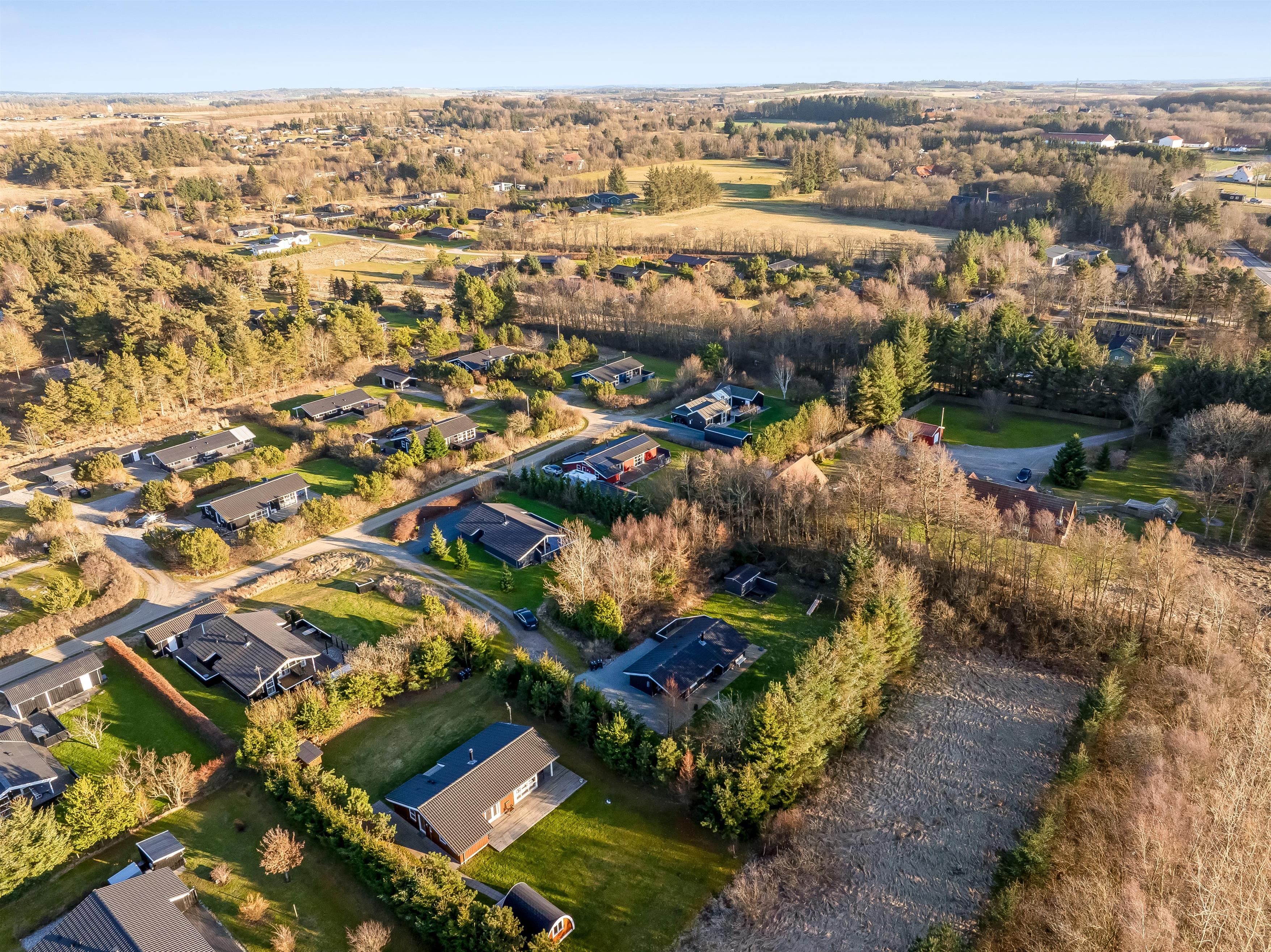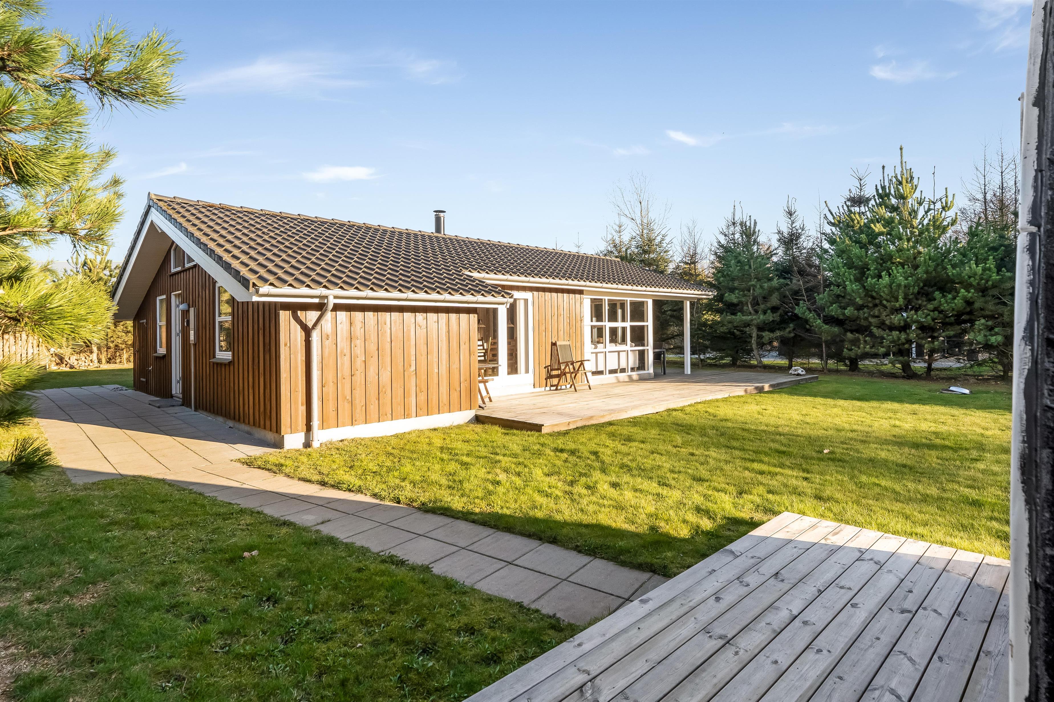Huset ligger på en 900 kvadratmeter stor grund i fredelige omgivelser, kun 3500 meter fra Vesterhavet, så I har kort vej til strandture, friske gåture og dage med sand mellem tæerne. Området indbyder til både afslapning og oplevelser, hvor I kan nyde naturen omkring jer og tage på udflugter til nærliggende kyststrækninger og hyggelige lokalområder. Her får I følelsen af at være lidt væk fra det hele – men stadig tæt nok på havet til at mærke feriestemningen helt ind under huden.