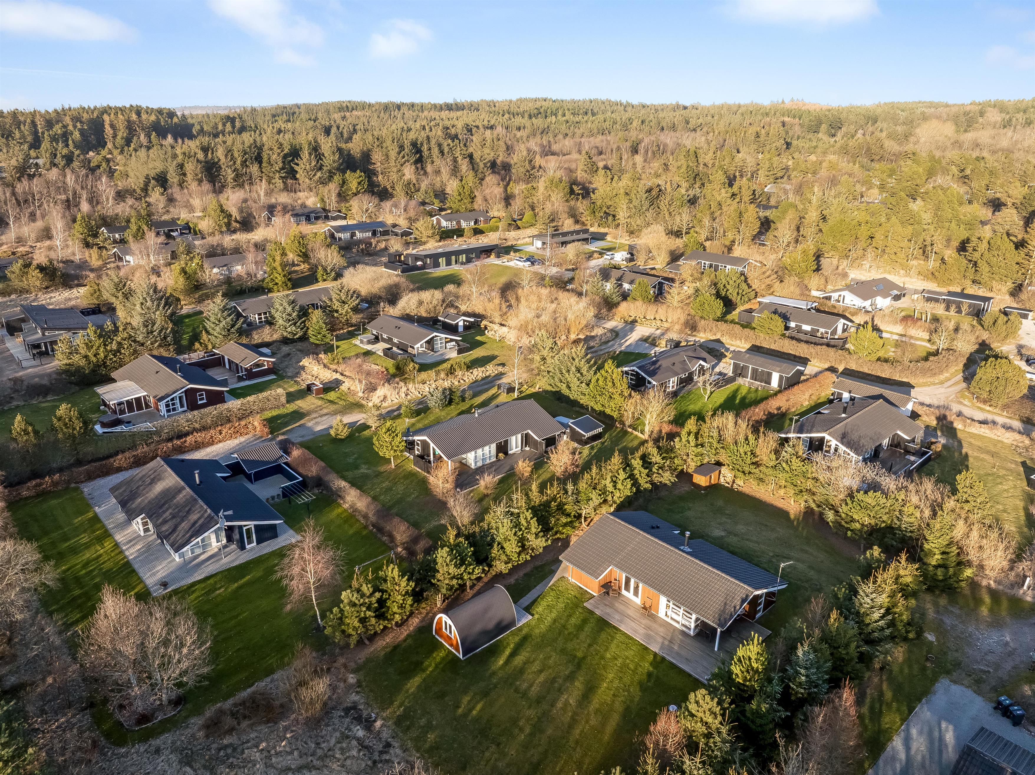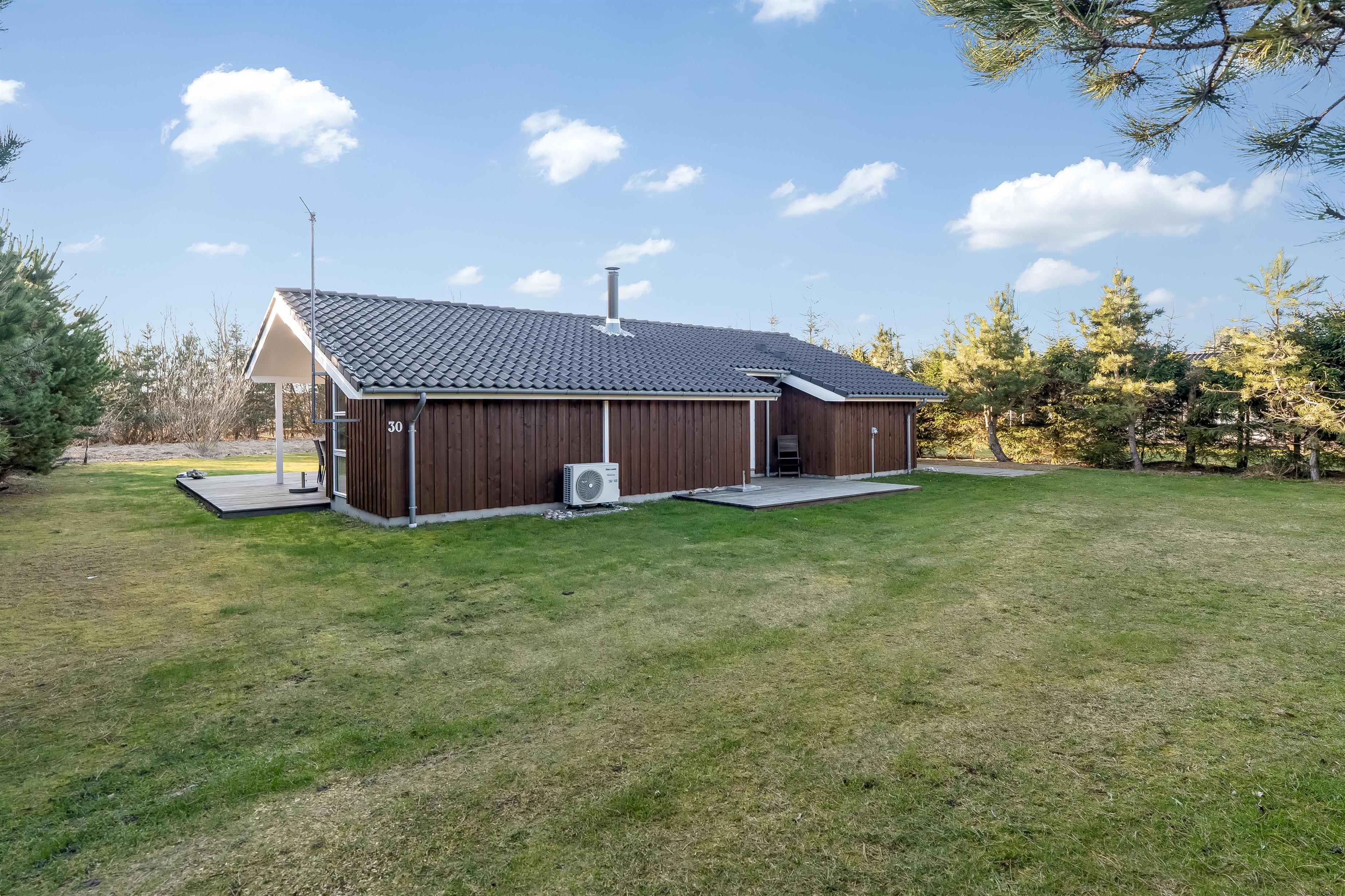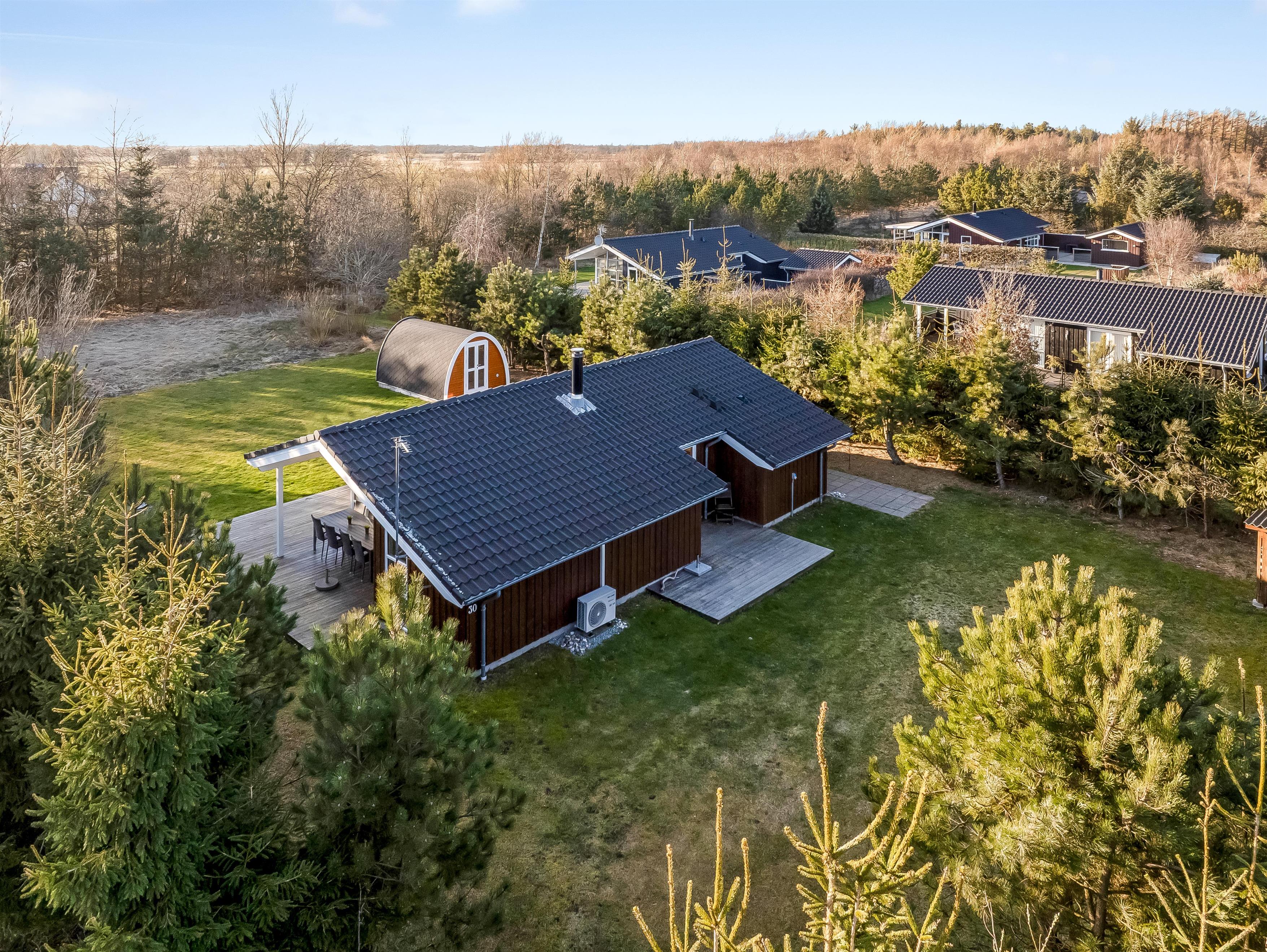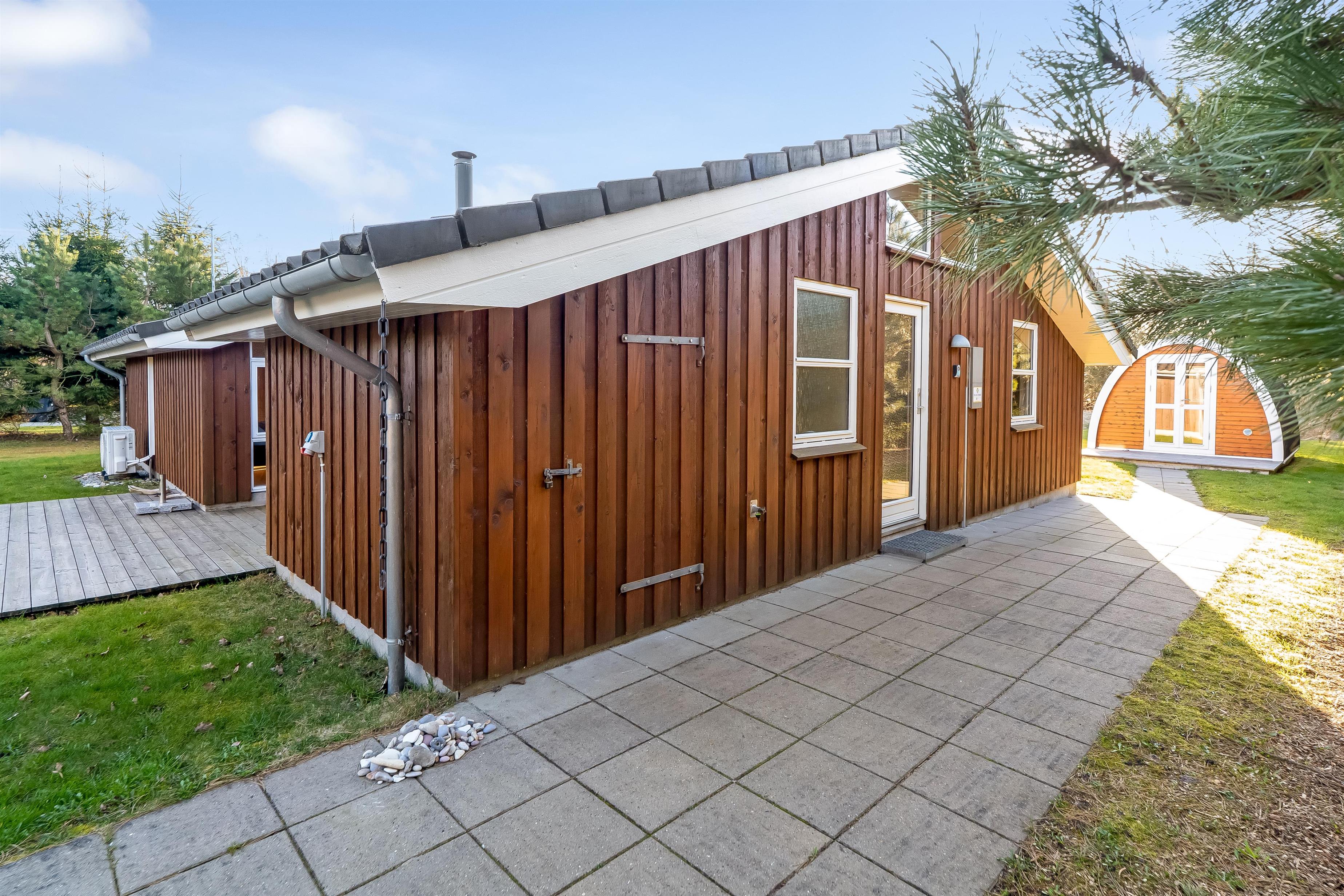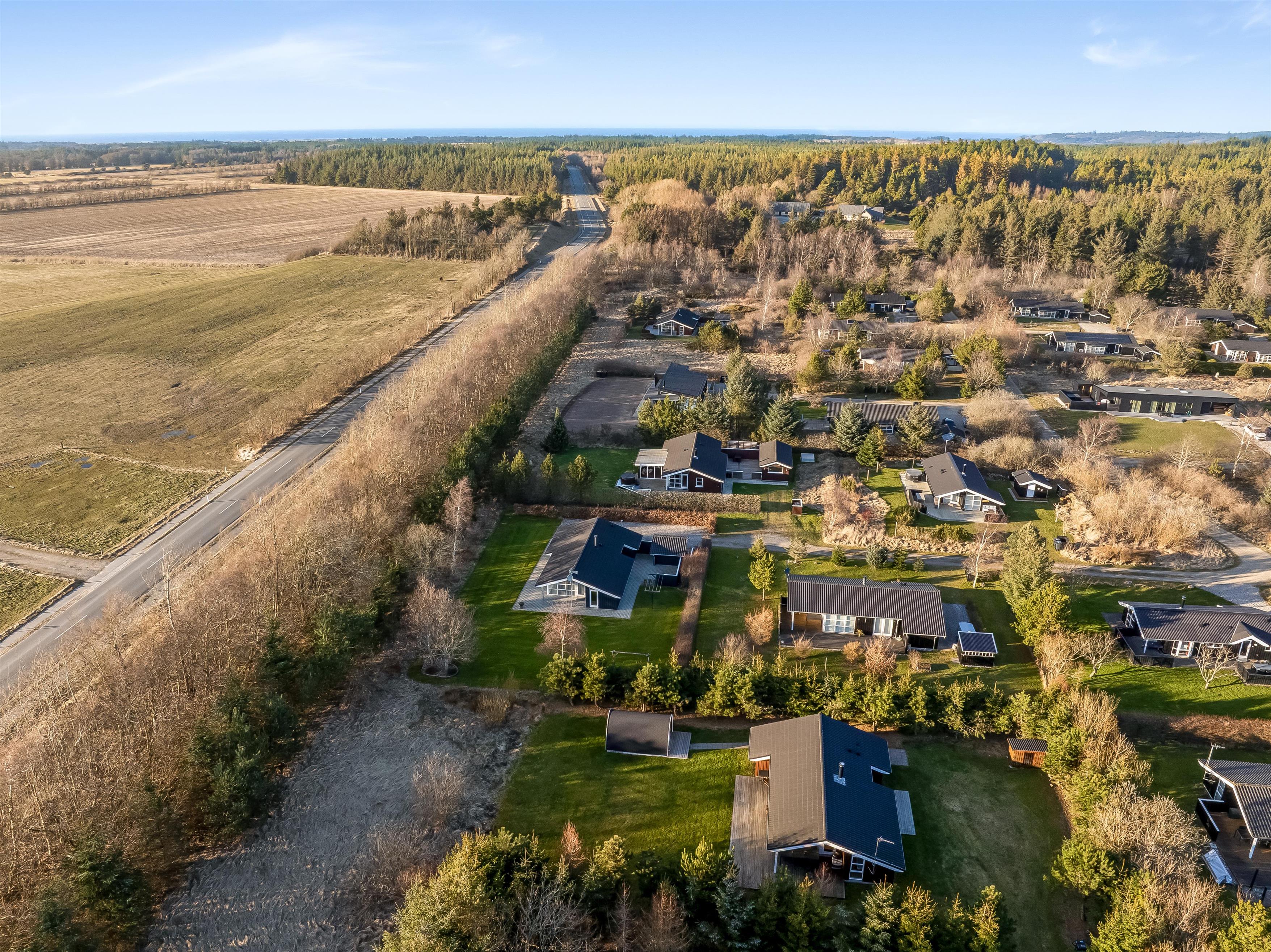 Huset ligger på en 900 kvadratmeter stor grund i fredelige omgivelser, kun 3500 meter fra Vesterhavet, så I har kort vej til strandture, friske gåture og dage med sand mellem tæerne. Området indbyder til både afslapning og oplevelser, hvor I kan nyde naturen omkring jer og tage på udflugter til nærliggende kyststrækninger og hyggelige lokalområder. Her får I følelsen af at være lidt væk fra det hele – men stadig tæt nok på havet til at mærke feriestemningen helt ind under huden.