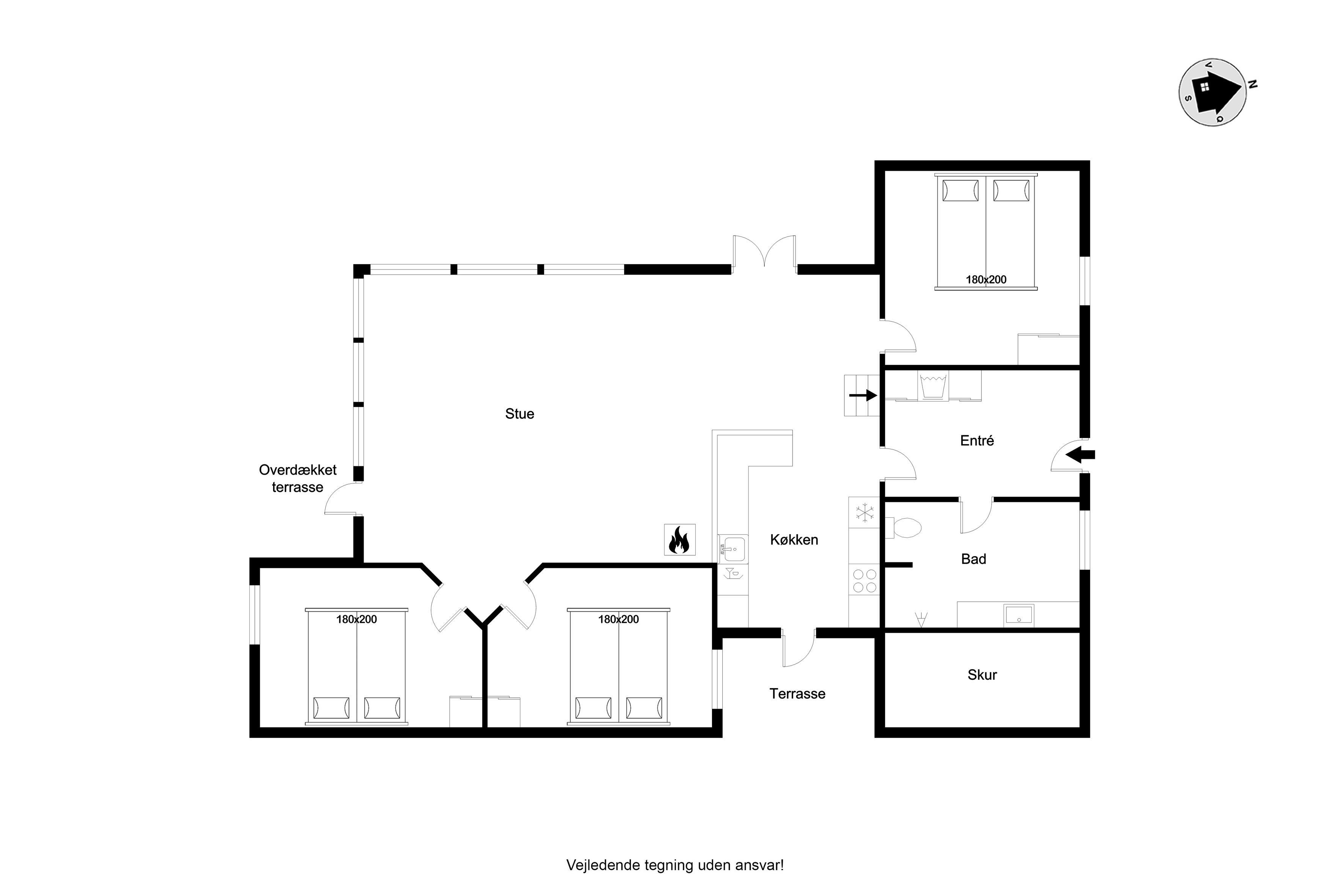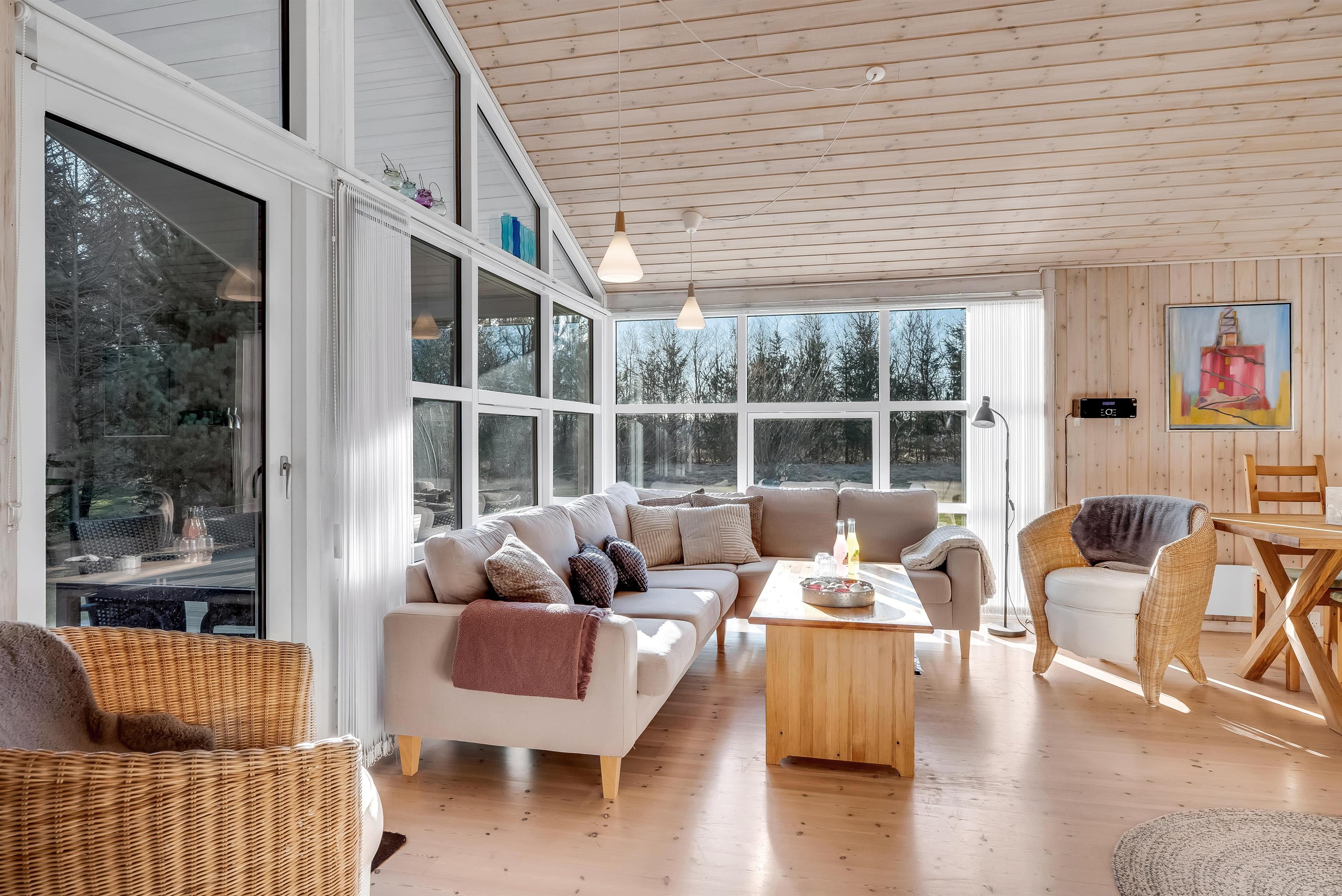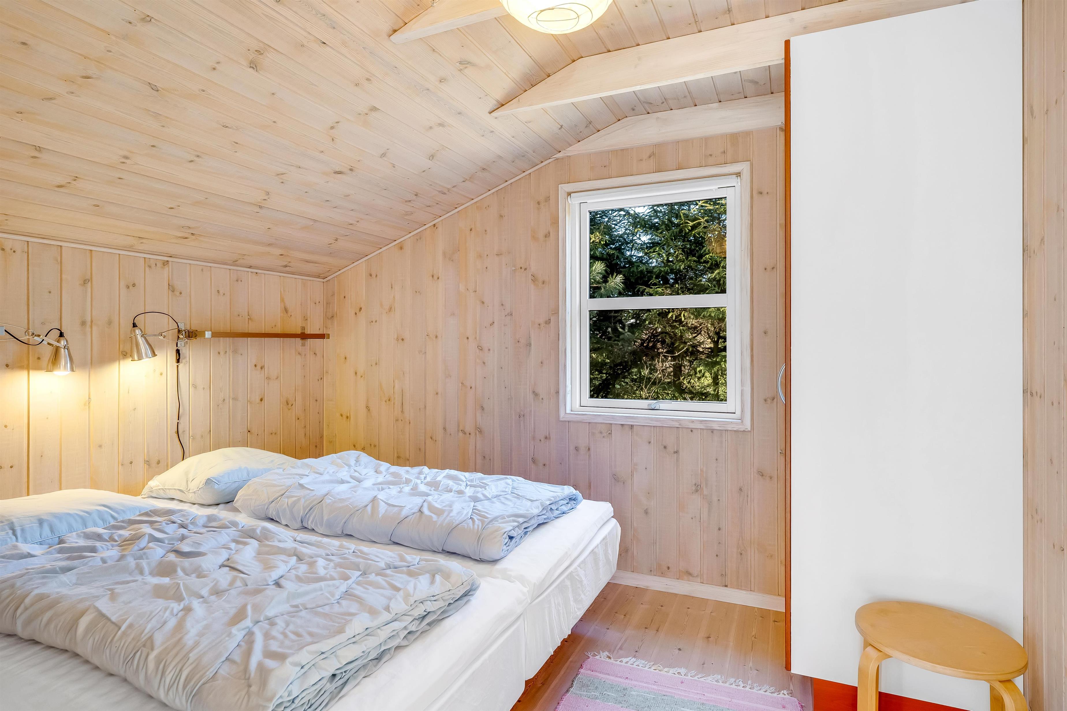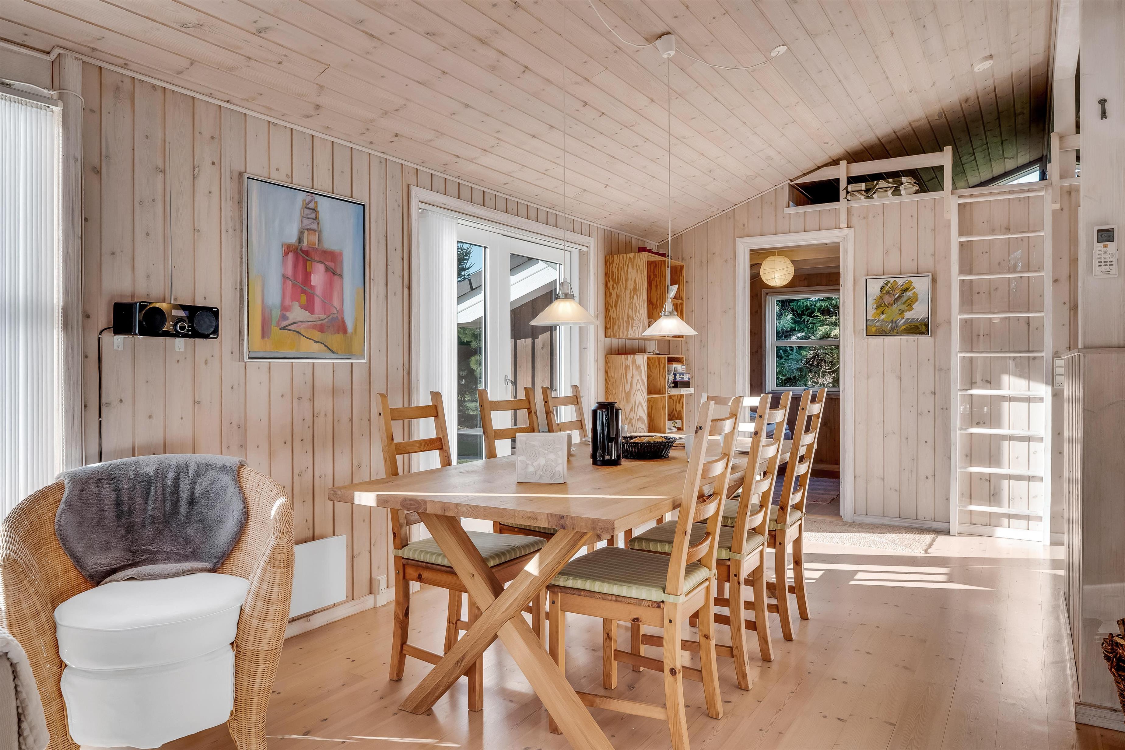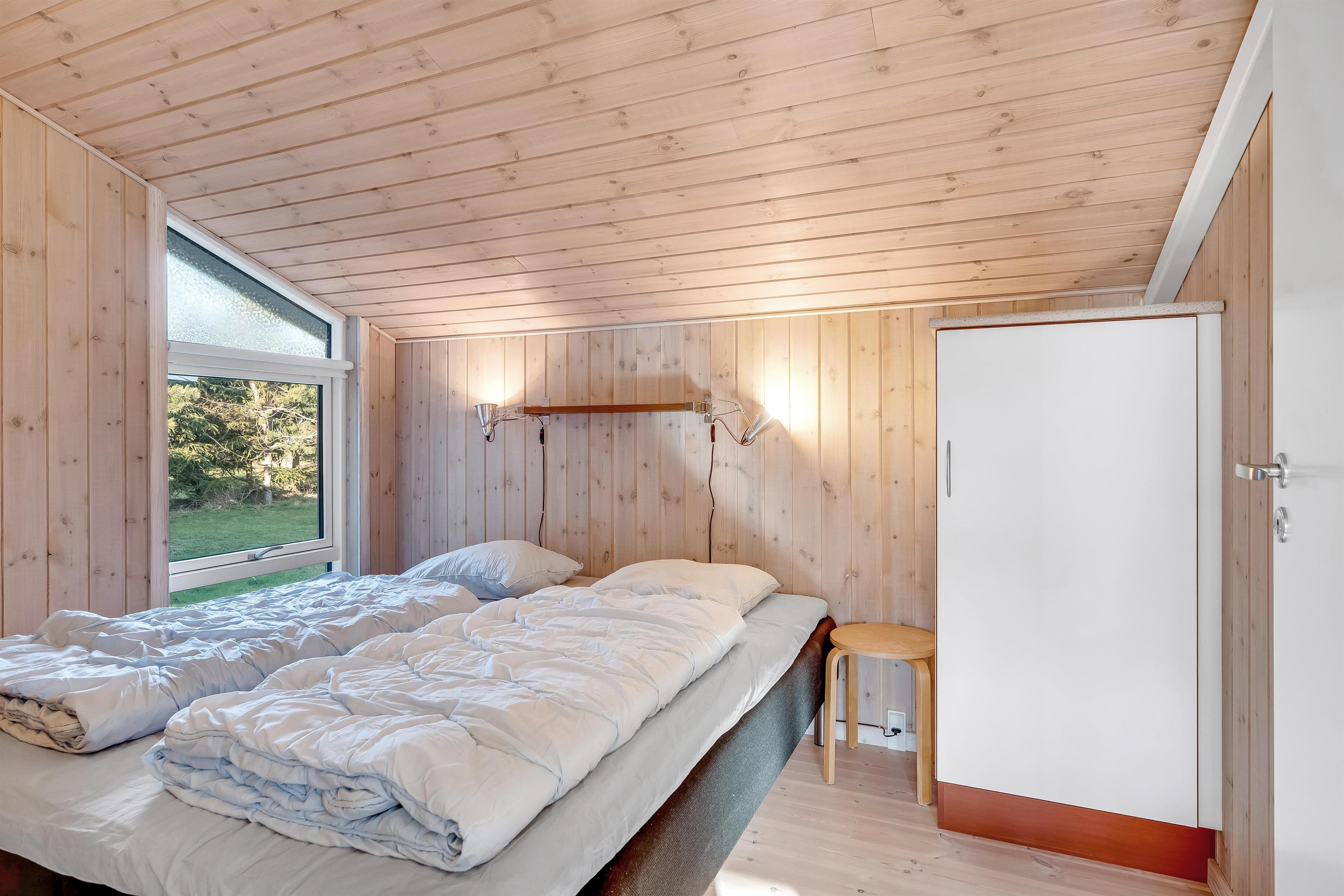 Indenfor mødes I af et lyst og funktionelt feriehus med tre soveværelser, alle indrettet med dobbeltsenge, så der er god plads til en familie eller en gruppe venner. Husets badeværelse har toilet og bruser samt gulvvarme, som giver en behagelig start på dagen. Køkkenet er veludstyret med induktionskomfur, ovn, køleskab, fryser på 10 liter, opvaskemaskine og kaffemaskine, så både morgenkaffen og fælles måltiderne kan klares uden besvær. Den hyggelige stue samler jer omkring husets TV med både danske og tyske kanaler samt trådløst internet, mens både brændeovn og den energibesparende varmepumpe, der også kan fungere som aircondition, sikrer et behageligt indeklima året rundt.