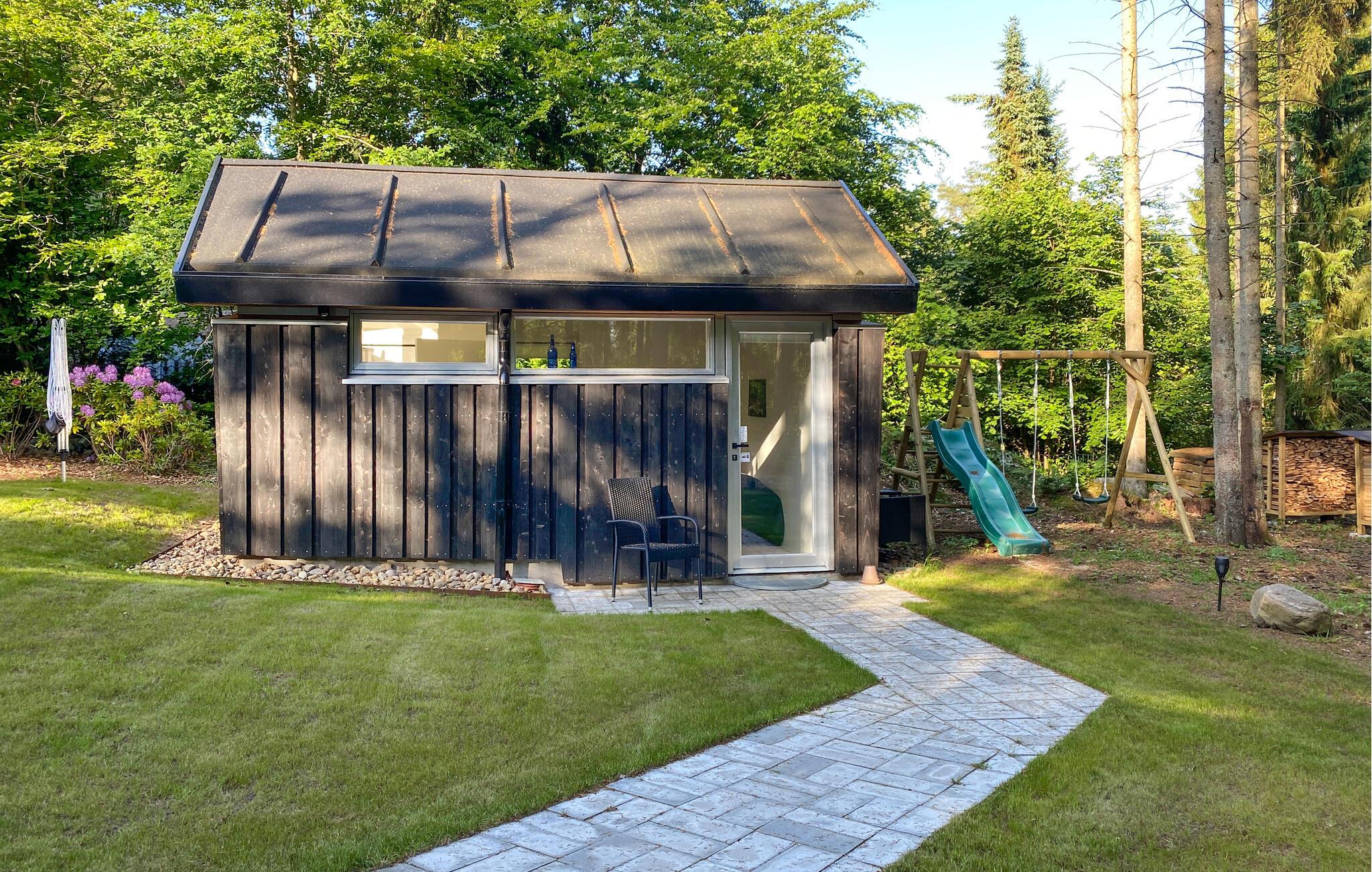Se frem til en vidunderlig ferie i dejlige omgivelser i dette moderne, arkitekttegnede træhus.