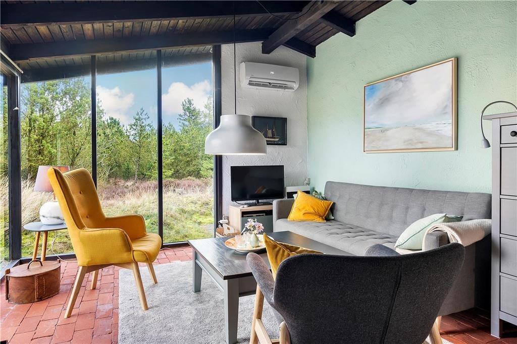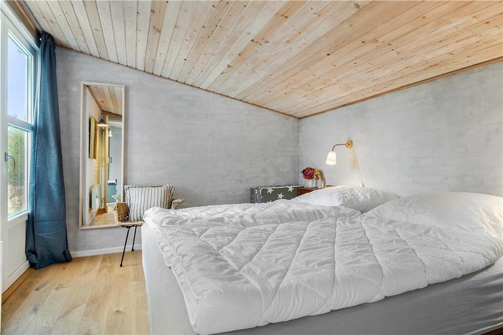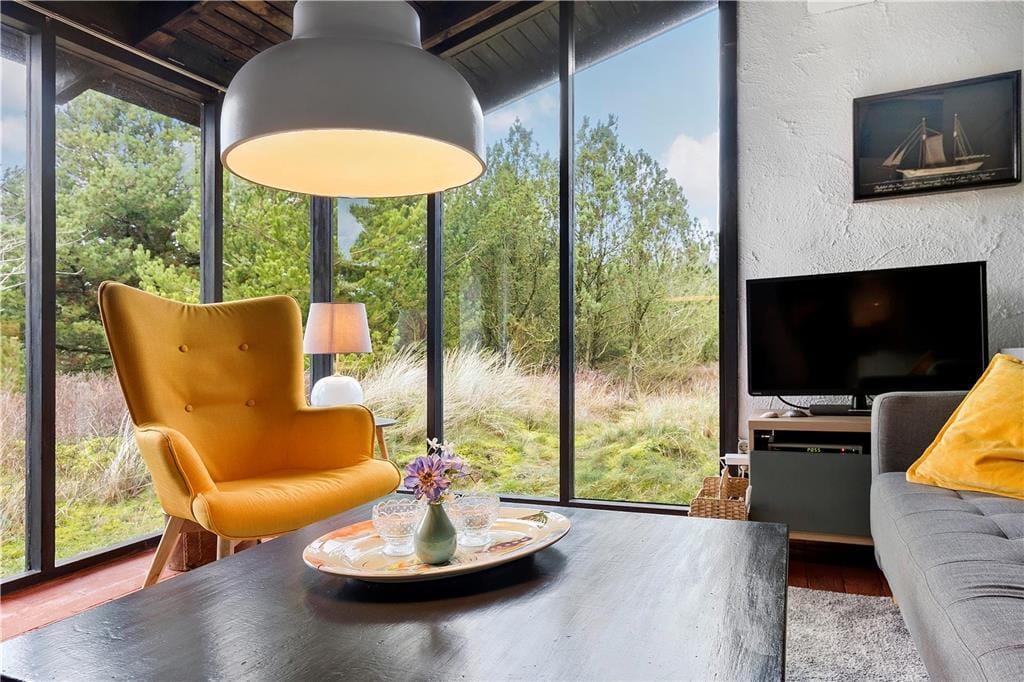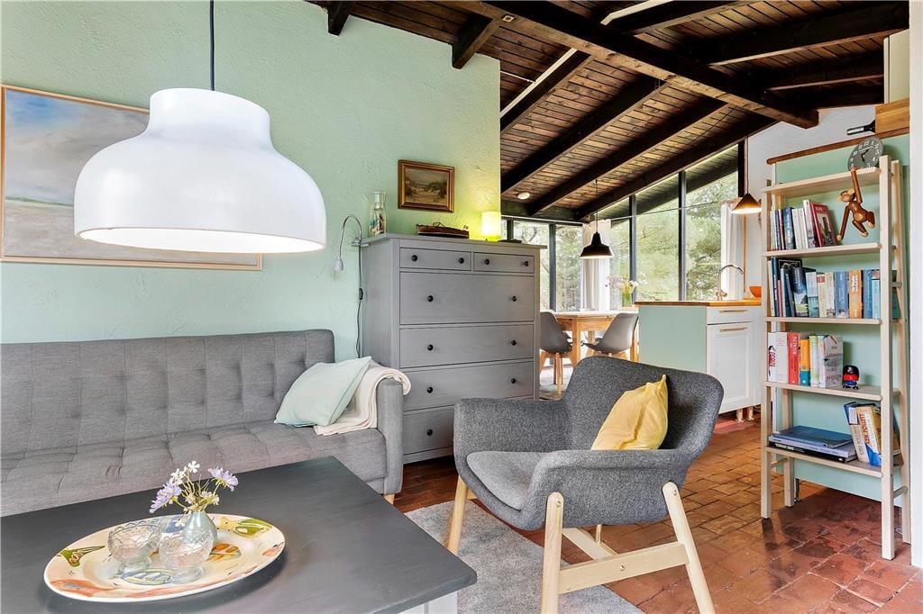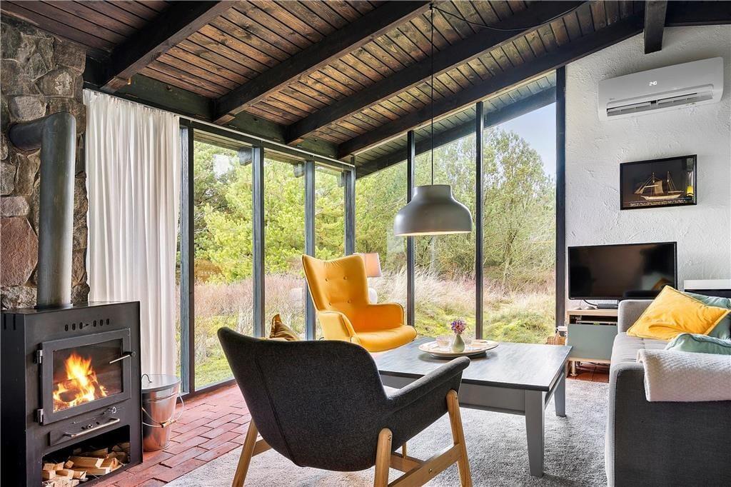 Charmen er ikke til at overse, for sommerhusets 67 m2 byder på en velfungerende blanding af original sommerhusstemning og moderne interiør. Seneste renovering foregik i 2019, så alle rum præsenterer sig på pæn og indbydende vis – også badeværelset og de to soveværelser, hvor det ene soveværelse er med dobbeltseng og det andet soveværelse med en enkeltseng som kan laves til en dobbeltseng. En stor del af kvadratmeterne er dedikeret til sommerhusets dejlige opholdsrum, der består af spisekøkken og opholdsstue i åben forbindelse. I begge ender af rummet sørger de store vinduespartier for et godt lysindfald og udsigt til haven, mens brændeovnen og varmepumpen sikrer, at I kan holde varmen selv på en kølig aften.