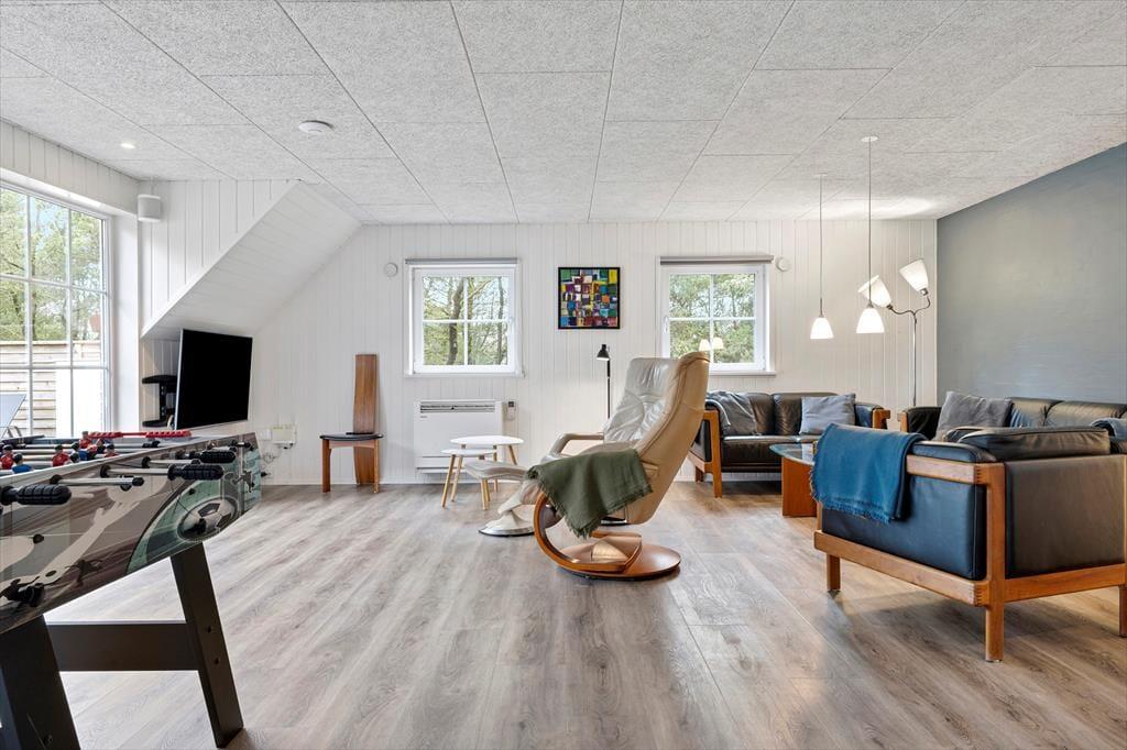 Ferien kommer til at udspille sig i de skønneste omgivelser, når den foregår på Småfolksvej 43 midt på Rømø. Inden døre i dette stråtækte sommerhus kan du og dine kære nemlig brede jer på hele 192 velindrettede kvadratmeter, der blandt andet inkluderer en lækker wellnessafdeling med swimmingpool, spa og sauna.