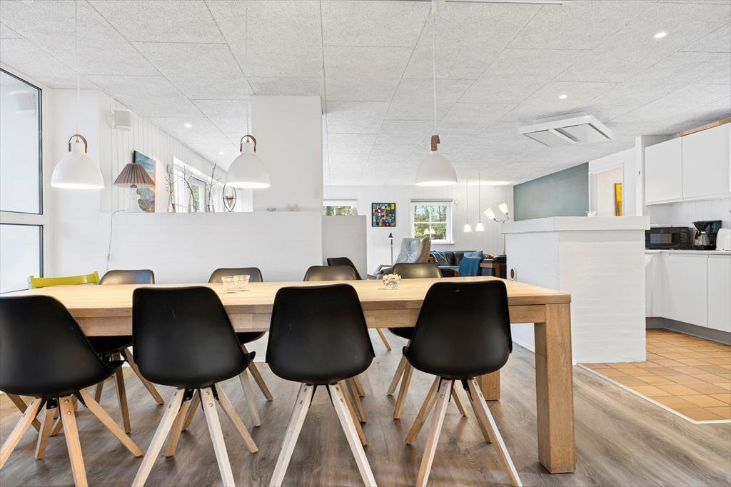Al den plads og de lækre faciliteter er der næsten ingen grund til at have for sig selv, så du kan oplagt invitere venner eller familie med på ferie. Der er sengepladser til 10 personer fordelt på fire soveværelser, og hvis I er mange samlet, er det rart, at der er to badeværelser til rådighed. Det er også et plus, at opholdsafdelingen er dejligt stor, så det er muligt at sidde alle samlet – men I kan også hygge jer i mindre grupper med brætspil, bordfodbold, boglæsning, madlavning og andre feriesysler. Er der vandhunde i selskabet, kommer de sikkert til at tilbringe det meste af tiden i swimmingpoolen eller i spabadet, og saunaen er også en skøn tilføjelse for dem, der elsker at slappe af i varmen.