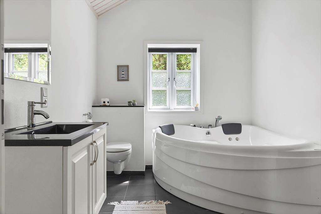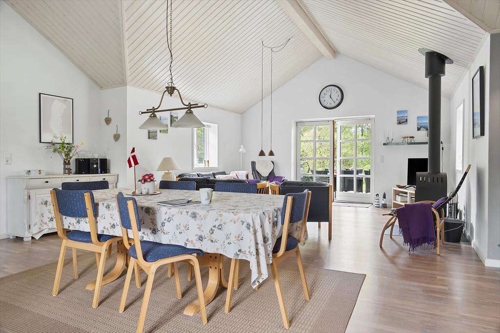 Inden døre i det velrenoverede sommerhus kan I brede jer på hele 119 m². Alle rum er lyse og store, inklusiv de tre gode soveværelser, der i alt kan huse otte personer. Badeværelset er lækkert indrettet med både bruseniche og spabad, mens køkkenet på praktisk vis er integreret med husets flotte og højloftede stue. Her er der brændeovn til de kølige hyggeaftener, og de komfortable siddemøbler lægger op til afslapning dagen lang – er det ikke det, man fortjener, når det endelig er ferietid? Har I brug for underholdning, kan I tænde for TV’et, der har parabol tilsluttet, så I kan vælge mellem danske, engelske og tyske kanaler.