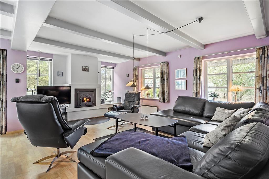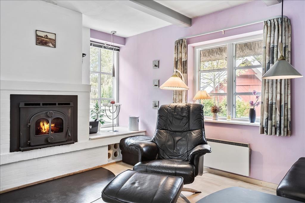 Solskinsfrokost på terrassen, hyggestunder nær brændeovnen, afslapning i saunaen og udflugter i naturskønne omgivelser – alt det og meget mere kan I se frem til, når I holder ferie i dette fine, stråtækte sommerhus i Kongsmark.