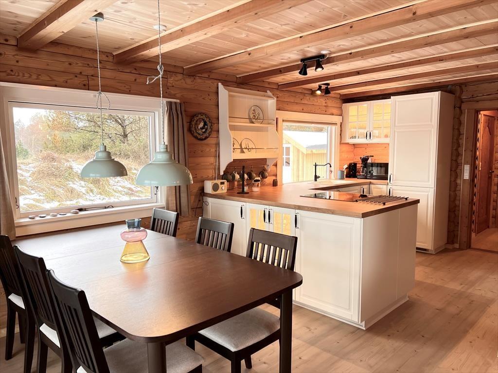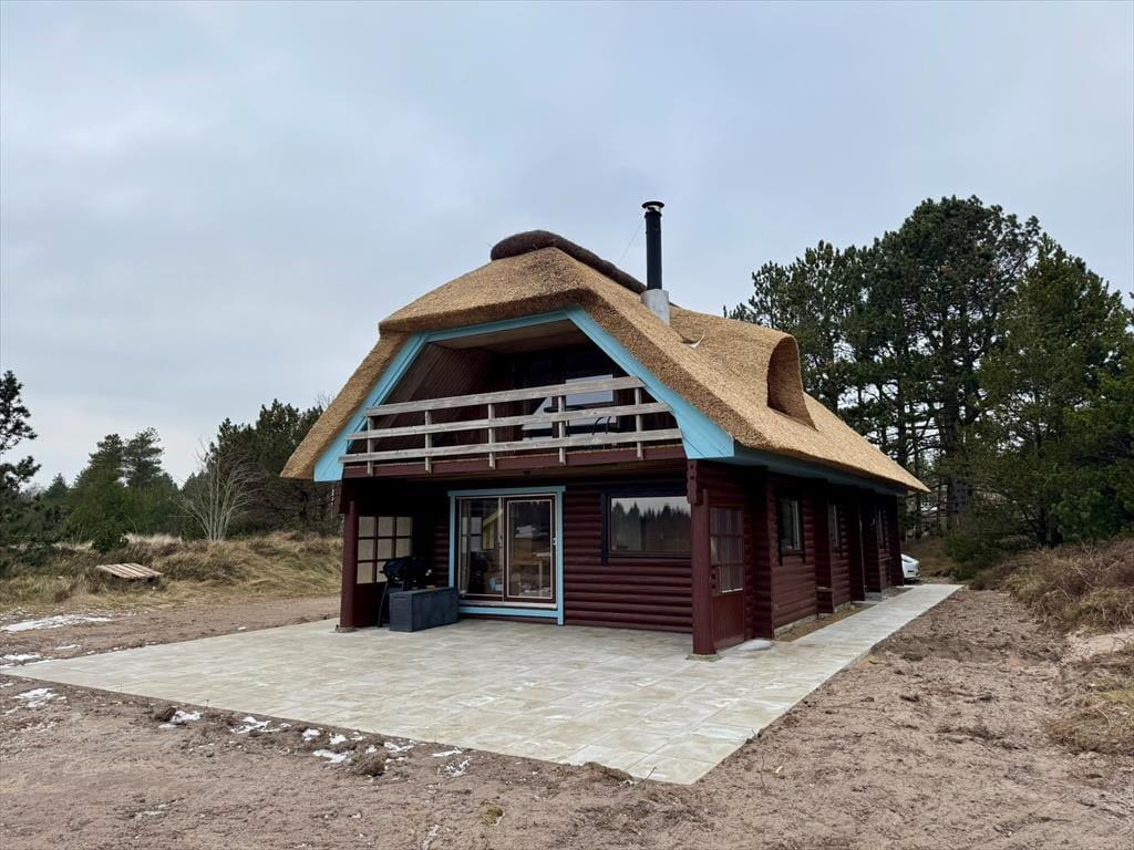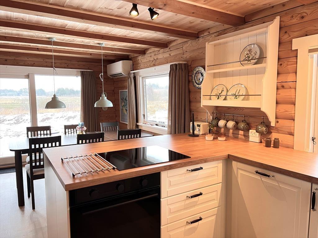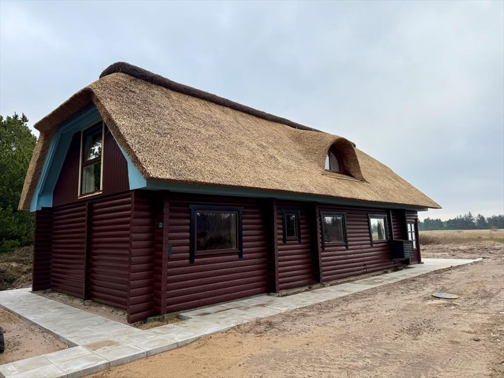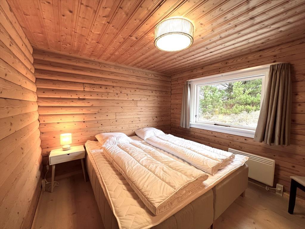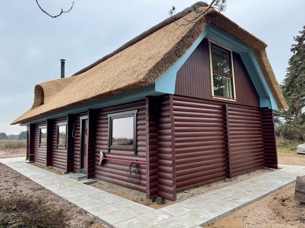 Sommerhus i Kongsmark, Vestjylland, med plads til 8 voksne og 6 husdyr. Der er en hyggelig indretning med bl.a. brændeovn, og du finder desuden vaskemaskine og opvaskemaskine i boligen.
