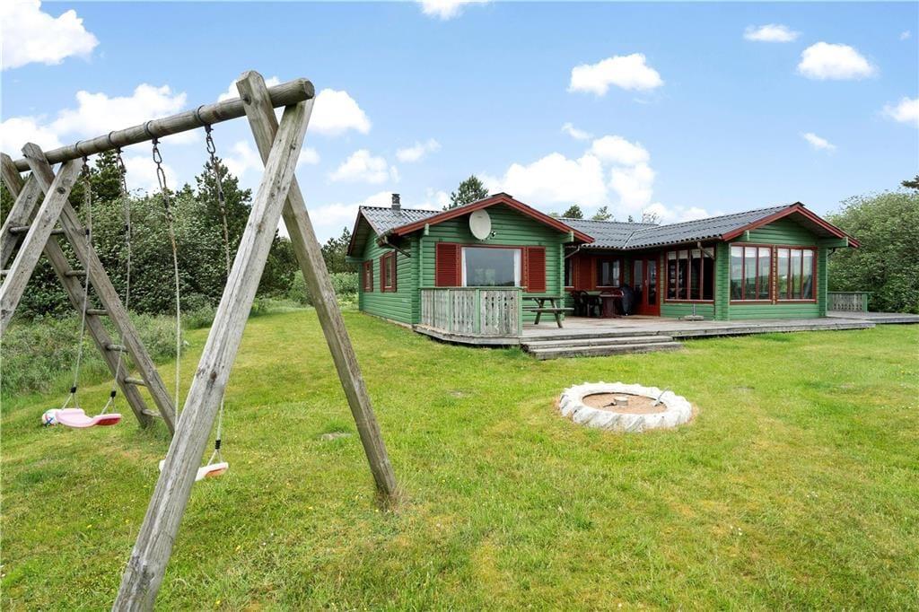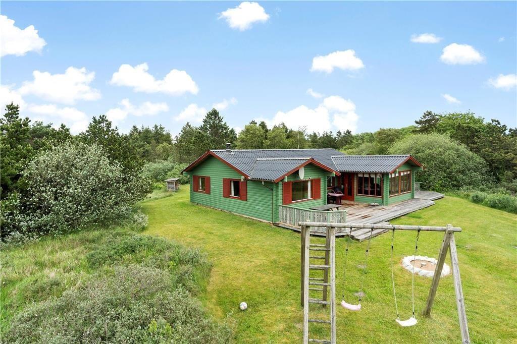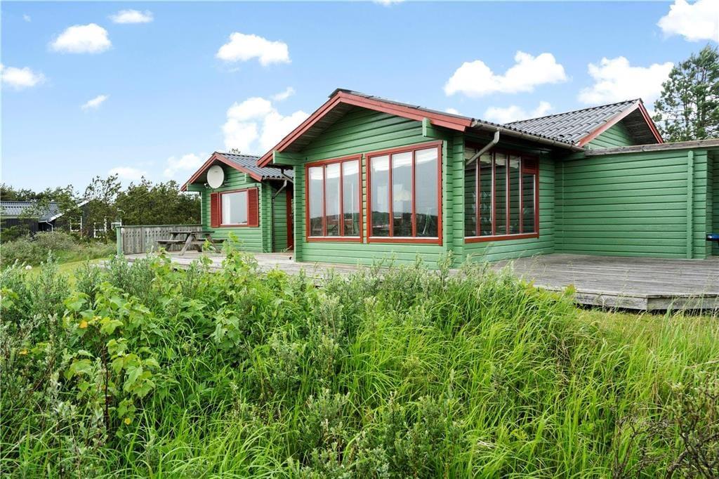 Hvis drømmen er at holde ferie i naturskønne omgivelser, er dette charmerende træsommerhus et oplagt valg. Fra både stuen, udestuen og terrassen har I nemlig den smukkeste udsigt over et fredet hedelandskab, og en kort gåtur fra huset ligger både Kirkeby Plantage og Vadehavet.