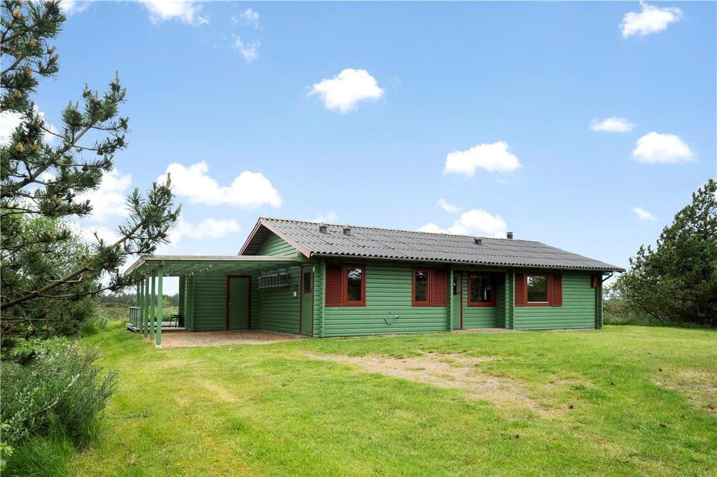 Sommerhusets sydvendte terrassemiljø er perfekt orienteret i forhold til solen såvel som udsigten over den vidtstrakte hede. Mens I sidder og beundrer naturomgivelserne, kan I nyde et godt måltid mad – som endda kan tilberedes ude i det fri på grillen. Bilen kan trygt parkeres i carporten, og på græsplænen er der masser af plads til leg og havespil.