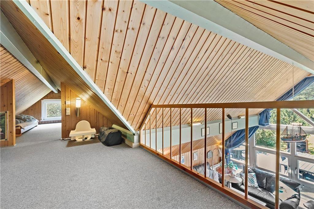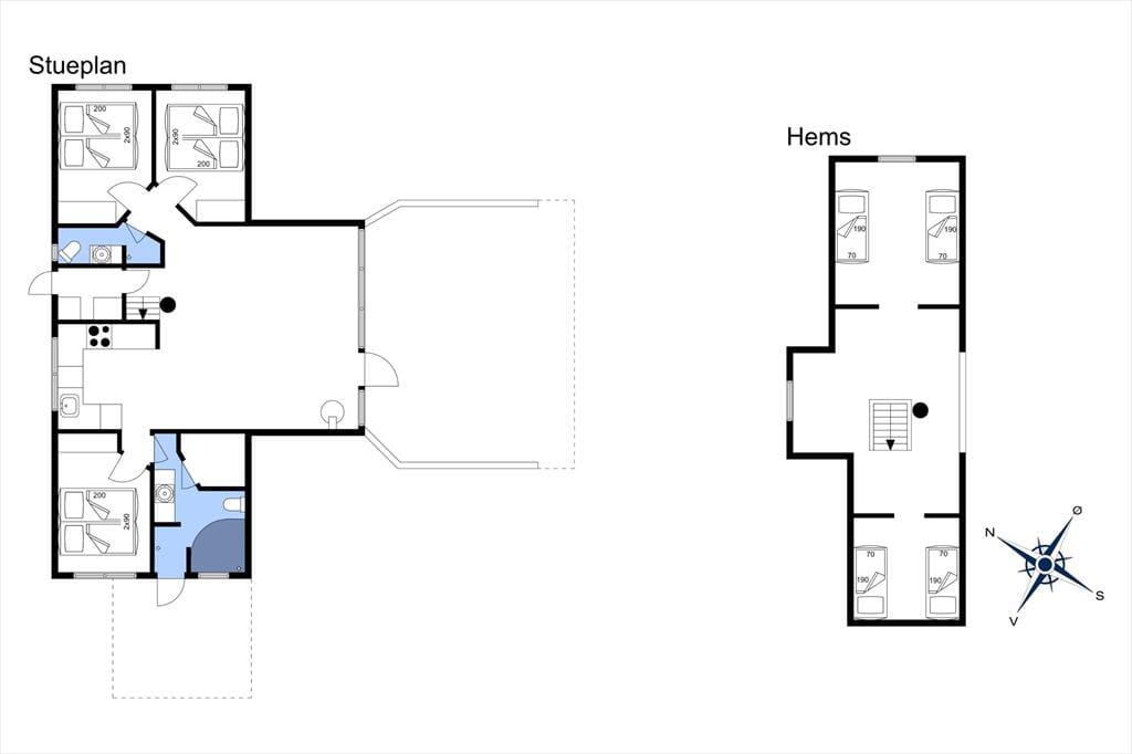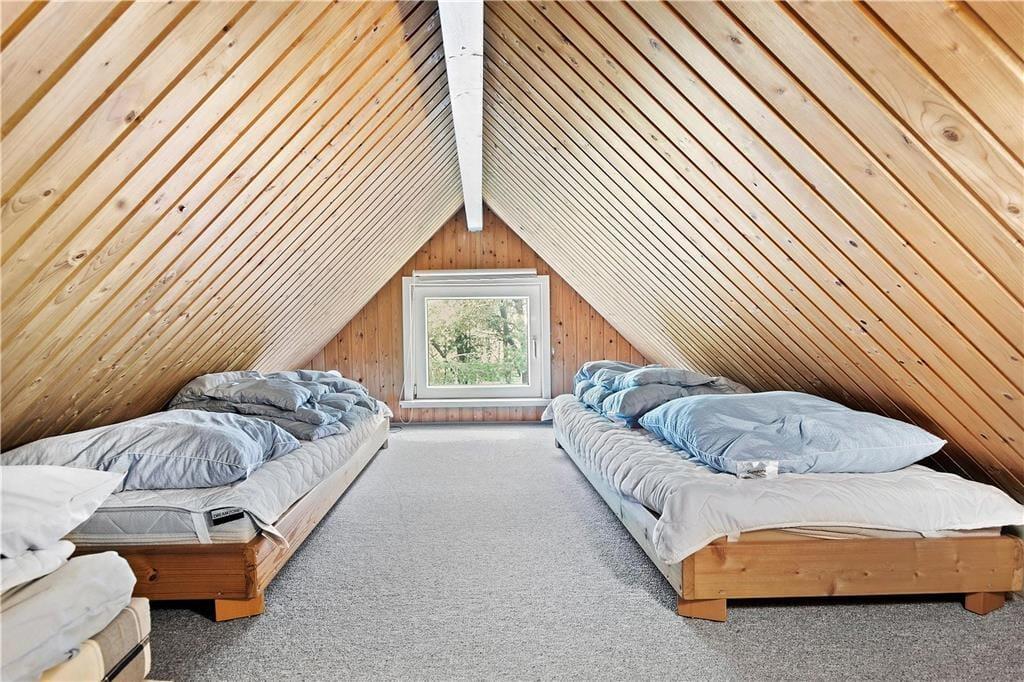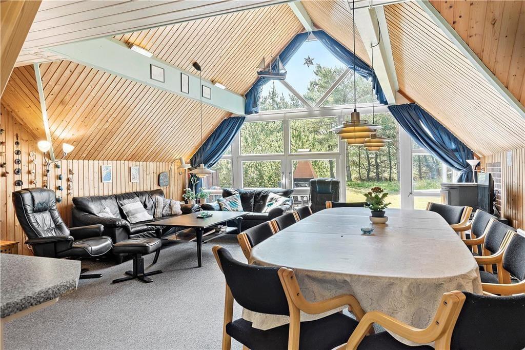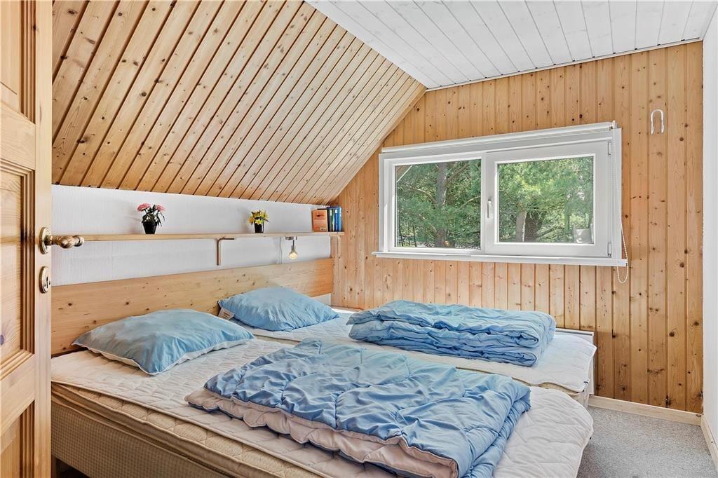 Med sit høje stråtag og mørke træfacade passer sommerhuset perfekt ind i de naturskønne omgivelser. Det er det helt rette sted at komme ned i ferietempo og slappe fuldstændig af – hvilket blandt andet kan foregå i husets spabad og sauna. Samtidig er det også stedet, hvor I kan samle hele familien, for det flotte hus kan nemt rumme 10 personer. De sociale afslapningsstunder kan foregå i opholdsrummet, der ligger midt i sommerhuset. Her er der brændeovn, loft til kip og komfortable siddemøbler, og et kæmpestort vinduesparti sørger for et glimrende lysindfald. Køkkenet er integreret med stuen, mens tre soveværelser og to badeværelser er fornuftigt fordelt i to soveafdelinger. Tager I trappen ovenpå, er der god plads til leg og hygge på hemsen, som desuden er indrettet med to ekstra soverum.