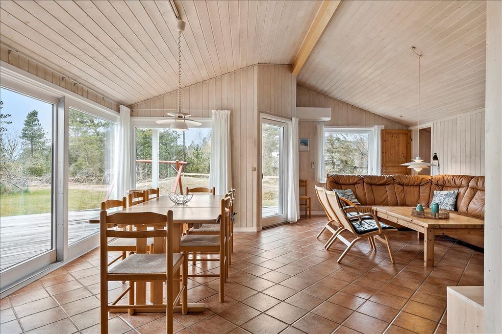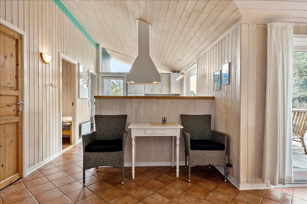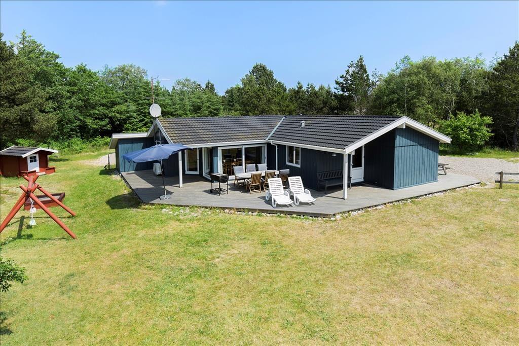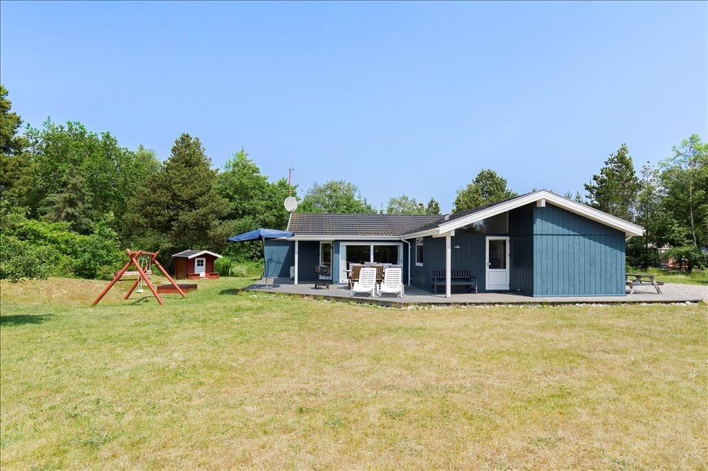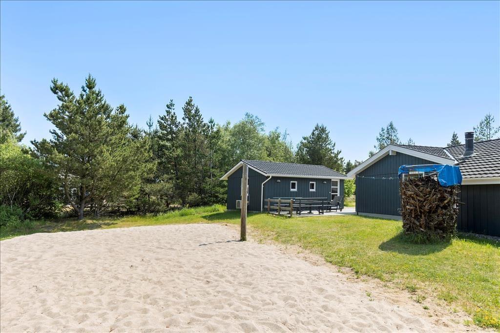 Bordtennisbordet i annekset er bestemt ikke eneste mulighed for at have det sjovt, for der er masser af plads til fysisk udfoldelse på den store naturgrund. En match på beachvolleybanen kan både store og små deltage i, mens gyngerne, sandkassen og legehuset mest er til de yngre familiemedlemmer. Når I trænger til en pause fra havespillene, kan I slå jer ned på den delvist overdækkede terrasse, som løber rundt om sommerhusets østlige, sydlige og vestlige sider.