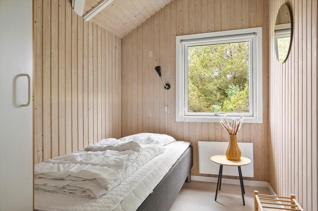 Sommerhus i Kongsmark, Vestjylland, med plads til 5 voksne. Der er en hyggelig indretning med bl.a. brændeovn, og du finder desuden vaskemaskine, opvaskemaskine og tørretumbler i boligen.
