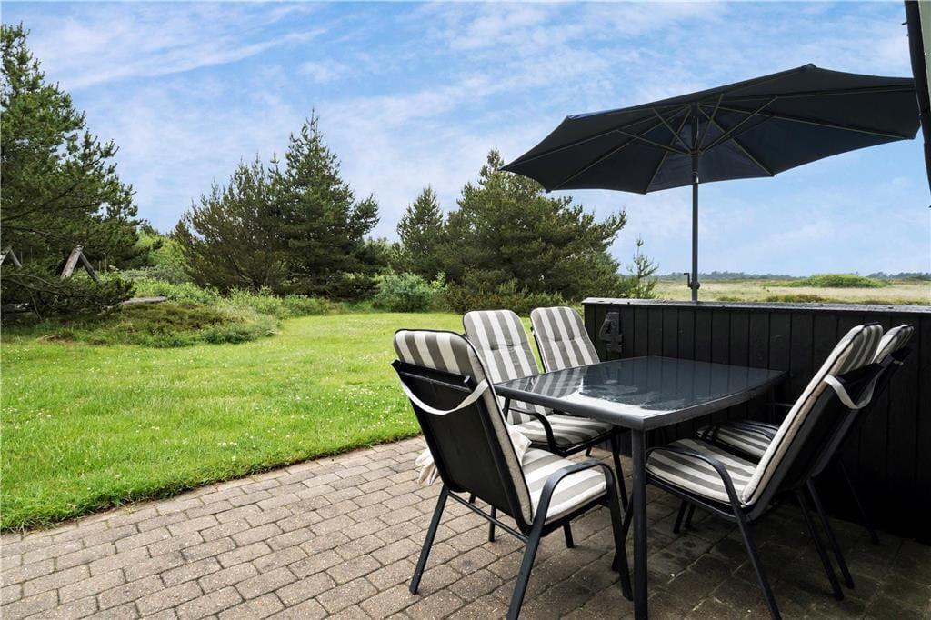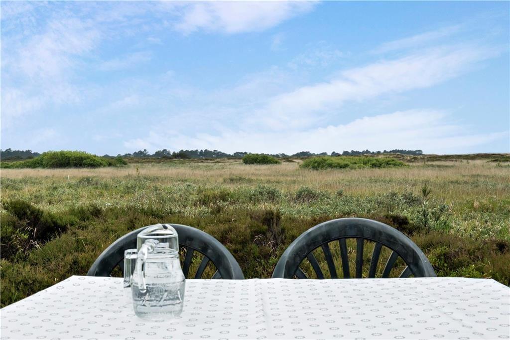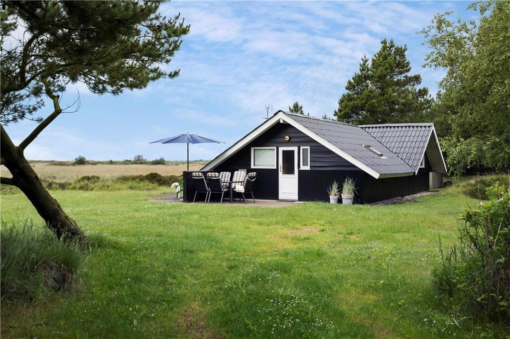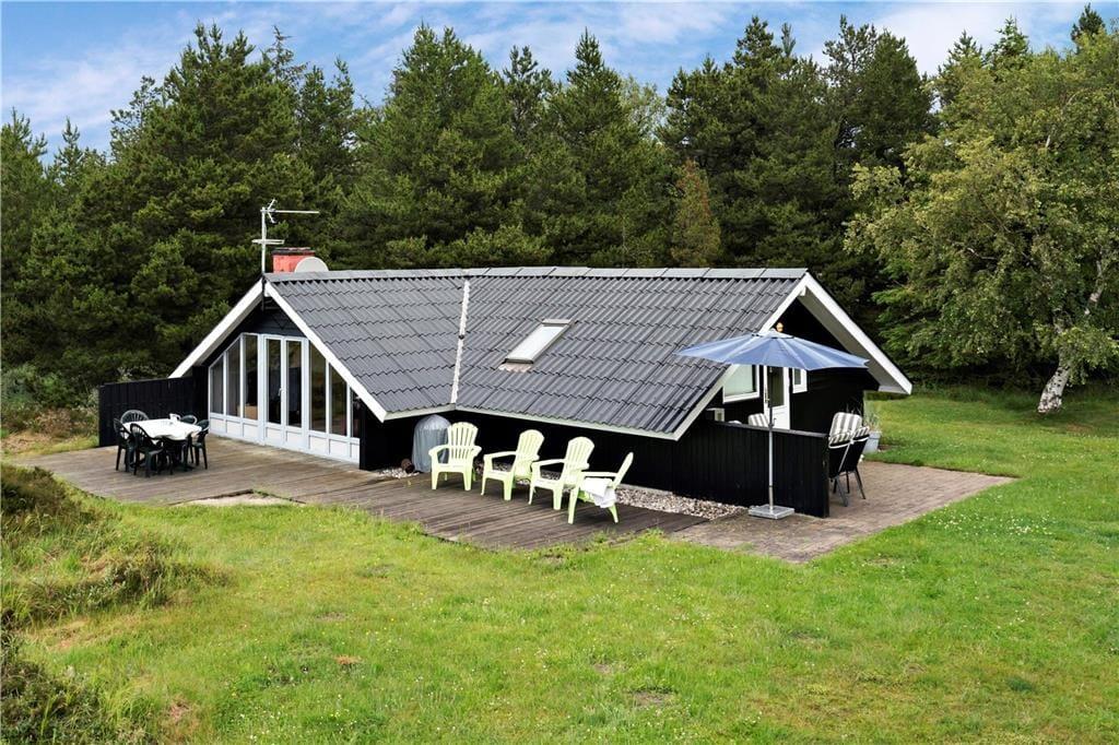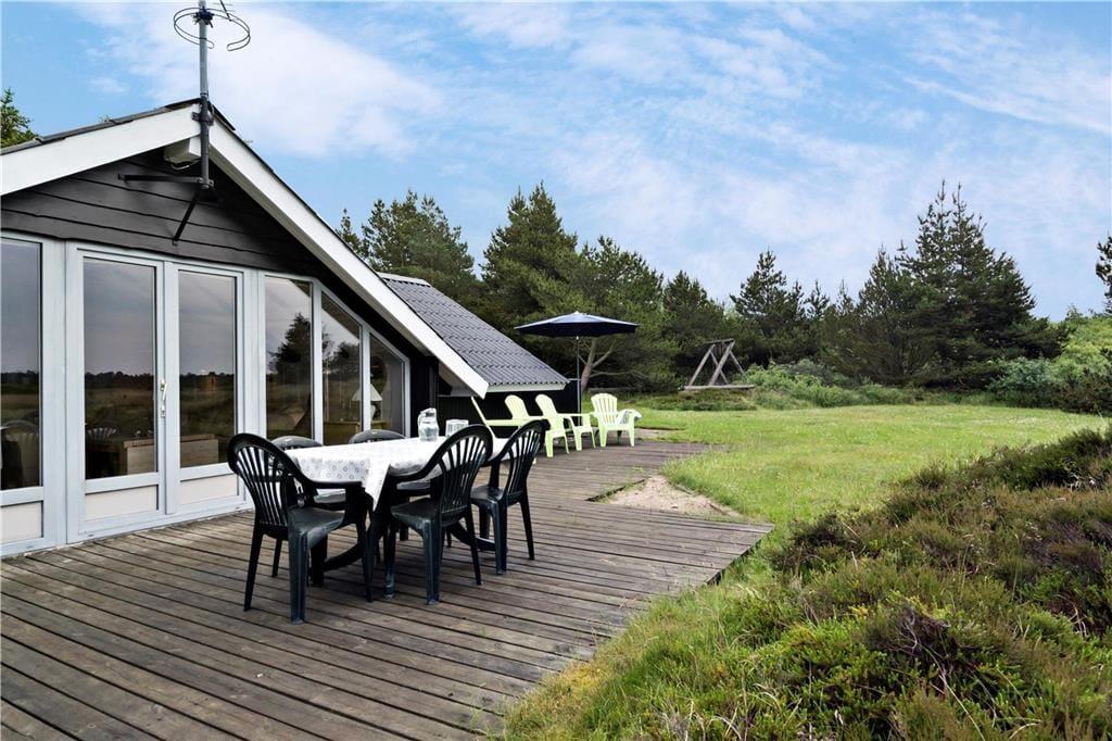Dette velindrettede sommerhus ligger skønt placeret i Kongsmark i første række mod et fredet naturområde, og derfor har I en imponerende udsigt over det vidtstrakte hede landskab fra både stuen og terrasse.