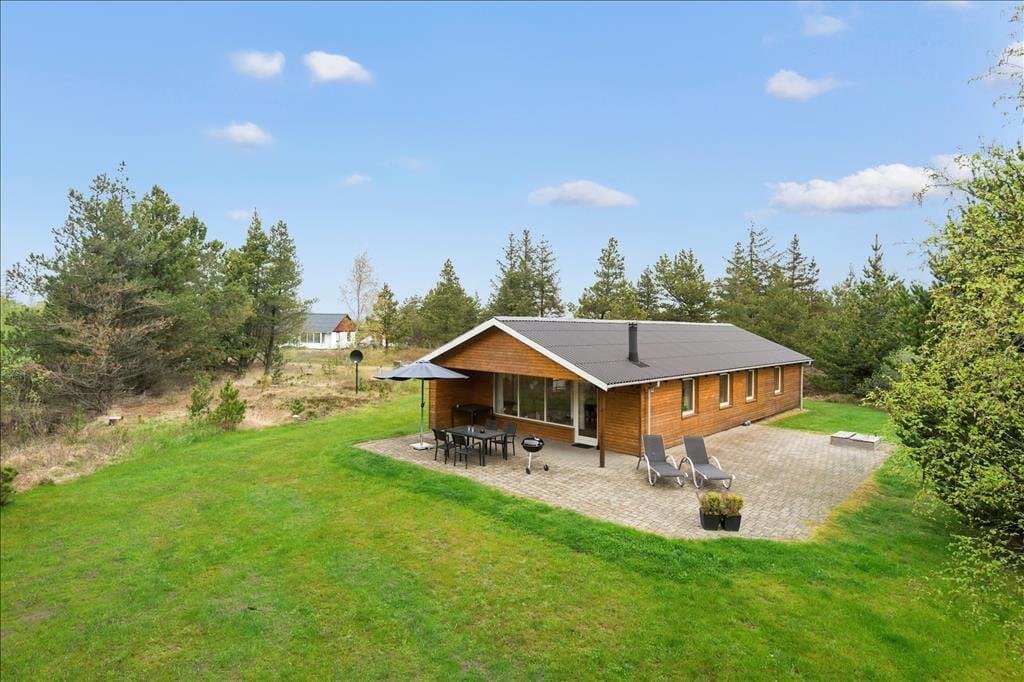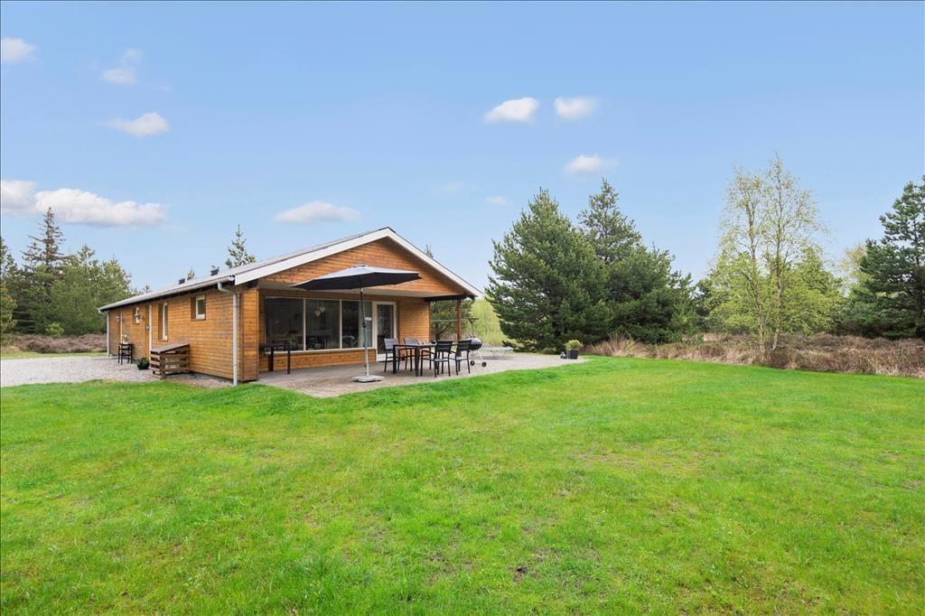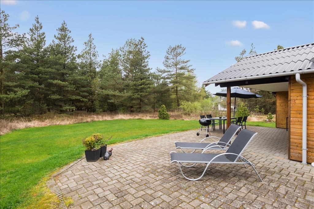 Grunden er stor og enkelt anlagt med græsplæne og fliseterrasse, så der er god plads til både leg og afslapning. Randbeplantningen skærmer jeres private udearealer af, så I kan nyde roen i fulde drag, når I læner jer tilbage i havemøblerne. De vilde dyr må også kunne lide de idylliske omgivelser, for ganske ofte kommer rådyr på visit i haven.