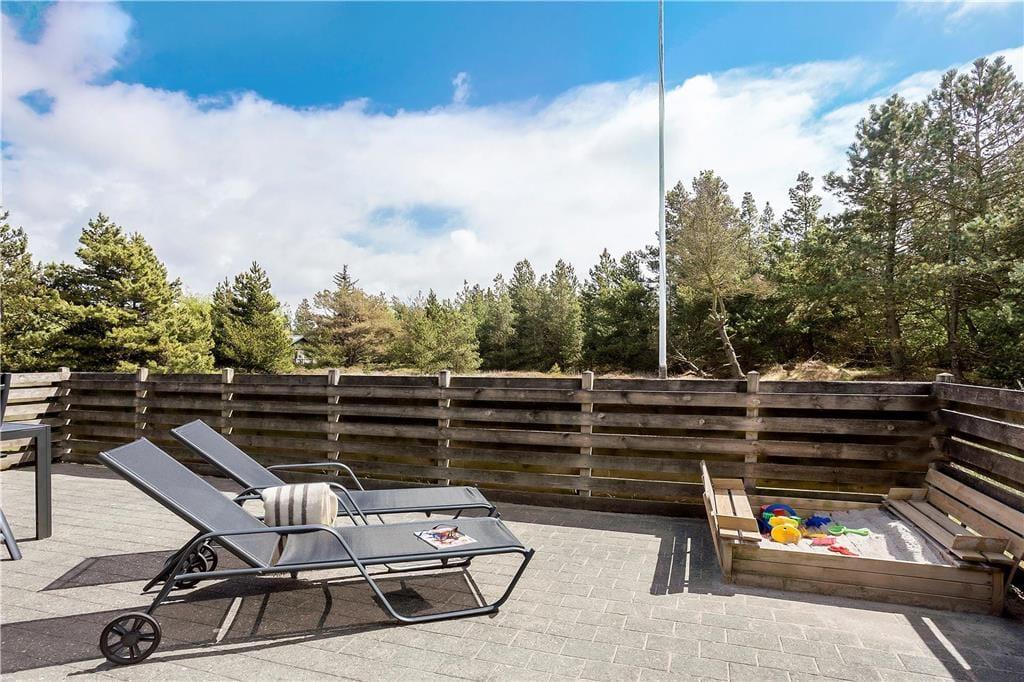 Solen og den grønne udsigt kan I også suge til jer, når I flytter driverlivet ude i det fri. På begge sider af sommerhuset ligger der dejlige terrasser, så forholdene er glimrende, når I vil solbade, grille og hvad I nu ellers vil bruge sommerdagene på. Har I små børn med på ferie, vil de formentlig blive glade for gyngestativet og sandkassen, og derudover er der god plads til at lege på den 3000 m2 store grund.