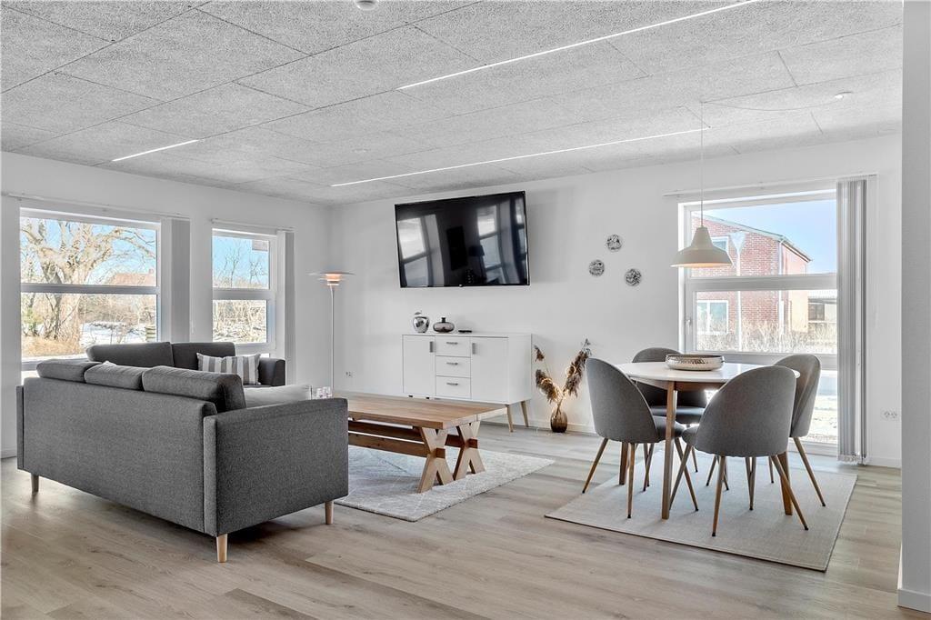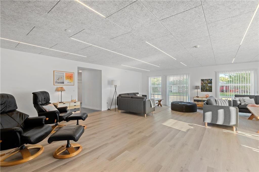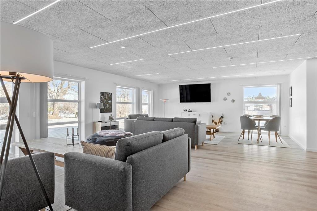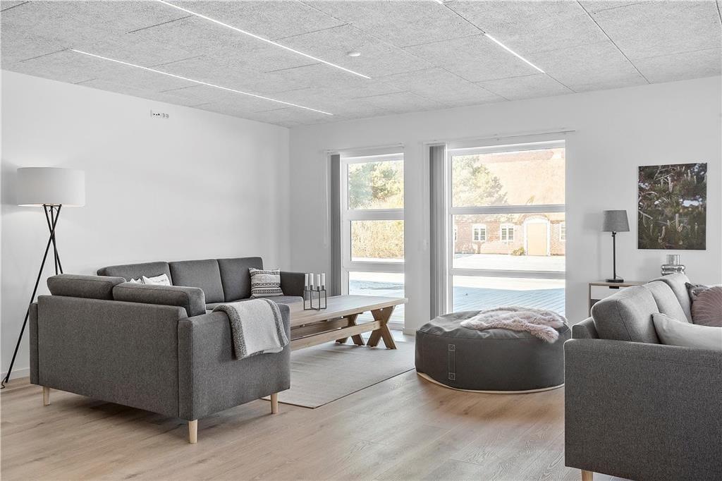 Feriehuset er fuldstændig gennemrenoveret i 2020, og fremstår nu i lys og moderne stil. Indretningen er smagfuld med komfortable og indbydende møbler.